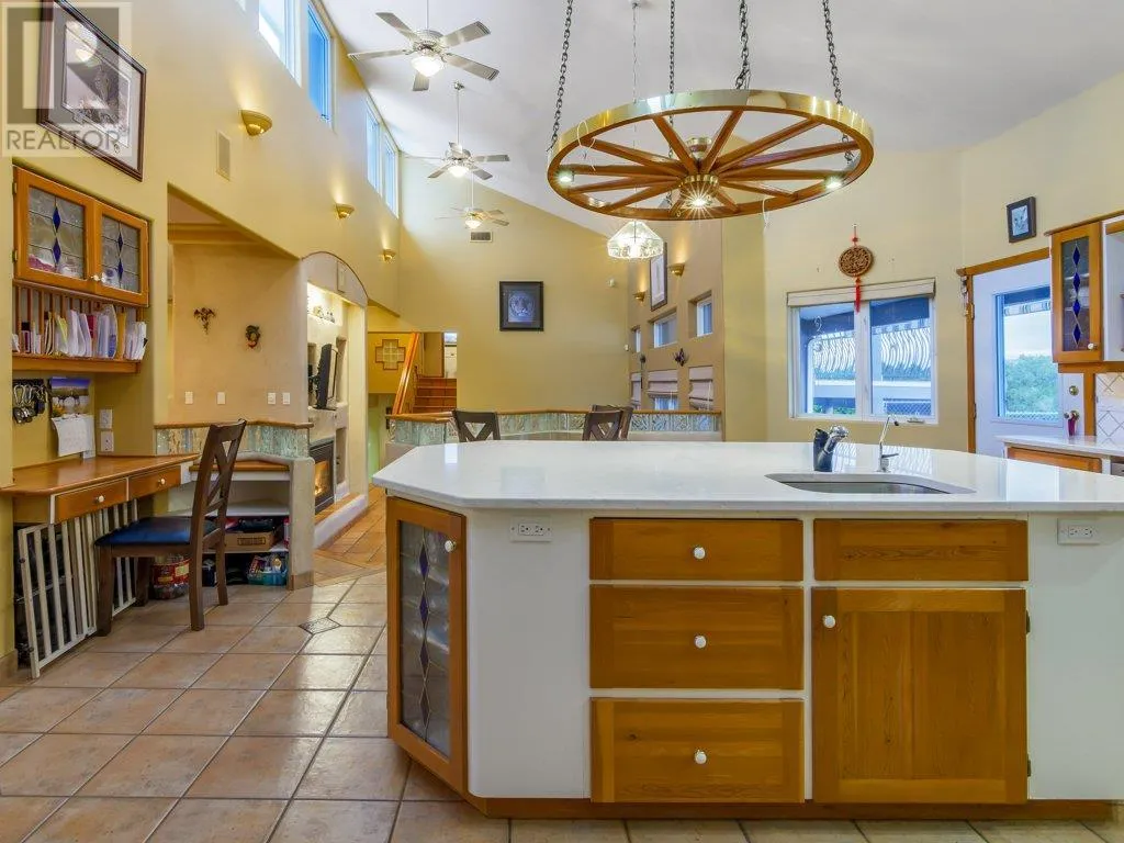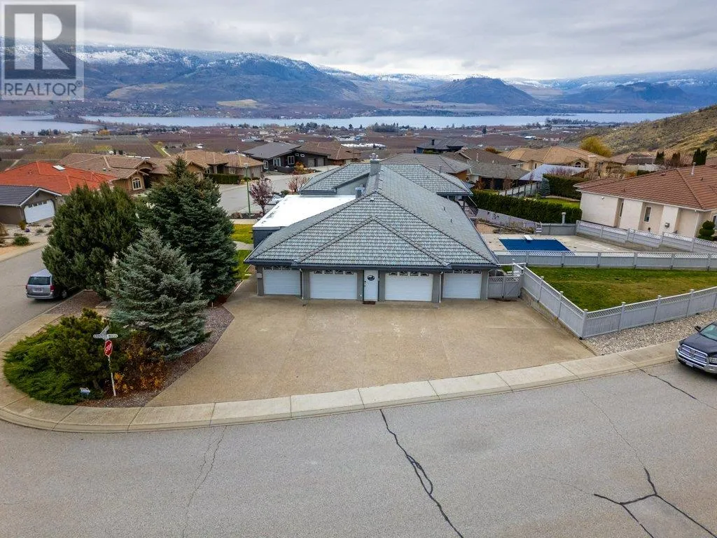 With over 4,500 sq ft PLUS 2,556 sq ft of combined garage & workshop space, this home is a haven for the hobbyists & mechanics! Situated on a flat corner lot, the amazing property offers endless possibilities, â a potential in-law suite, games room, gym, or all three. Designed for large families and year-round entertaining, this home truly has it all! Inside, you'll find 5 spacious bedrooms and 5 bathrooms, including a grand primary retreat with a gas fireplace, private balcony overlooking the saltwater pool and mountain views, walk-in closet, and ensuite with a large jetted tub. Hardwood and tile floors flow throughout, anchored by a chef's kitchen with an Ultraline double gas oven, oversized built-in refrigerator, ample storage, and a laundry chute for convenience. Host elegant dinners in the formal dining room, relax in one of three living areas with cozy fireplaces, and let natural light fill the home through large windows. Outdoors, enjoy three fenced areas: a newly lined saltwater pool, a play area for kids and pets, and a low-maintenance courtyard. Dine at the outdoor kitchen with a gas BBQ or play shuffleboard. With a four-car garage, gated RV parking, and room for a boat, this home accommodates all your toys! Close to a golf course, unwind with a glass of wine on the large front patio. With new gutters and a concrete tile roof, this home is ready for its new family. Want extended family nearby? The property next door (11900) is for sale too! (id:27476)