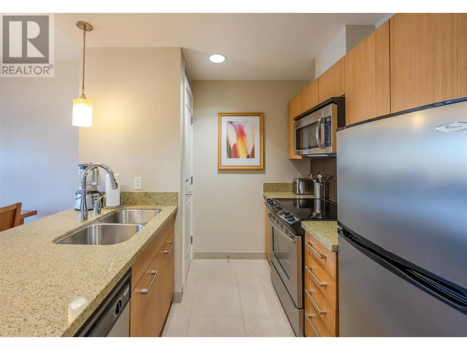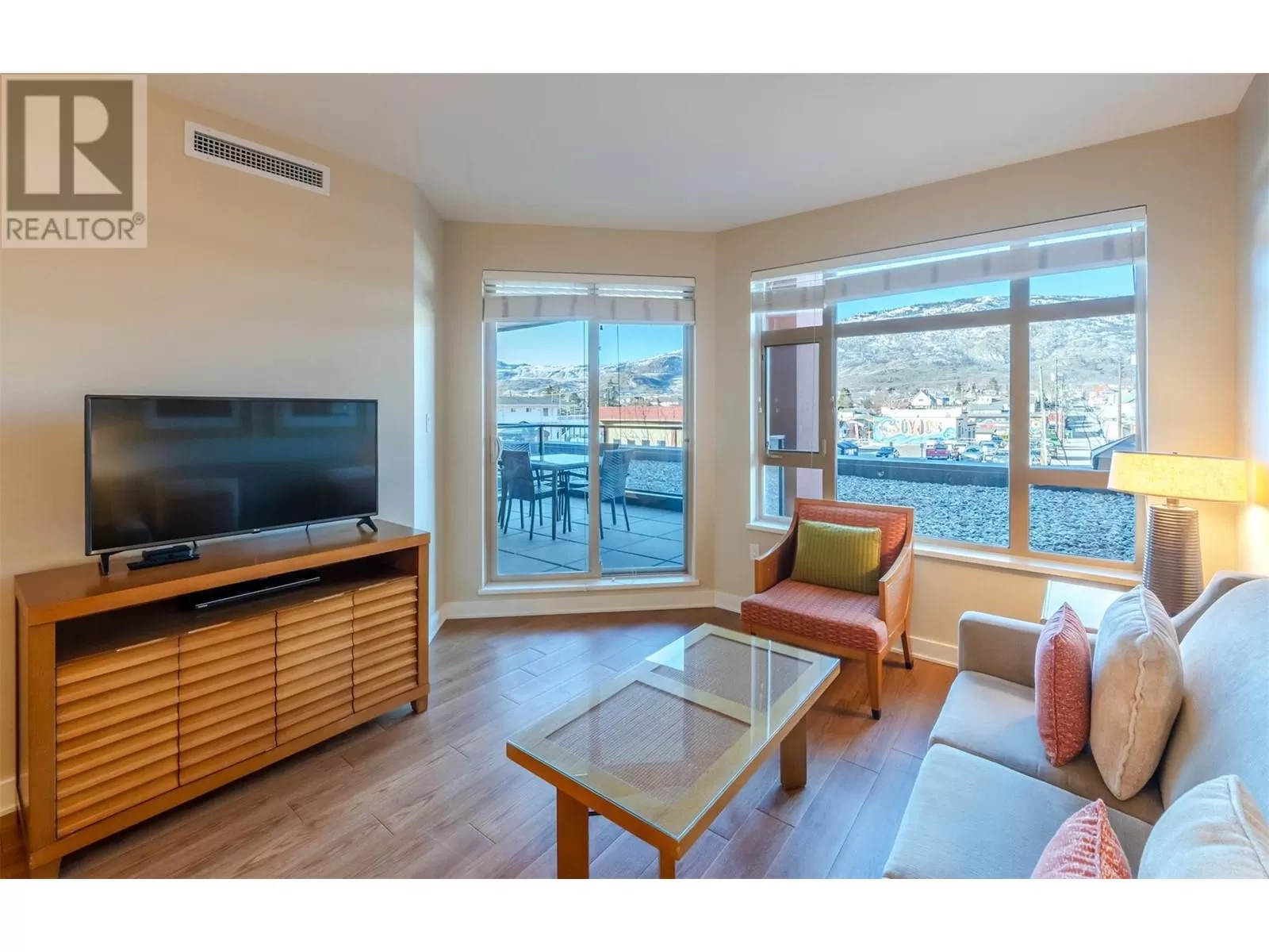 Welcome affordable vacation ownership in Canada's desert paradise! This 1/12th fractional interest allows stress-free, lock and leave vacation property ownership, with exclusive access four weeks per year, one in each season. On the quiet, west facing side of the resort with town and mountain views, this 600 square foot unit has loads of natural light, and a sliding door walk-out to your spacious, sheltered terrace ideal for alfresco dining and stunning sunset views. The well appointed kitchen overlooks your open concept living/dining area, ideal for entertaining. The spacious bedroom is luxuriously appointed with a king sized bed to ensure restful sleep, and the bathroom features a deep soaker tub/shower combo and generous vanity . Close proximity to elevator and stairs ensures quick access to the beach, pool deck, and secure, indoor parking. Watermark resort amenities include pool, hot tubs (one year round), gym, spa, and beautiful function rooms. Onsite dining options include 15 Park Bistro (with seasonal patio and grill), Boston Pizza, Backroads Brewery, ands Roberto's Gelato. Located just steps to all the vibrant shops, services and amazing dining options Osoyoos has to offer; world class wineries, dining, golf, skiing, watersports and cultural experiences are all in close proximity. Enrollment in professionally managed rental pool can offset ownership costs with rental income when not in use. Subject to GST. Sq ft per builder plans. Buyer to verify if important. (id:27476)