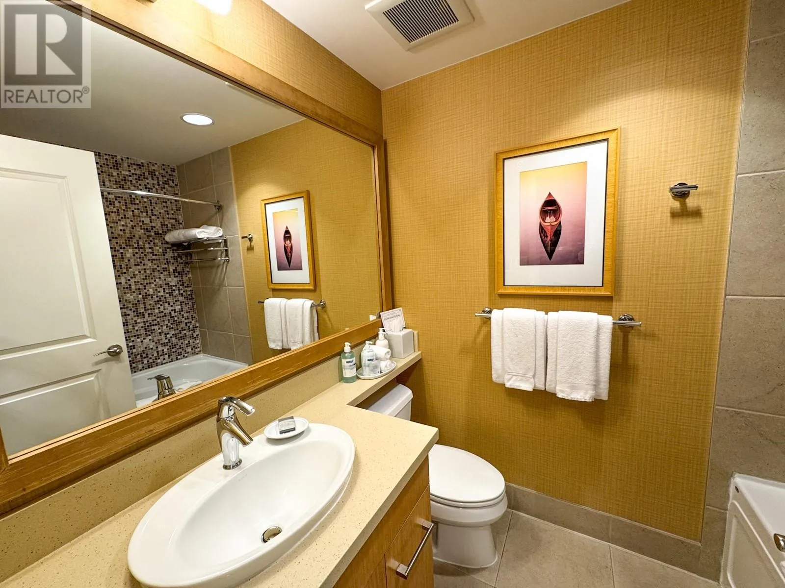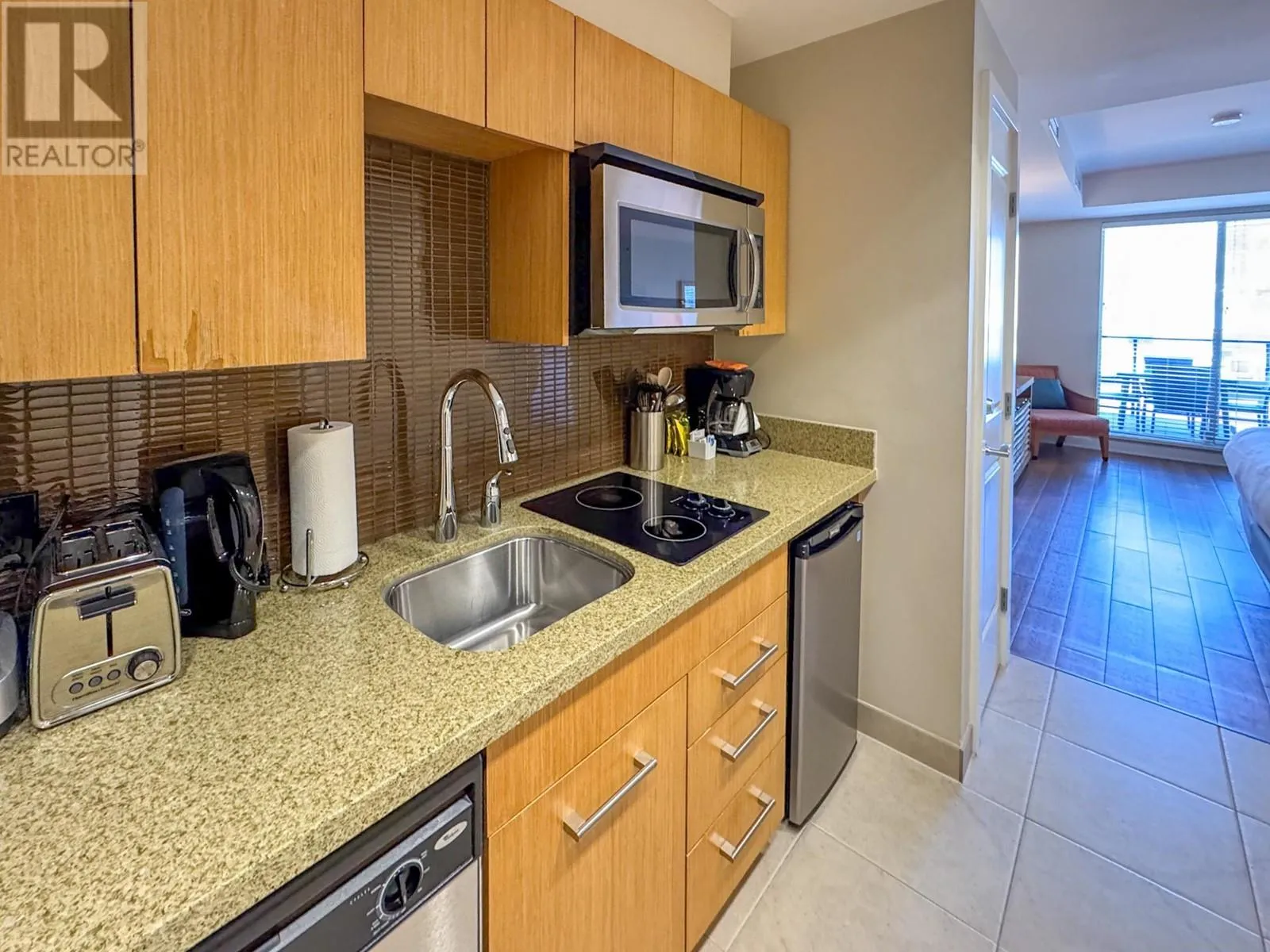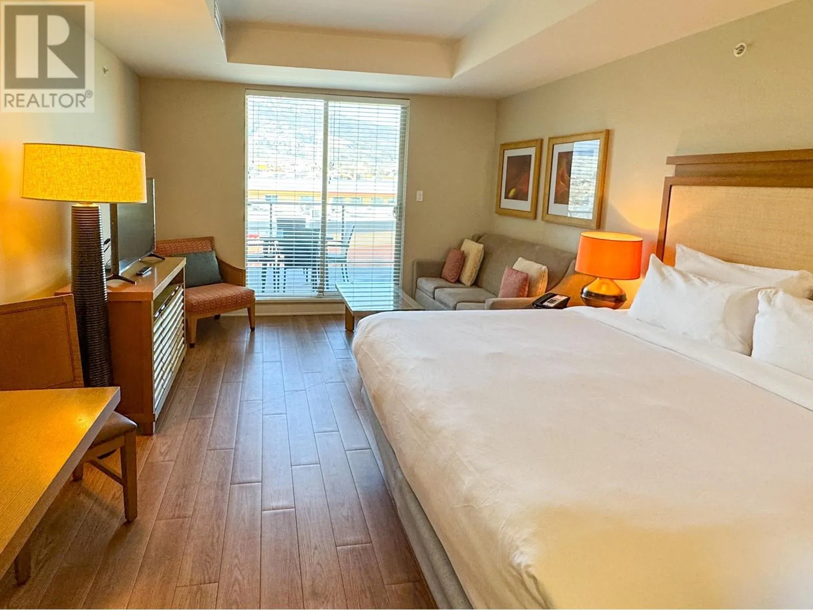 Luxury Resort Living â Own at Watermark Beach Resort on stunning Osoyoos Lake! This stunning fourth-floor studio suite at Watermark Beach Resort is listed at $195,000, well below its $233,300 assessment! Step inside and be greeted by a bright, contemporary space with upscale finishes. The fully equipped kitchenette features sleek granite countertops, modern appliances, and stylish wood cabinetryâideal for prepping quick meals before heading out to enjoy Osoyoosâ best lakefront location. The open-concept living and sleeping area offers a comfortable queen-sized bed, cozy seating area, and large windows leading to your private balcony. Additionally, no balconies look over or down onto this one! From here, enjoy a glimpse of Osoyoos Lake, perfect for checking water conditions before grabbing your paddleboard or beach gear. As part of the rental pool, this suite is perfect, whether youâre a snowbird looking for a winter escape that can be rented out in summer or someone seeking a vacation home with unlimited personal stays with additional rentals to help pay the bills. This is the lifestyle you deserve! Watermark Beach Resort offers unparalleled amenities, including a stunning outdoor pool, hot tubs, spa, fitness center, on-site restaurant, and beachfront access. Please note: This unit cannot be used as a permanent residence. GST applies to the purchase. (id:27476)