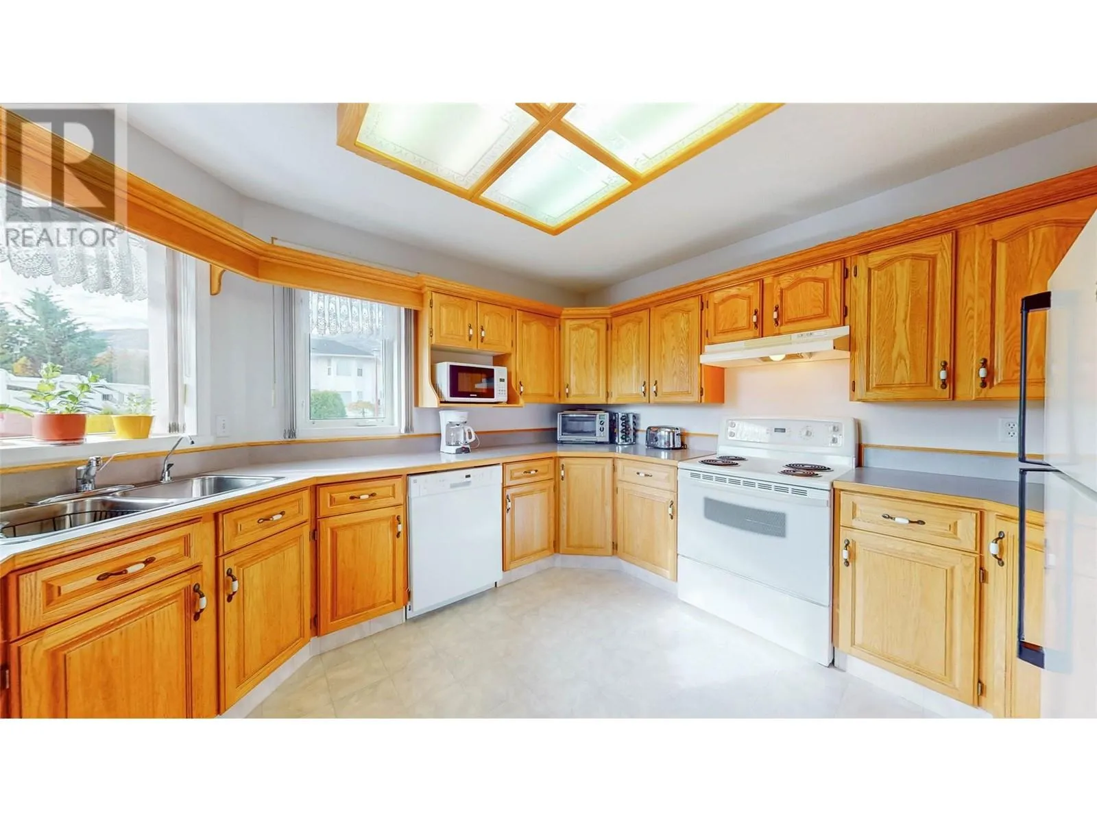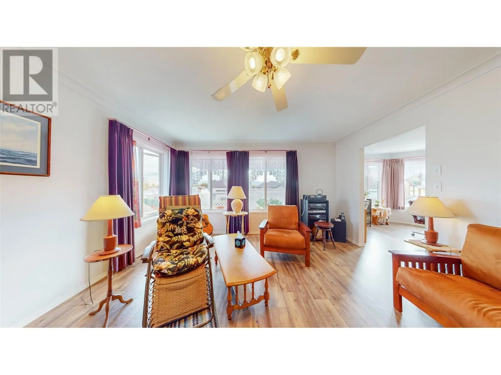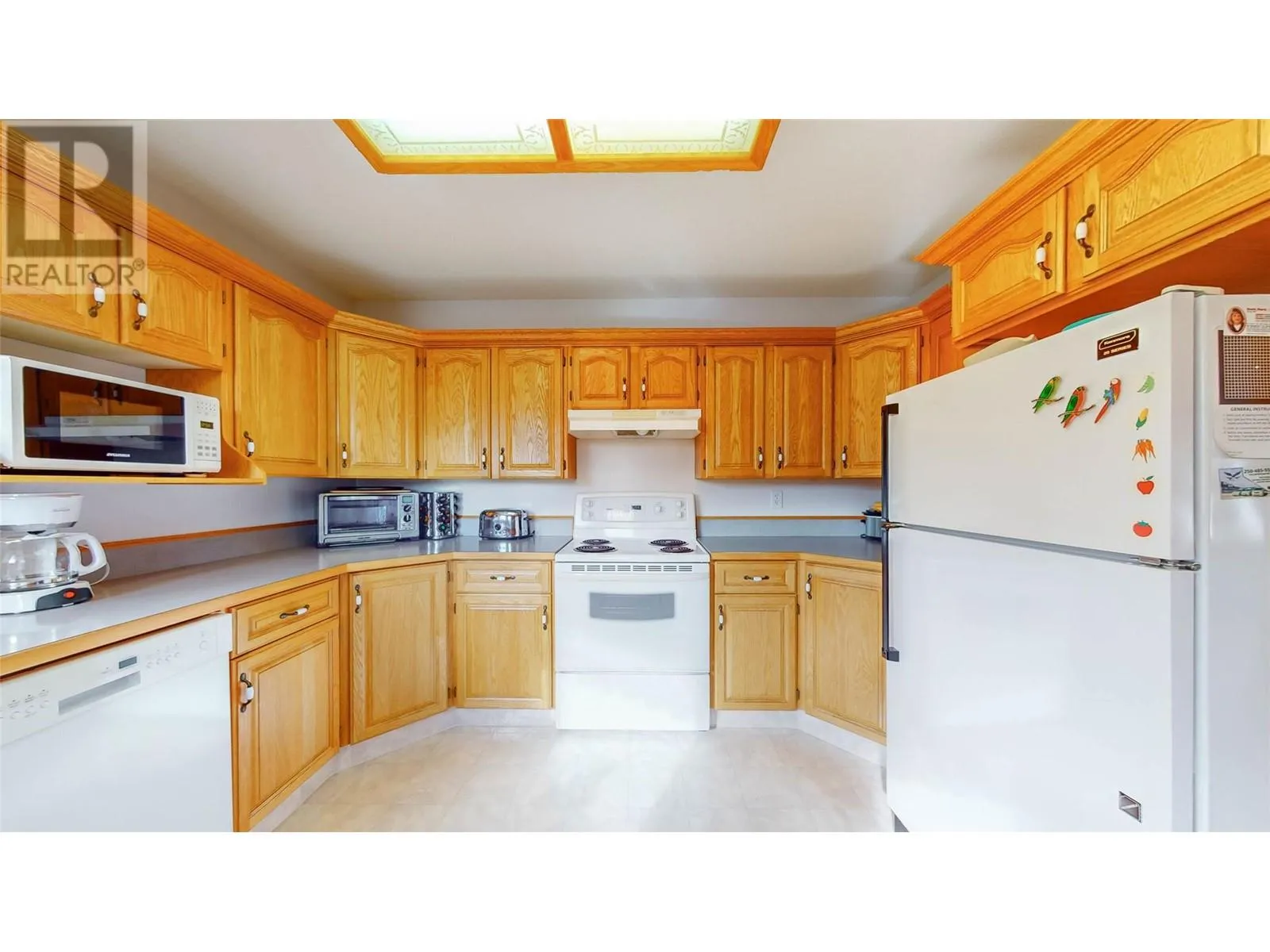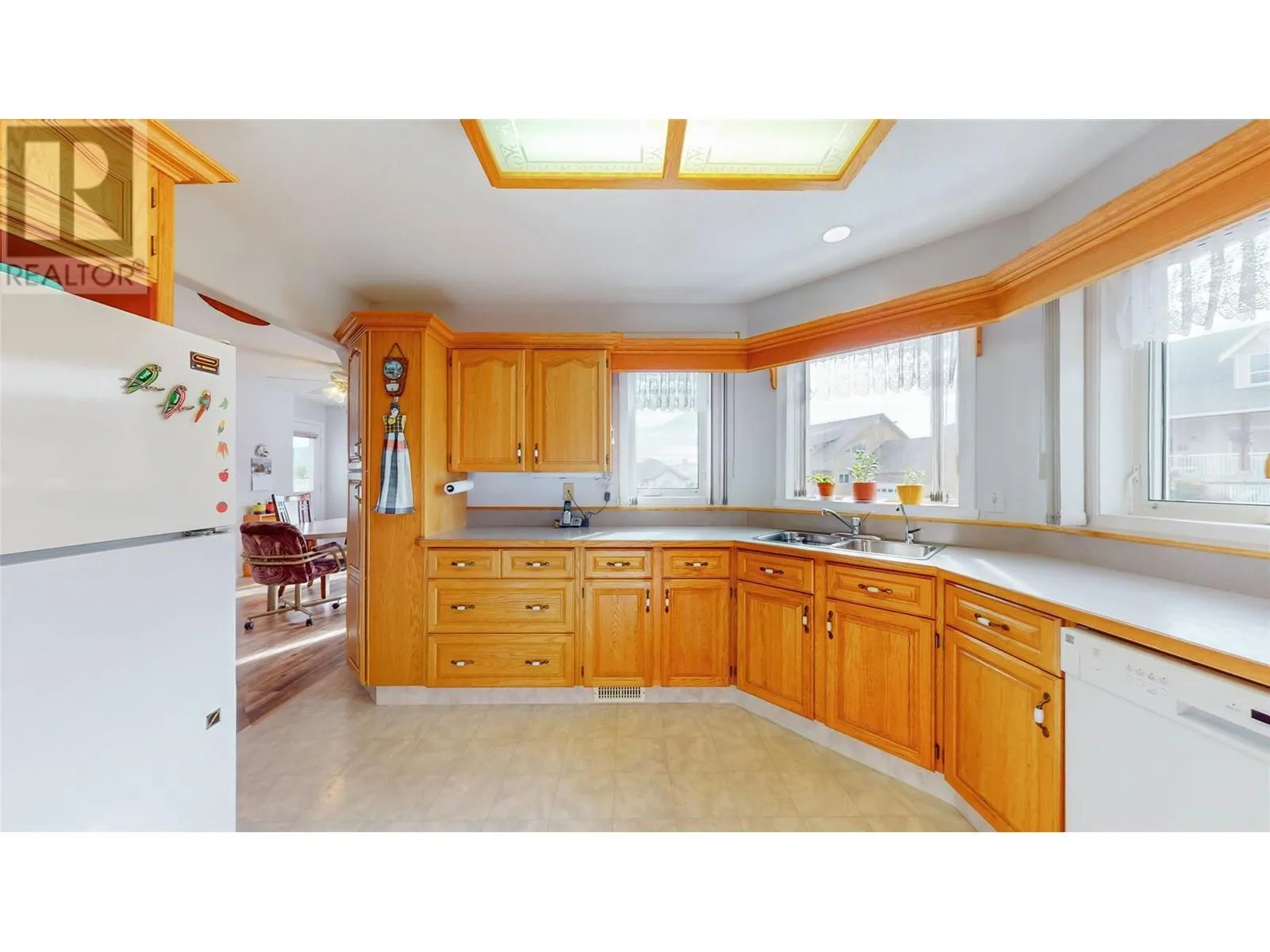 This solid, well cared for home features an attached double garage with a dedicated workshop area, plus a rare high-clearance (RV) garage, ideal for your RV, boat, or oversized truck. Walk in on the main level to a welcoming living room with a cozy fireplace, a separate dining area, and a bright, functional kitchen. Two bedrooms and two full bathrooms are located on the main floor, including a primary suite with a 3-piece ensuite and walk-in closet. Step outside onto the view deck and take in the peaceful surroundings or enjoy the second covered deck conveniently located off the laundry room. Downstairs, youâll find a spacious 2-bedroom in-law suite with its own private entrance, perfect for extended family or guests. Equipped with a new furnace and central air conditioning and there is plenty of extra storage. Situated on a low maintenance corner lot on a quiet, no-through street, this home offers both privacy and convenience. Just minutes from shopping, dining, and it's near Osoyoos Lake! (id:27476)