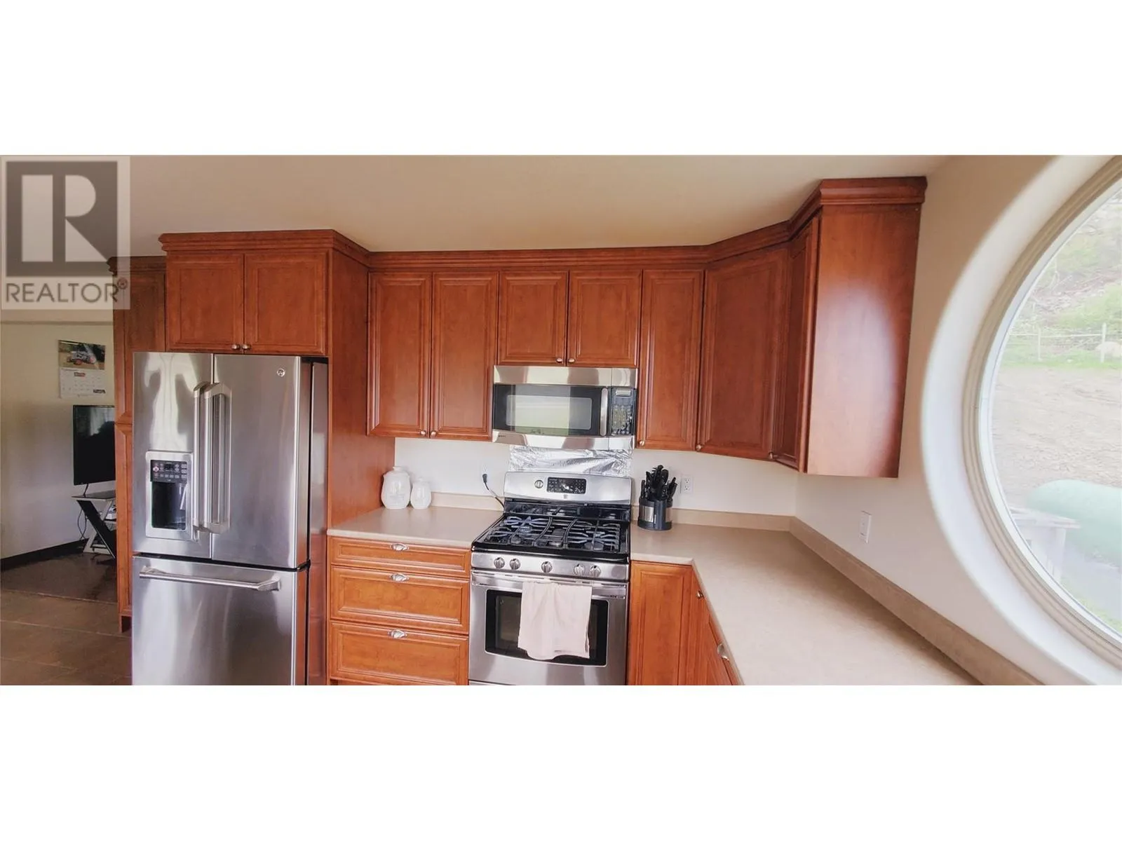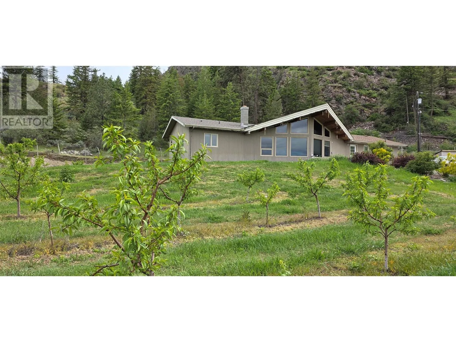 For those seeking a private oasis within a short drive (7 minutes) of downtown Osoyoos, this property offers a unique opportunity. This spacious rancher features 3 bedrooms plus a den and is situated on 5 acres of mostly flat and fenced land, including 3 acres of peaches. There is ample storage available for farm equipment or recreational vehicles. The property boasts a substantial workshop divided into two sections, measuring 30'x40' and 14'x40', both with durable metal siding and a metal roof. Additionally, there is a covered space on concrete, measuring 22'x33'. Pet owners will appreciate the 10'x10' insulated dog house. To arrange a showing, please contact your realtor today! (Also see Farm MLS 10346627) (id:27476)