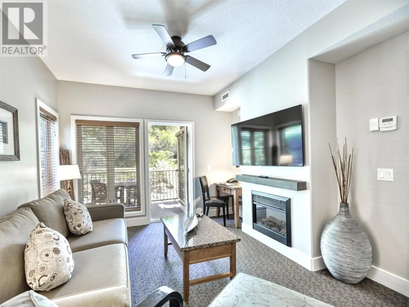BEST DEAL at Spirit Ridge/Hyatt Resort & Spa in Osoyoos. Luxurious GROUND-FLOOR, FULL-SHARE, ONE-BEDROOM UNIT. Fully furnished and equipped, this PET-FRIENDLY suite sleeps 4-6 with two queen beds + a pull-out sofa for guests, and features a private patio, granite countertops, stainless steel appliances, and a stylish living space with in-suite laundry. World-class amenities include two pools, hot tubs, a fitness center, beach access, and an award-winning winery and restaurants. Full-share ownership means you can holiday when it's convenient for you. Perfect for snowbirds to use in the winter, then add to the Hyatt rental pool in the summer months to maximize your investment and offset ownership costs. This property is a pre-paid lease on native land, managed by a Homeowners Association with applicable fees. Check out the media tab for video tour, floor plan, and more resort photos. (id:27476)