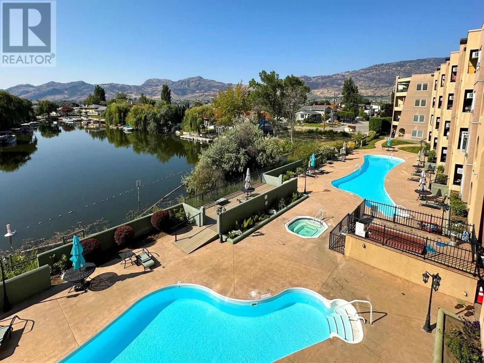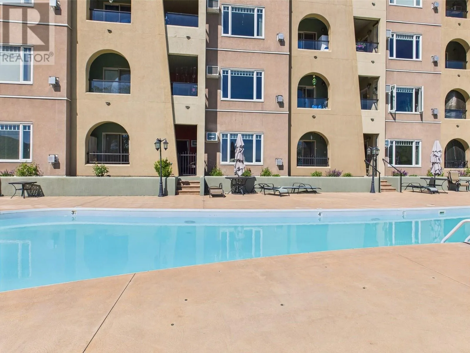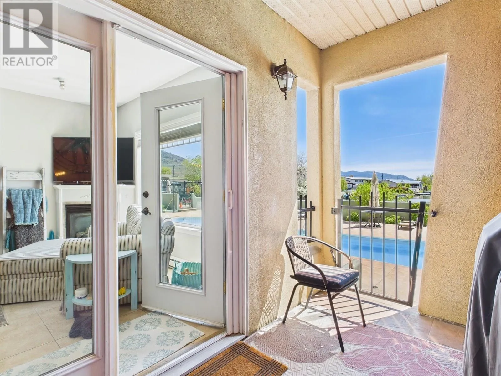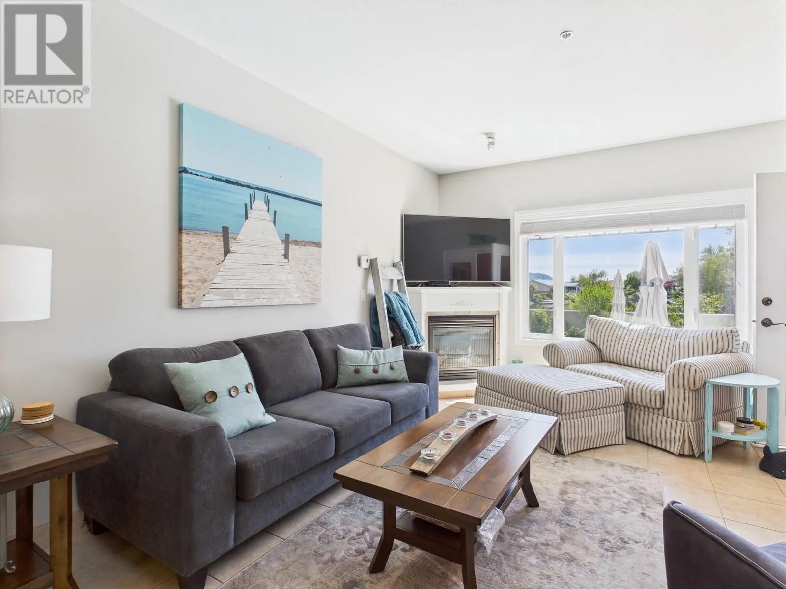 Live your best life at Desert Mirage. Nothing to do here but move in and start enjoying all this unit has to offer. Bright kitchen with stainless appliances opens onto spacious eating area where there's lots of room to gather with friends. Floors are tile and laminate in this bright unit, easy care for a lakeside home. There are 2 spacious bedrooms at opposite ends, Primary with spacious ensuite & 2nd bedroom with private access to a full bathroom. Each room has it's own a/c. Best of all each of these rooms have an amazing lakeview. If you need extra sleeping room the den can house your overflow guests. There's a corner gas fireplace for chilly days, 2 covered decks to extend outdoor year round outdoor enjoyment. It's hard to beat the location of this condo. Ground floor means you can park right outside your door and make unloading groceries easy! On the lake side your deck has easy access to the pool making heading in for a snack simple. Desert Mirage is a gated complex & offers 2 heated pools, hot tub; a great walking neighbourhood near restaurants, park & lakefront walkways. Located a short drive to 2 golf courses, town center & many award winning wineries. This home is perfect for retirement, a family holiday home or an investments. Call today to book a viewing. All measurements approximate and should be verified if important. (id:27476)