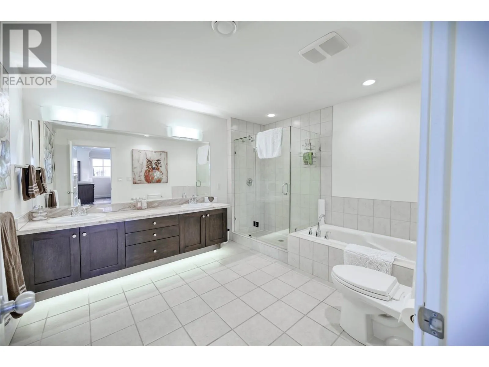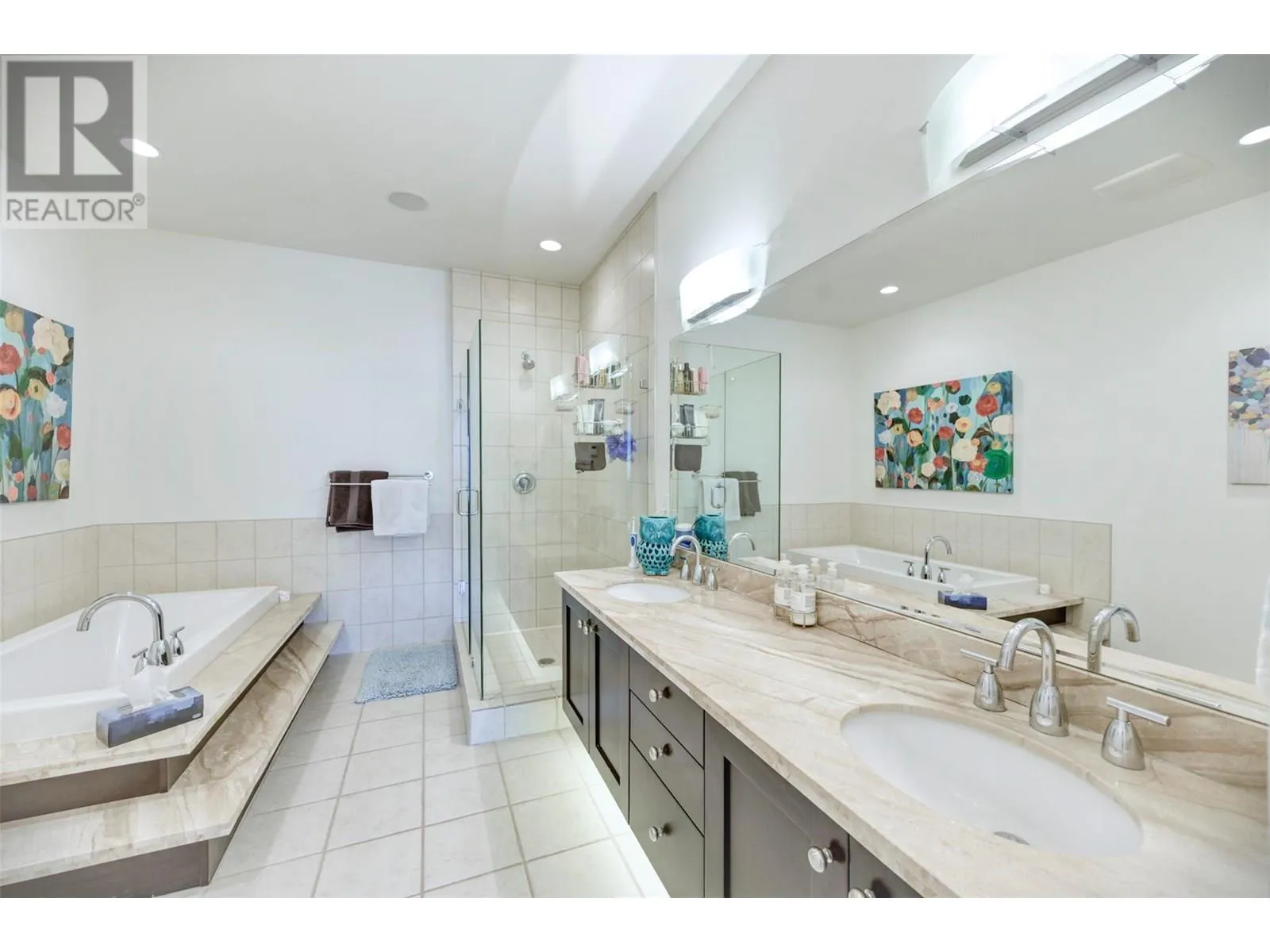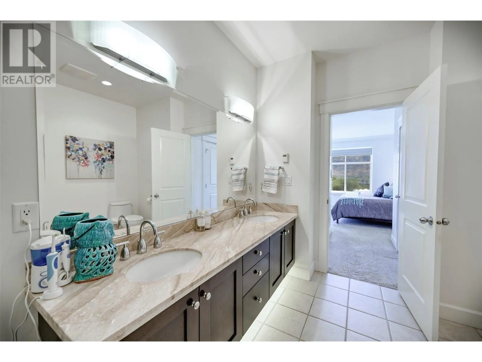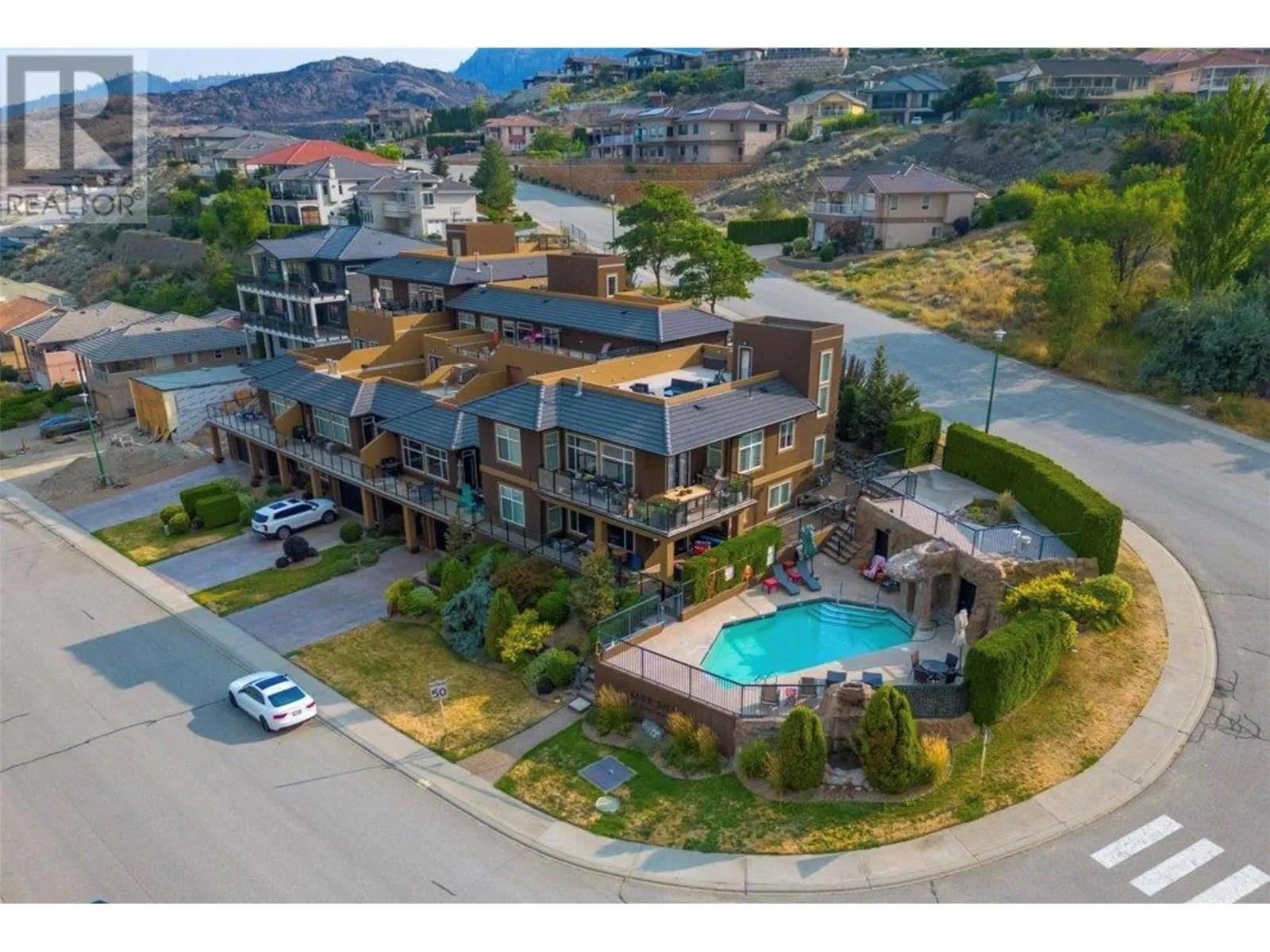 EXQUISITE HOME, STUNNING VIEWS of the lake and mountains, and much much more... If you like the BEST of the BEST, this gorgeous home is for you! End unit, the best unit, the best floor plan in Club Siesta, an exclusive complex of only 6 separate townhouses, located on Pebble Beach Dr., next to the 36 hole Osoyoos Golf Course, minutes to the lake, beaches and all amenities. Better than a house and better than a townhouse, this worry free home features 9 ft ceilings with extra soundproofing and fireguard insulation, oversized windows and doors to maximize views, Maple Prestige solid hardwood and Jerusalem stone flooring, marble and granite countertops, kitchen retrofitted to create 2 additional pantries and extra storage space, newer appliances, newer air conditioner and newer hot water tank, in-floor heating in the ensuite and the rec room, pre-wired for cinema and surround system, super-sized sun decks finished in tufflex stamped concrete and a lot more. Extra-spacious double car garage, superb landscaping, walk out to the outdoor swimming pool, and steps to the Golf Course. ***Please note the swimming pool photos were done before pool closed for renovation. Brand new pool coming soon. (id:27476)