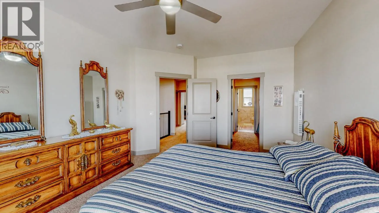 This beautifully appointed end-unit half duplex offers elegance, space, and location. With 3 bedrooms, 2.5 bathrooms, and an airy layout filled with natural light and 9â ceilings. This move-in ready home is a hole-in-one for golf enthusiasts, located just steps from the Osoyoos Golf Club! On the main level, enjoy seamless indoor-outdoor living with a sunny patio, ideal for your morning coffee or evening glass of wine. Upstairs, unwind on the private upper deck with its panoramic lake & mountain view. The primary suite is a true retreat, boasting a spa-like 5-piece ensuite with dual vanities, walk-through closet, and plenty of room to relax. The modern kitchen features a large pantry and flows effortlessly into the open-concept living and dining area. A gas furnace, central A/C, and natural gas BBQ hookup make year-round living comfortable and efficient. Additional features include a laundry room conveniently located on the upper level, a spacious garage with room for both a vehicle and your golf cart, and a generously sized utility room for all your storage needs. As a bonus, residents enjoy access to the community Clubhouse, perfect for social gatherings and a true sense of neighborhood. Whether you're downsizing, retiring, or simply seeking low-maintenance living with unbeatable amenities and two 18 hole courses only a one minute golf cart ride away. Fairview Estates is your key to relaxed and enjoyable Osoyoos living. (No age restrictions) (id:27476)