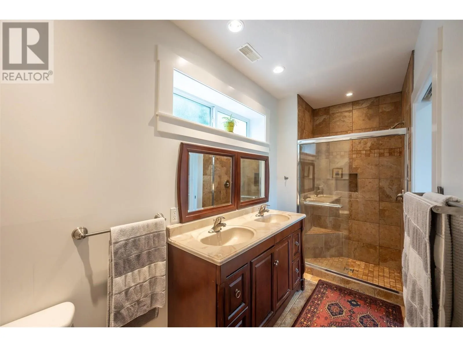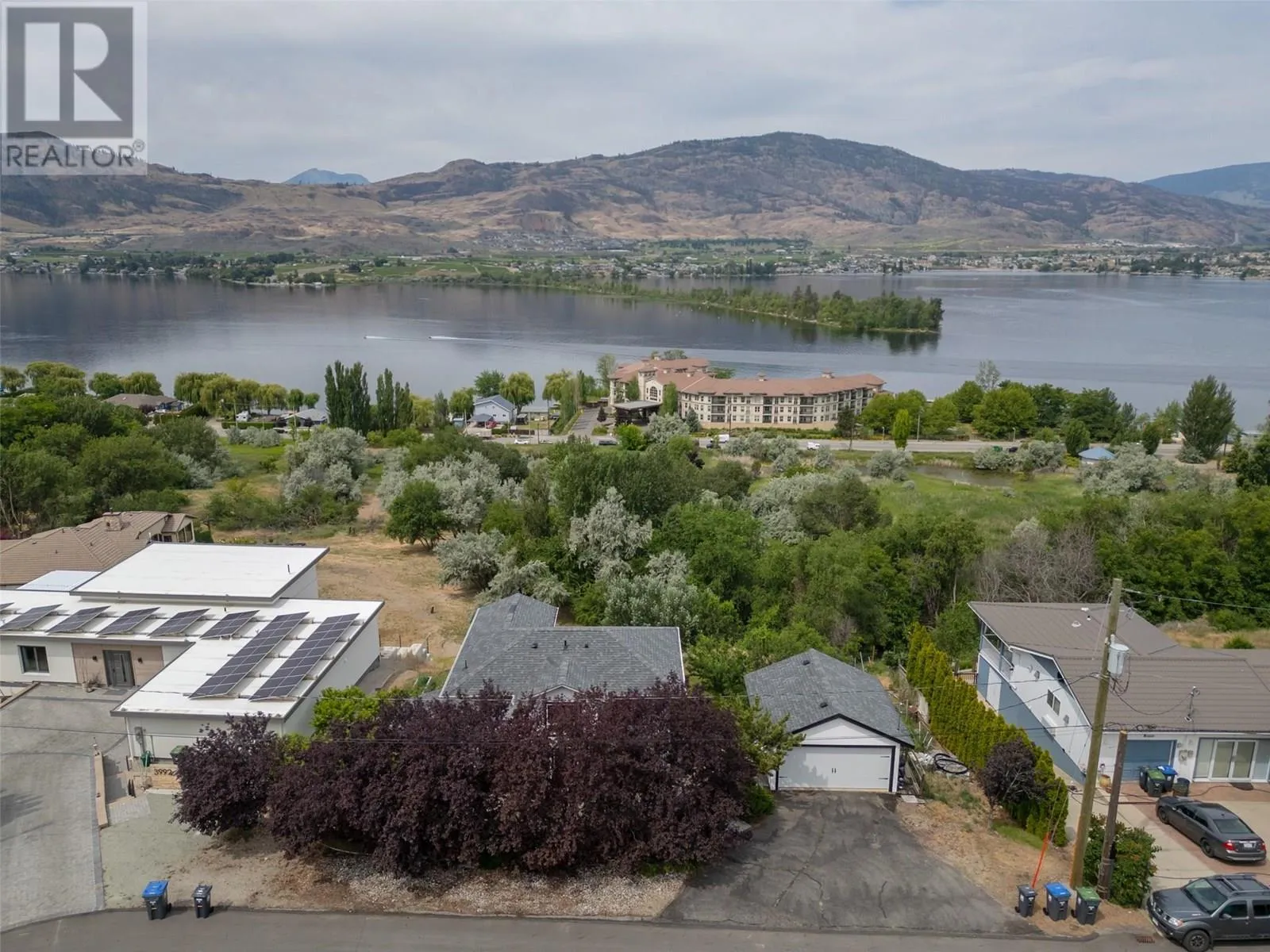 MILLION DOLLAR VIEWS! Perched on the sunny East Bench of Osoyoos, this stunning home offers panoramic 180° views of Osoyoos Lake, the town, vineyards, orchards, and surrounding mountainsâsome of the best vistas in the entire Okanagan Valley. Enjoy peaceful mornings or evening wine from your deck, soaking in the breathtaking scenery. Built in 2011, this quality 2 bed 3 bath home is located in a high-end neighborhood on a spacious 0.44-acre lot. The main floor showcases an open-concept layout with a bright white kitchen, large dining area, and a living room with a wall of windows that capture the incredible views! Downstairs, youâll find two spacious primary bedrooms, each with their own exclusive ensuite and direct access to the backyard through private sliding doors. Both ensuites feature heated floors for year-round comfort. Outside, the beautifully landscaped yard includes stamped concrete patios, fruit trees, and plenty of space to relax or entertain. A detached garage includes a bonus unfinished lower levelâperfect for a future guest suite, workshop, or studio. Located within the RDOS, this property benefits from low annual taxes. Just minutes to world-class wineries, beaches, golf courses, shopping, schools, and downtown Osoyoosâthis is the ultimate Okanagan lifestyle! (id:27476)