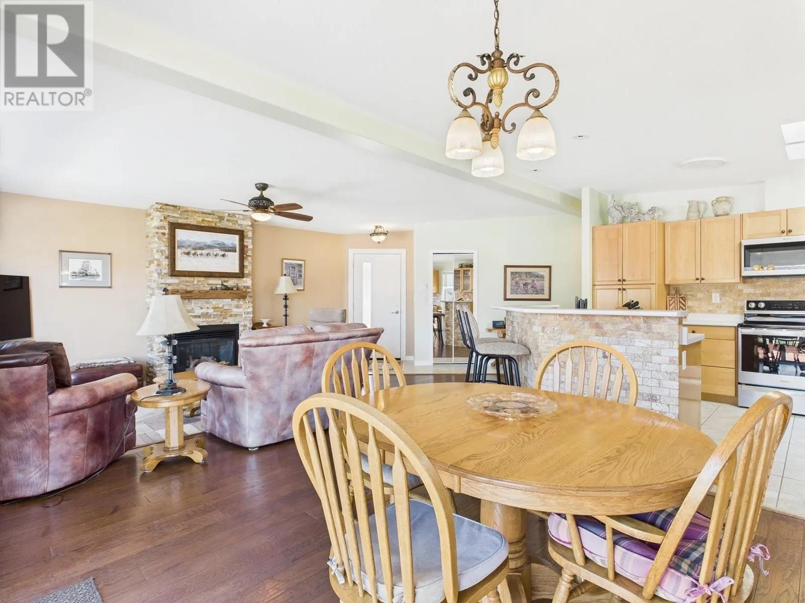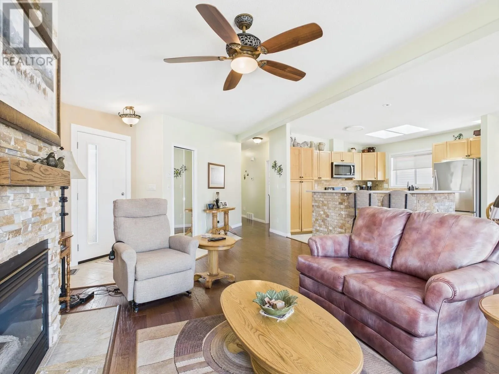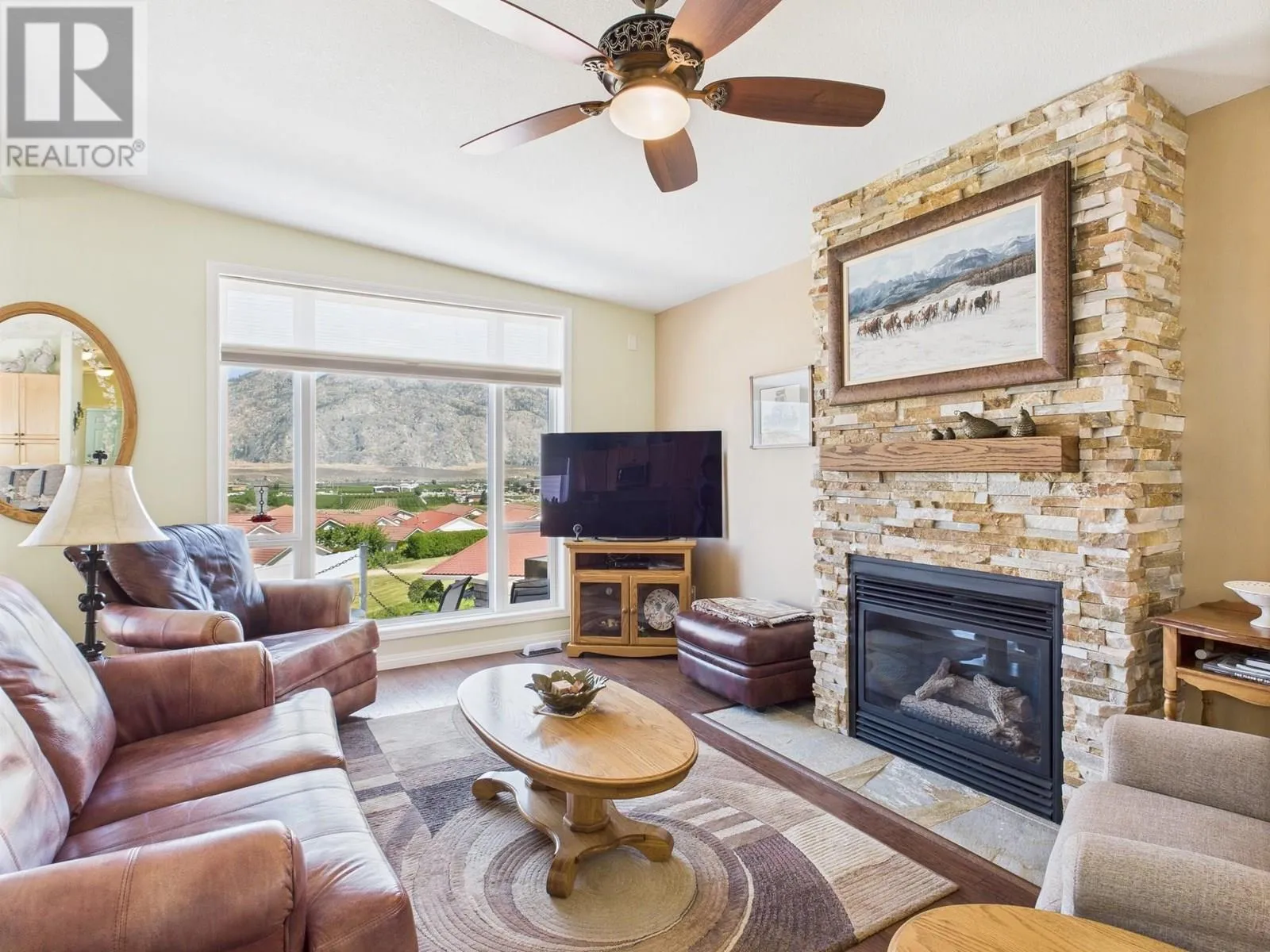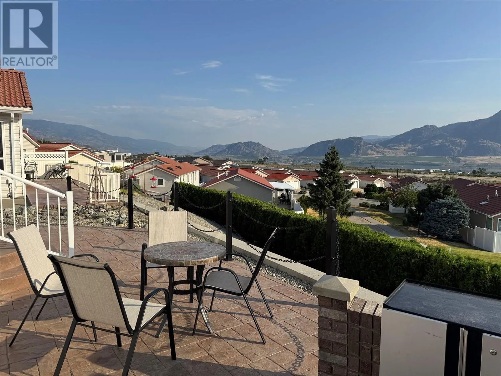Panoramic Views of Osoyoos, Osoyoos Lake and the Mountains from this beautiful home in Casitas del Sol. This one level home has a very Inviting Bright Open Floor Plan. Great home for Entertaining. Living Room with Gas Fireplace, Deck off the Kitchen/Dining area to enjoy morning views with coffee or Twinkling Lights at Night. There is 2 bedrooms, the Primary is a great size, with Large Double Sink and Double Mirror Ensuite as well as good sized Walk in Closet. Full main bathroom beside 2nd bedroom for guests. Large laundry room as you come in from Garage. Newer Whirlpool Kitchen Appliances-Fridge, Stove and Microwave (2022) Carrier Air Conditioner and Furnace ( 2022) Seamless Eavestrough System (2022) Reverse Osmosis (2021)Garage is 20 x 15 approximately. Wheelchair Accessible. This home is immaculate and has been well maintained !! A must see, a truly beautiful place to call Home!! (id:27476)