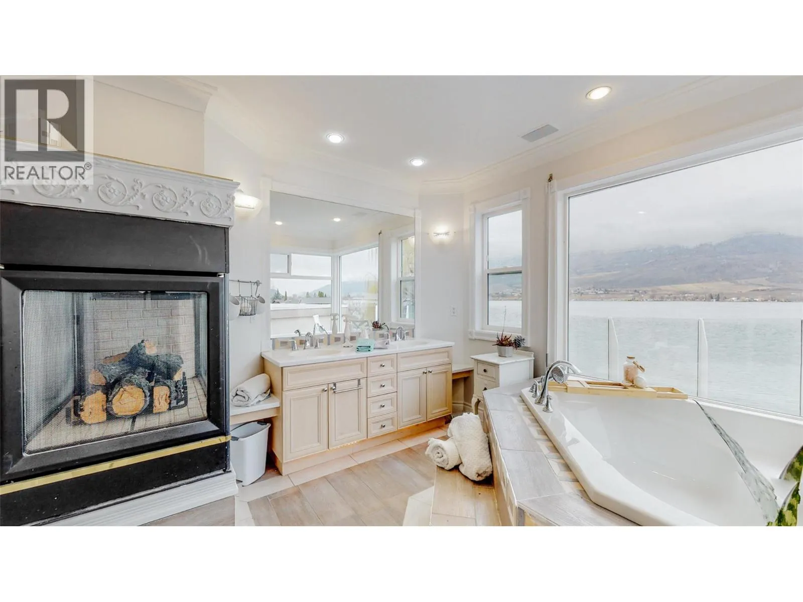 LAKELOVERS WELCOME! Custom waterfront home on quite cul-de-sac. Open living design. Gourmet kitchen, granite counters, 2 ovens, prep sink in magnificent island with plenty of seating around to enjoy your guests while cooking with the picture perfect lake background. Huge walk-in pantry. Designed for ultimate lakeviews & privacy. Tile and hardwood flooring. Lower level has roughed in room for home theatre, gym or games room, get creative. Full 2 bedroom in-law suite(unauthorized) in lower walk out basement. you'll also find a private studio recroom area here. Spacious and pampering primary bedroom with 3 sided fireplace, and soaker tub overlooking the lake & private deck perfect spot to watch the night sky. Mainfloor deck is large enough to host the largest family & overlooks the inground pool. Lower deck is poolside and offers shade on those extra hot summer days. Pool has slide & outdoor shower plumbed hot and cold! Special features of this home are multi-zoned in-floor heating, tile flooring, amazing natural light provided by the central architectural feature skylight & fire suppression sprinklers throughout, new roof in 2024, new rooftop air-conditioner in 2023, new deck surfacing in 2020, 3 gas f/p and complete with double car garage. This private Lakefront home will not disappoint and is a must see. A great multi-generational/ family home Book your private viewing today. Measurements should be verified if important. Seller is a licensed REALTOR. (id:27476)