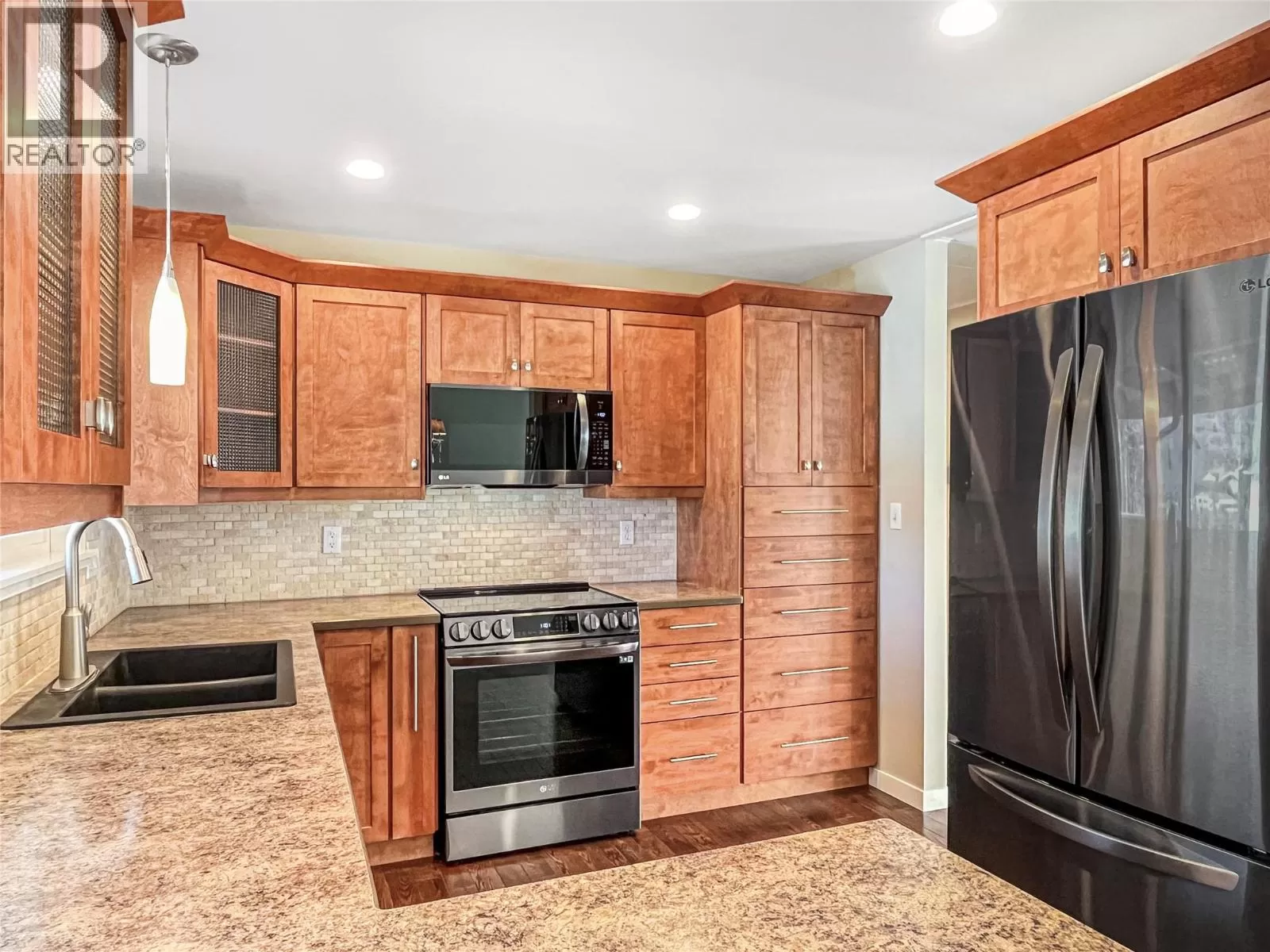 Charming Family Home in Quiet Neighbourhood in Osoyoos available for IMMEDIATE POSSESSION. Discover the perfect blend of comfort and convenience in this solidly constructed residence nestled in a family-friendly area of sunny Osoyoos. Boasting a spacious layout, rather deceiving from the outside, this home with SUITE POTENTIAL features 4 large bedrooms with the flexibility of 2 additional den/offices that could easily be converted into 2 extra bedrooms, making it a potential 6-bedroom, bright livingroom, remodelled kitchen, spacious family room with gas fireplace, 2 & 1/2 bathrooms and plenty of storage room. This home has been partially re-modelled and the list of updates include: a new roof installed in August 2020, a premium ""Ellis Creek"" kitchen renovation from 2008, a cozy gas fireplace insert added in 2015, and 3/4â solid ash wood flooring upstairs, adding a touch of sophistication. Parking includes a carport and a detached single garage that can be used as workshop, huge driveway that can accommodate several vehicles and an RV. This home is truly a gem in Osoyoos, ready to provide a warm and inviting atmosphere for your family. Donât miss out on making it yours! (id:27476)