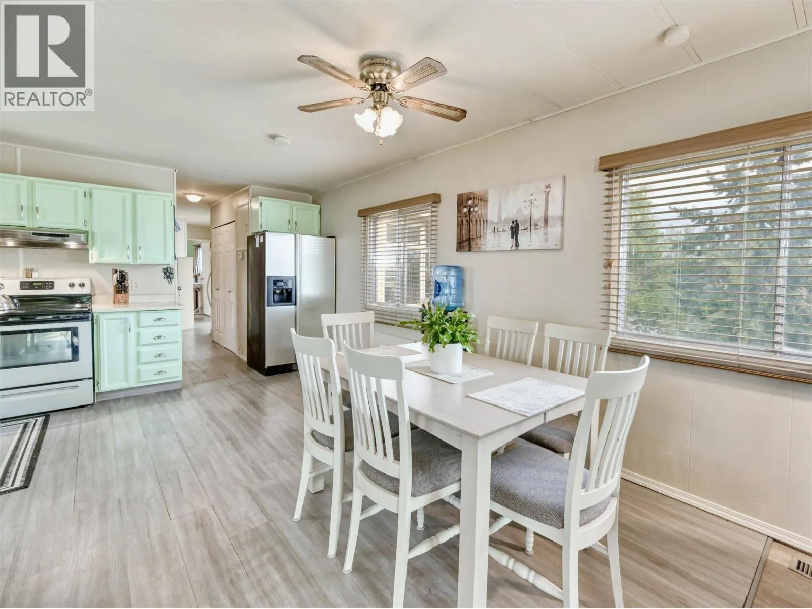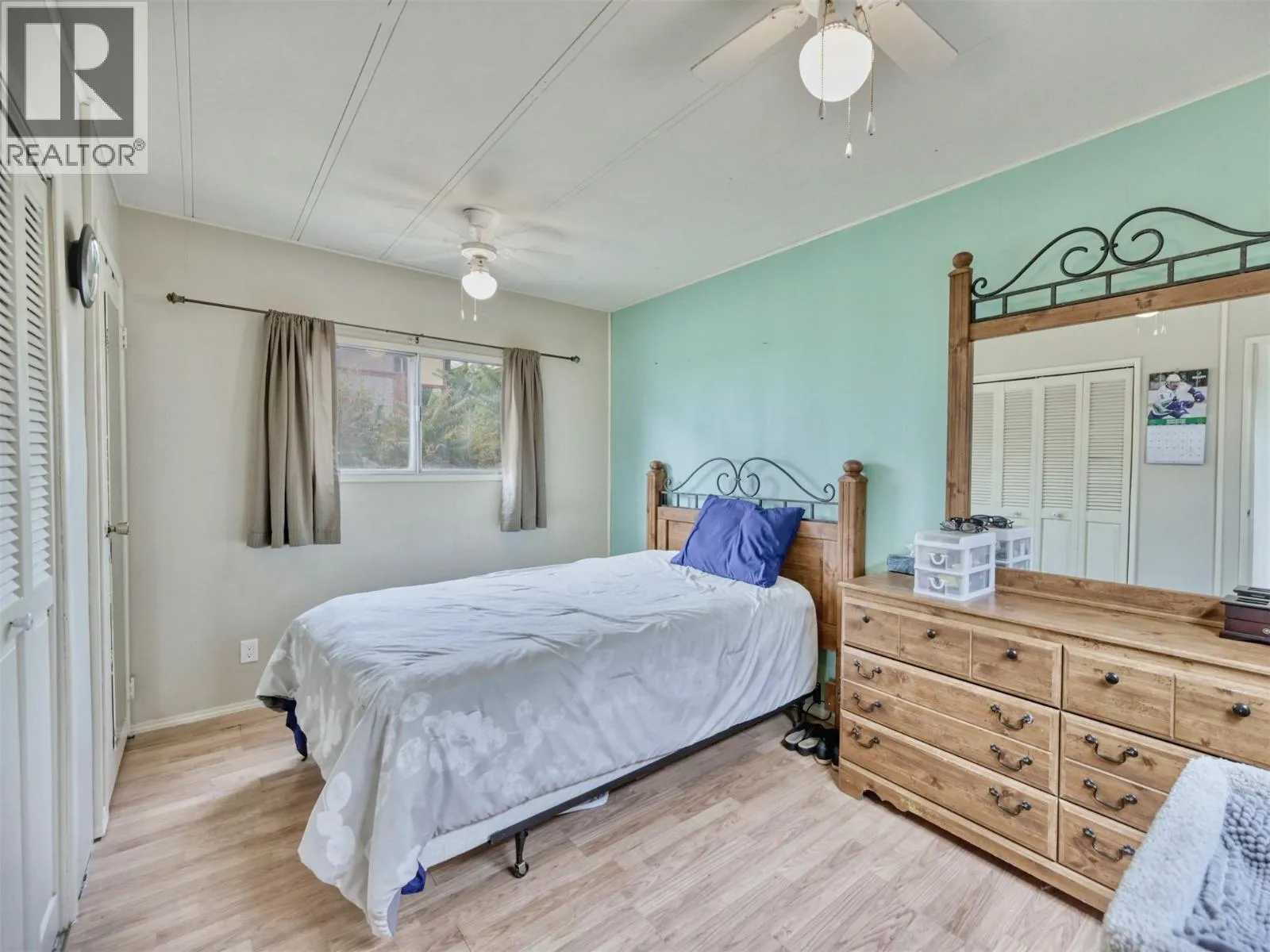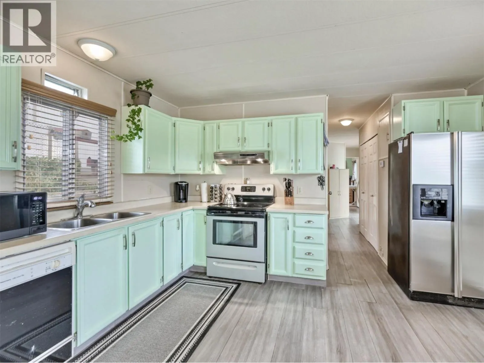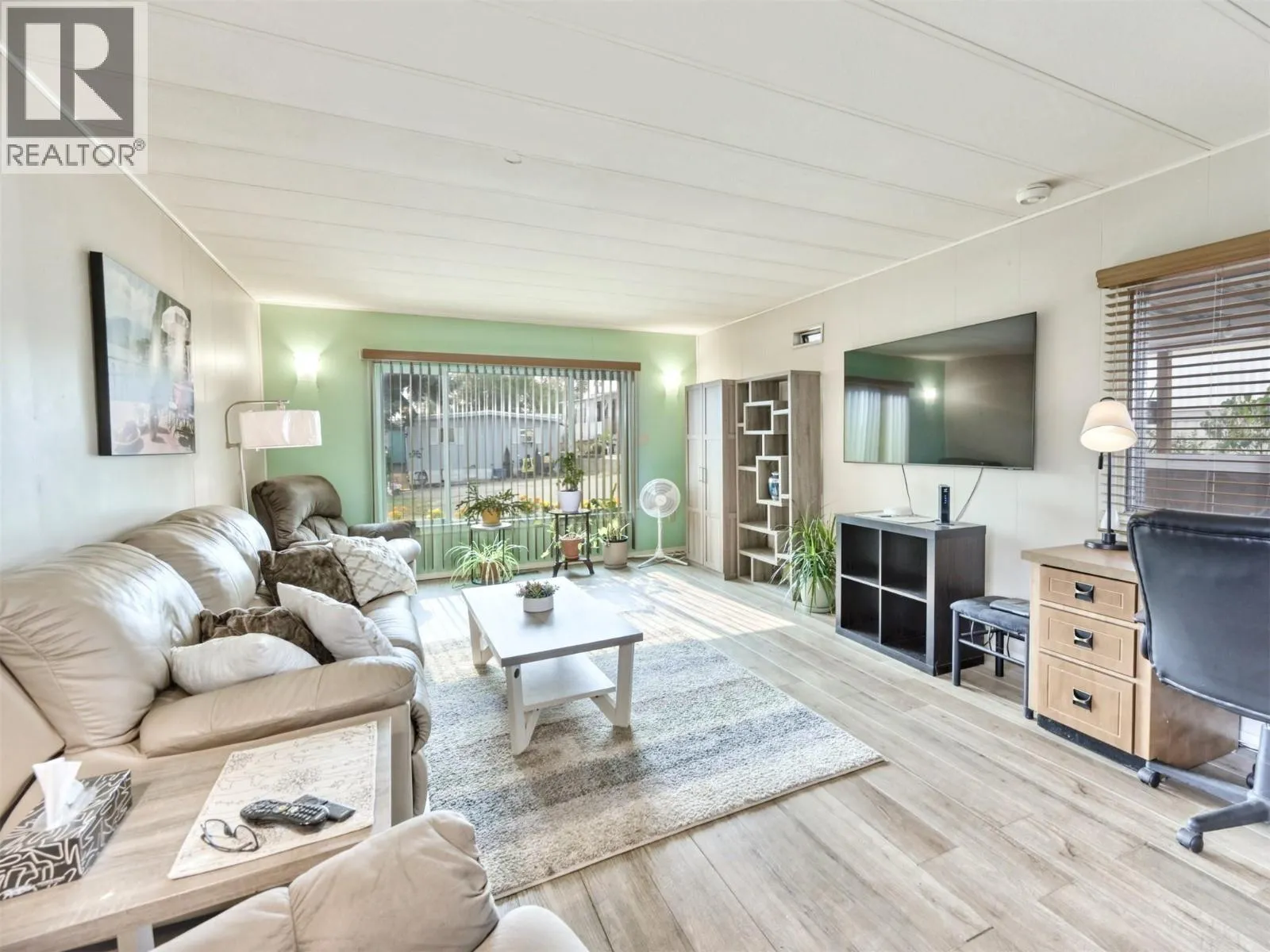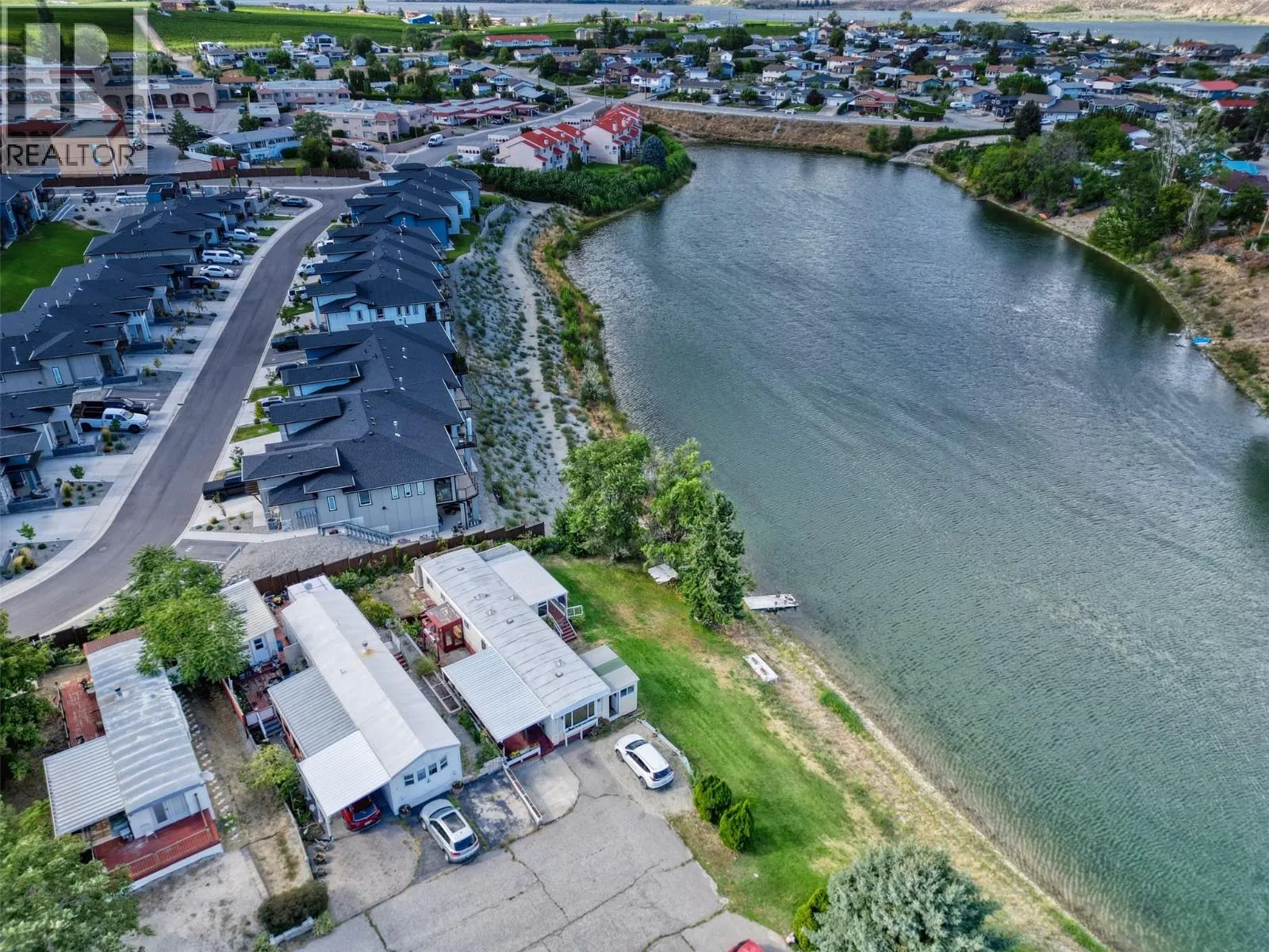 Rare chance to own a WATERFRONT home on Peanut Lake in Osoyoosâenjoy kayaking, fishing, or relaxing on your deck with serene lake & mountain views. This well-maintained 2 bed, 1 bath manufactured home offers a bright open floor plan with water views from nearly every window. Updates include vinyl flooring, newer appliances, furnace, hot water tank, and $3K in electrical upgrades completed Aug 2025. The yard features fruit trees, a greenhouse, 2 sheds & 2 covered decks. Offered furnished or unfurnishedâideal for retirees or snowbirds seeking low-maintenance, lock-and-leave living. Close to town and every amenity, Avalon Mobile Home Park is a quiet 55+ community with low PAD fees; one pet allowed (up to 18""). No rentals. An exceptional opportunity - there is nothing comparable at this price point in the South Okanagan. This one won't last long. Book your viewing today! iGuide measured, buyer to verify if important. (id:27476)