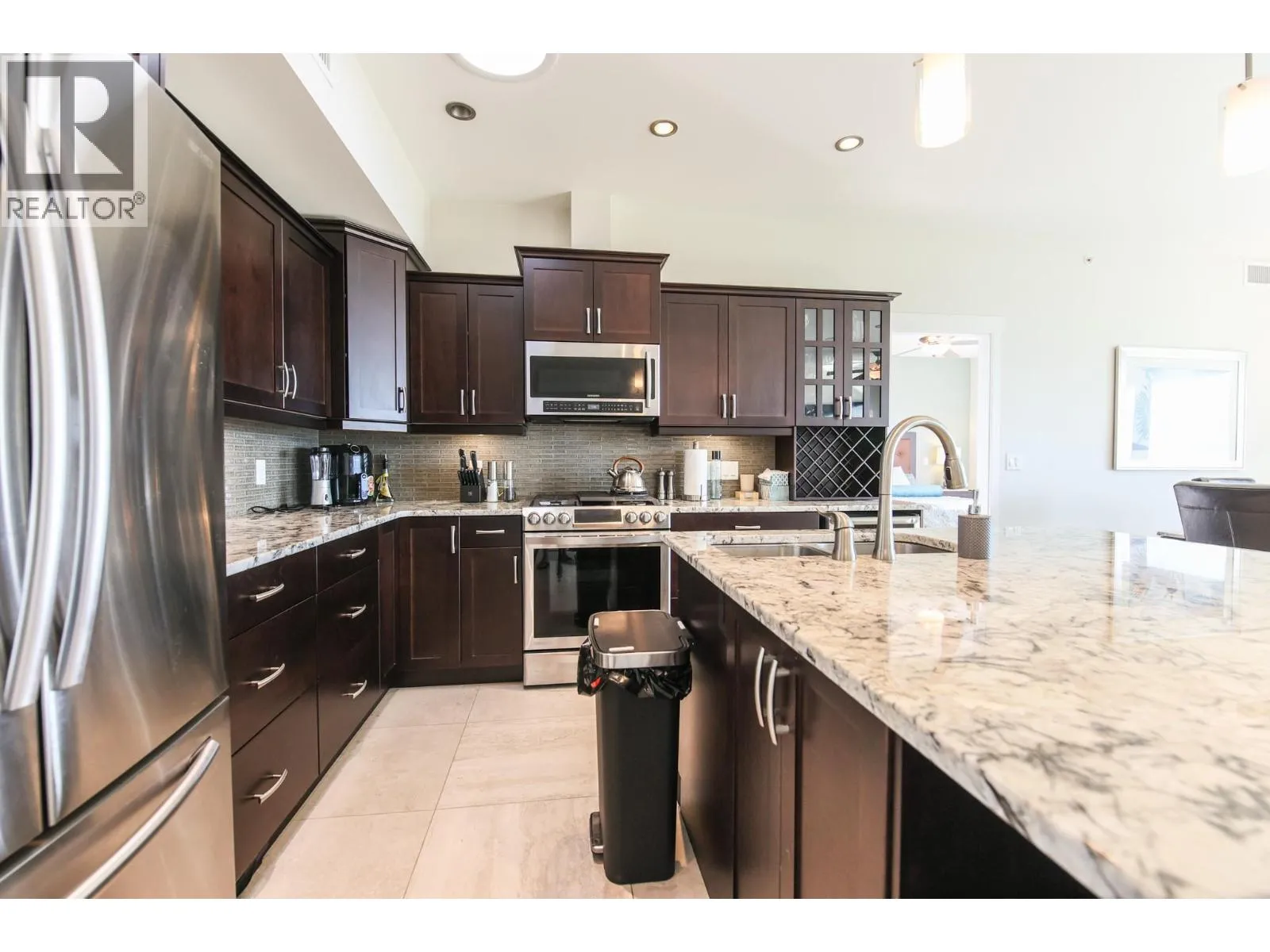 UNOBSTRUCTED LAKEVIEW IMMACULATE HOME ON GOLF COURSE IN SPIRIT RIDGE RESIDENCES IN OSOYOOS! This incredible townhome is perched on the 3rd row for one of the most amazing valley views in town! The Residences are built as an Annexe to the stunning 5-Star Spirit Ridge Hyatt Resort in Osoyoos. The owners/residents have access to all resort facilities including 2 pools, hot tubs, gym, clubhouse, restaurant, winery and more. This unit is offered fully furnished, including all interior and deck furniture, TVs, Home Theatre, Patio heaters and BBQ. This gated adult community is the perfect vacation home with rare short term rental opportunity or full time living! The stunning 1200+ sqft 2 Master Bedroom, 2 Ensuite Bath features 2 generous walk in closets, incredible views, and one sliding patio door right onto the 180 view new deck! Entertain guests in OPEN CONCEPT LIVING SPACE with custom Kitchen, Gas Stove, Wine Fridge, Woodwork Cabinetry, Granite Countertops, Stainless Appliances and more! Snuggle up beside a luxurious gas fireplace looking out the massive 15 FT WIDE FOLDING GLASS DOORS or bask on your private patio overlooking 180 view of the stunning Okanagan Valley with water views for miles while BBQâing and sipping wine with best friends! The large 2 car garage is upgraded with a 240v EV Charger! Only a short distance to downtown Osoyoos shopping, sandy beaches, restaurants, recreation, best wineries, multiple golf courses and more! Call to see this lovely home today! (id:27476)