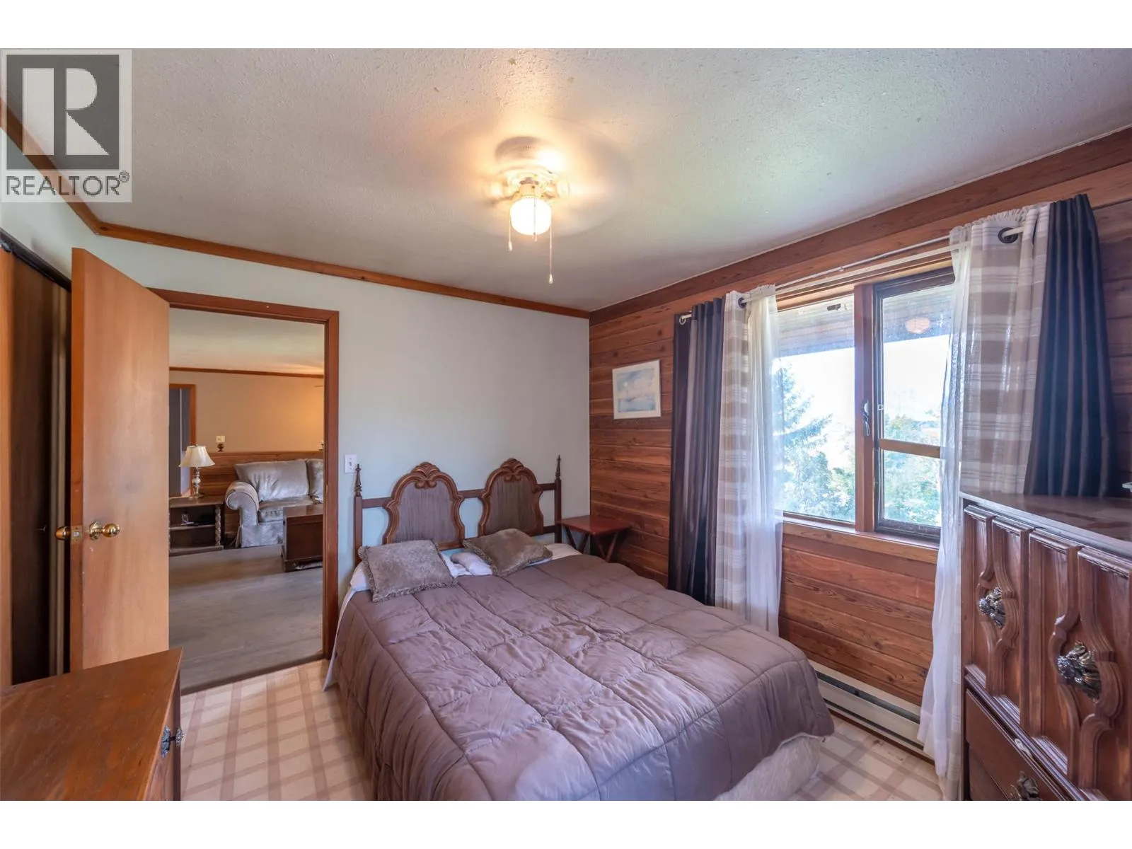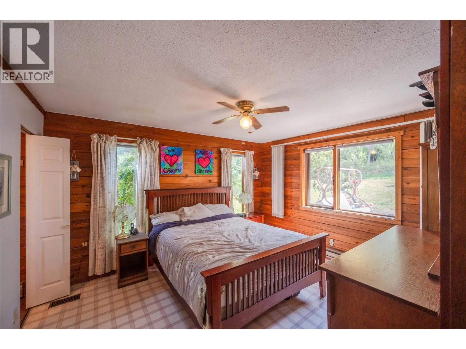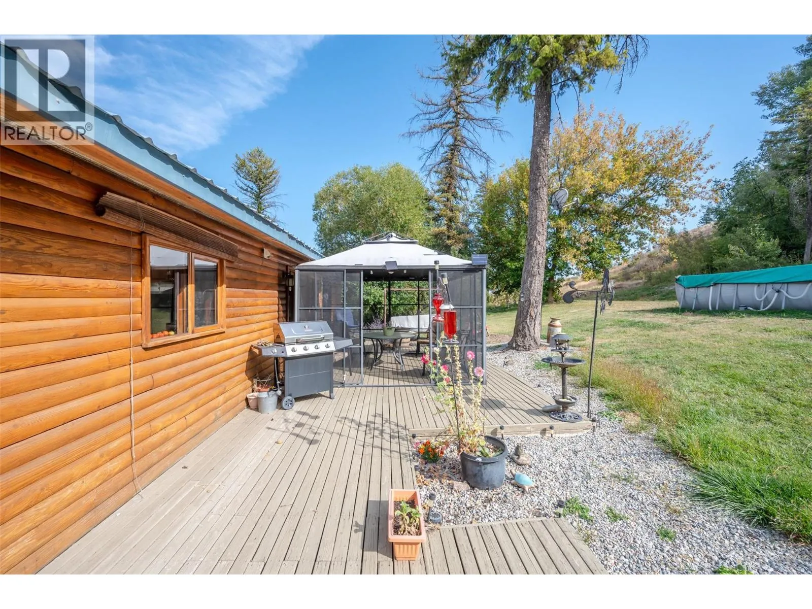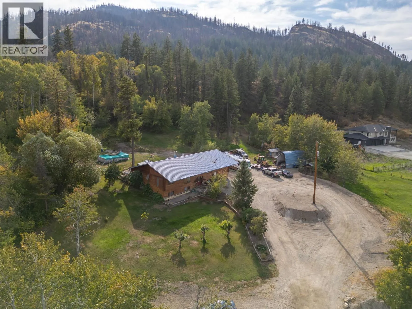 Discover this private 4.999-acre retreat just minutes from Osoyoos with excellent well water producing 15-20 gallons /minute, a well-maintained septic system, and plenty of parking with a convenient turnaround driveway. This two-story log home has a great open floor with 6 bedrooms, and three bathrooms. The main floor features three bedrooms, including a primary suite with walk-in closet and four-piece ensuite, an open-concept living and dining area, a spacious kitchen with ample counter and cupboard space, a second bathroom, and laundry. The lower level is offers a large family/games room, 3 additional bedrooms, a three-piece bathroom, and a bonus room that could be used as a wine cellar, den, or extra storage space. A root cellar provides additional functionality. Outside, the property boasts fruit trees, a cozy south facing patio area, an above-ground pool, and plenty of space for gardening or further development. The high point of the property even provides a beautiful lake view! The property is zoned SH4, which allows for a wide range of uses including a bed and breakfast, home-based business, secondary suite, and accessory buildingsâmaking it a very attractive option for anyone seeking flexibility. The property has an abundance of space to garden, build a shop, rental property, room to explore and more. Whether youâre looking for a spacious family home, an entrepreneurial opportunity, or simply a serene acreage lifestyle, this property checks all the boxes. (id:27476)