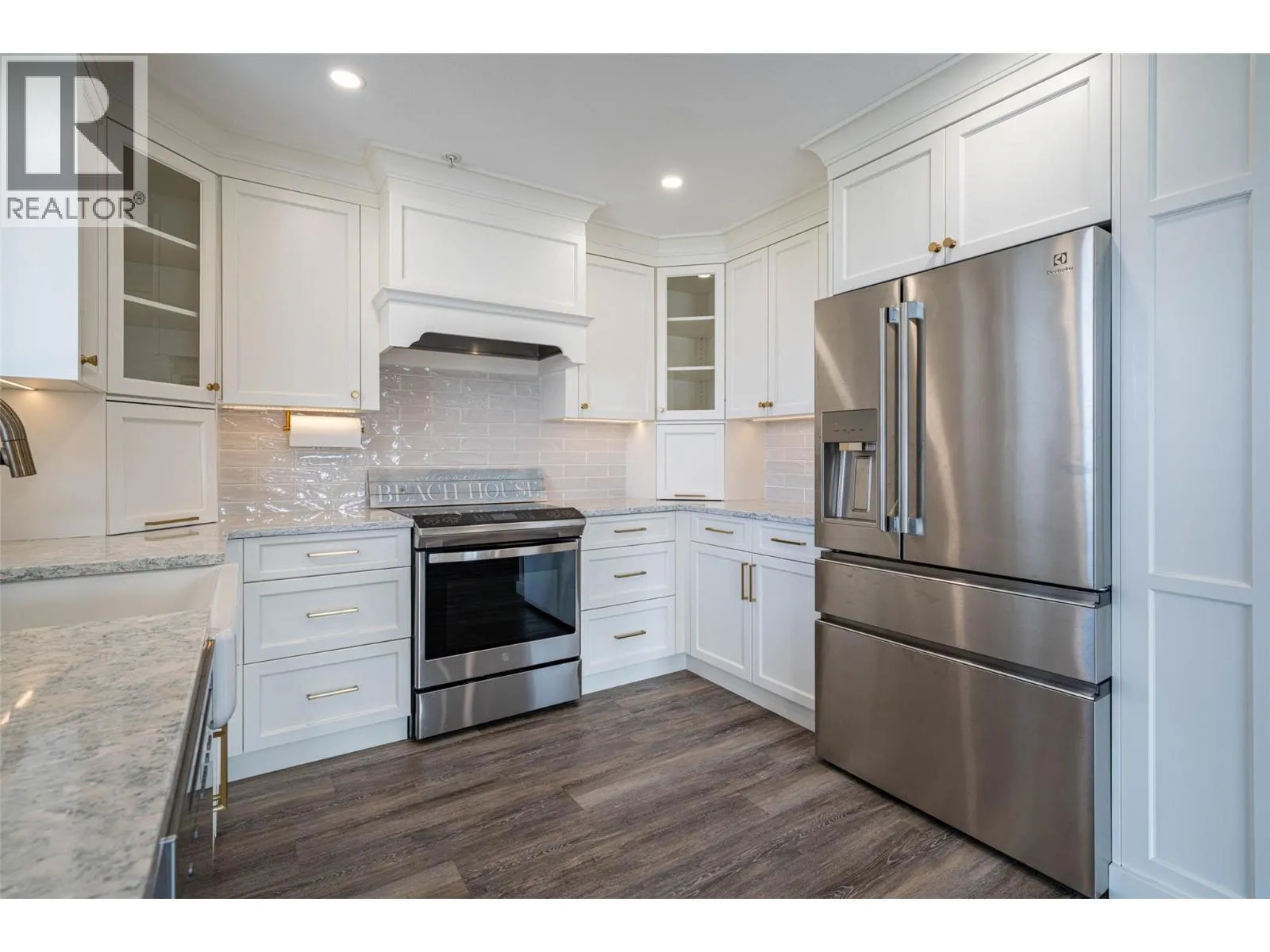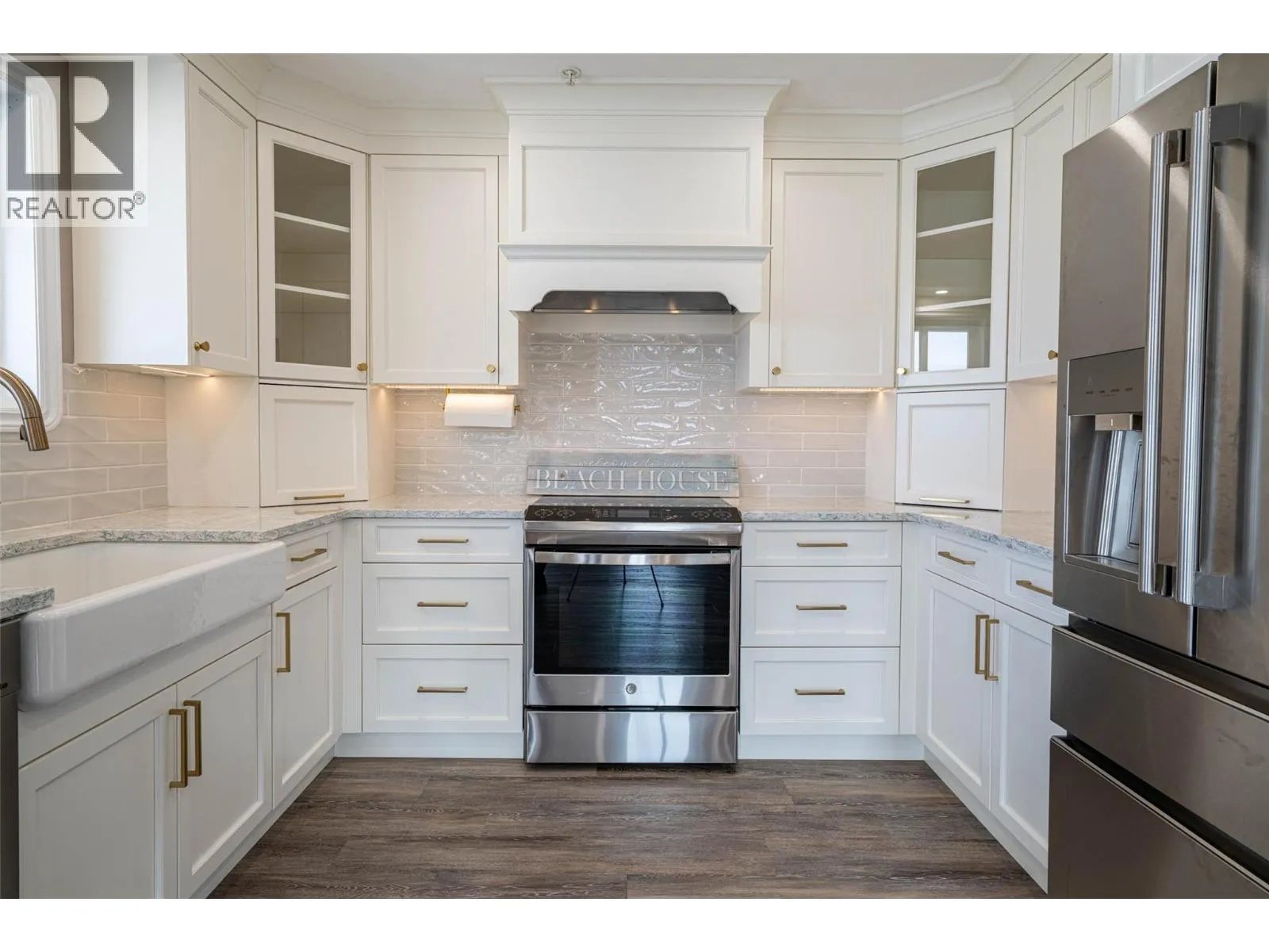 Luxury Lakefront Top Floor Condo â Fully Renovated at The Palms by the Lake, Osoyoos A rare opportunity to own a fully renovated 2-bedroom, 2-bathroom condo just steps from the shores of stunning Osoyoos Lake. With $100,000 in high-end renovations and upgrades, this home offers modern luxury, unbeatable views, and resort-style amenities. Step into a beautifully redesigned interior featuring a gourmet kitchen with custom cabinetry, Cambridge quartz countertops, designer tile backsplash, and premium stainless steel appliances. Both bathrooms have been completely updated with spa-inspired fixtures, elegant tile-work, including a walk-in shower and corner soaker tub. Enjoy new luxury flooring, fresh paint, and designer lighting throughout. Take in unobstructed lakefront views from your private balcony, with the lake and park directly across the street. Whether itâs a peaceful morning coffee or a vibrant sunset, this view never gets old. The complex features in-ground swimming pool, secure heated parking, storage locker, games room, workshop, guest suite, entertainment room with full kitchen, rooftop patio and a welcoming community atmosphere â whether you're looking for a full-time residence, vacation getaway, or investment property this is it! (id:27476)