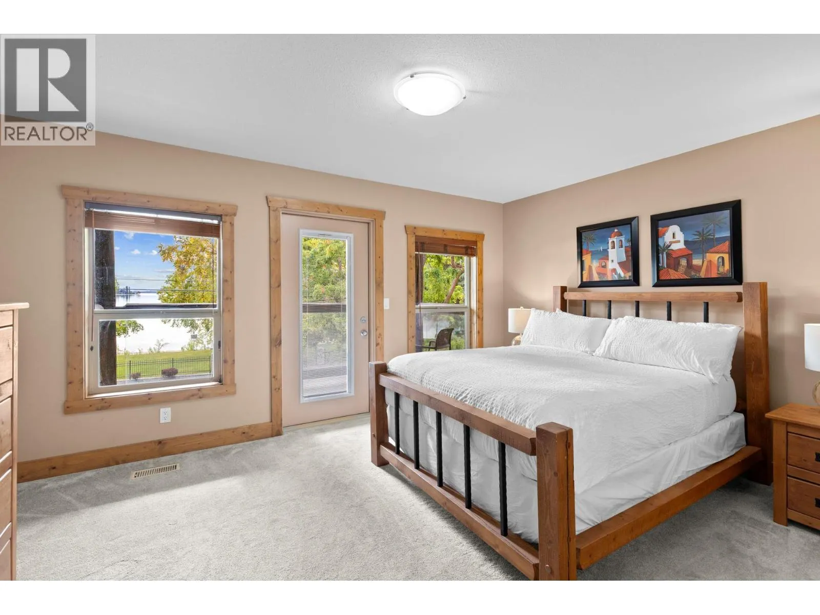 LAKEFRONT TOWNHOME WITH PRIVATE BEACH ACCESS! Experience the best of Osoyoos in this turnkey 3-bed, 3-bath waterfront townhome at Casa Del Mila Oro. Wake up to sparkling lake views & enjoy direct access to a private sandy beach, dock & boat launch just steps from your patio. Spend your days relaxing by the heated outdoor pool or unwinding in the hot tub while taking in the surrounding mountain scenery. This fully furnished home features a spacious garage, an energy-efficient geothermal system & everything you need to start enjoying the lake-life dream or hosting guests with ease. With short-term rentals allowed and income estimated over $50,000/year, this property combines exceptional flexibility with strong investment potential in one of Osoyoosâs most sought-after waterfront communities! (id:27476)