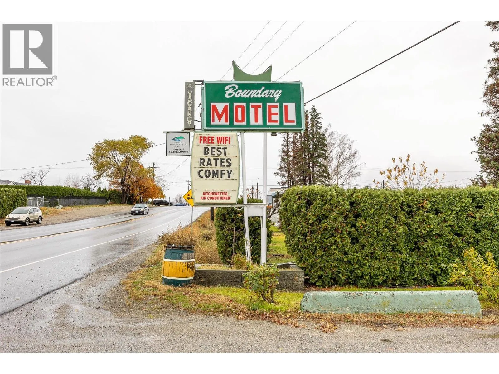 Opportunity to purchase the Boundary Motel, a unique investment opportunity in the Osoyoos area of the South Okanagan! This prime 1.72-acre property in Osoyoos offers a unique investment opportunity with multiple income streams. The property includes a 14-room motel, a 6-plex, and 7 mobile home pads. The motel and 6-plex are zoned C1 (Highway Commercial) while RSM (Residential Manufactured Home Park) zoning encompasses the manufactured home section. The site is serviced by city water and sewer and is located in a high-traffic area along Highway 97 to the South of the primary town of Osoyoos. At the asking price, the property is offered at a 6.95% cap rate, which includes a manager's salary as an expense. For the right investor, this could be an opportunity to continue the existing cash flow of the property and take advantage of lowering interest rates, all being possible without running the motel in a ""hands-on"" way. Several opportunities exist to further increase the property's income stream. Modernizing booking systems, leveraging high season pricing, and renovating the motel, to name a few. Likewise, there is an upside for the manufactured home rents to be increased with tenant turnover. The manufactured homes themselves are not included as assets; they are owned by the tenants. Properties with three separate revenue streams do not often come to market. (id:27476)