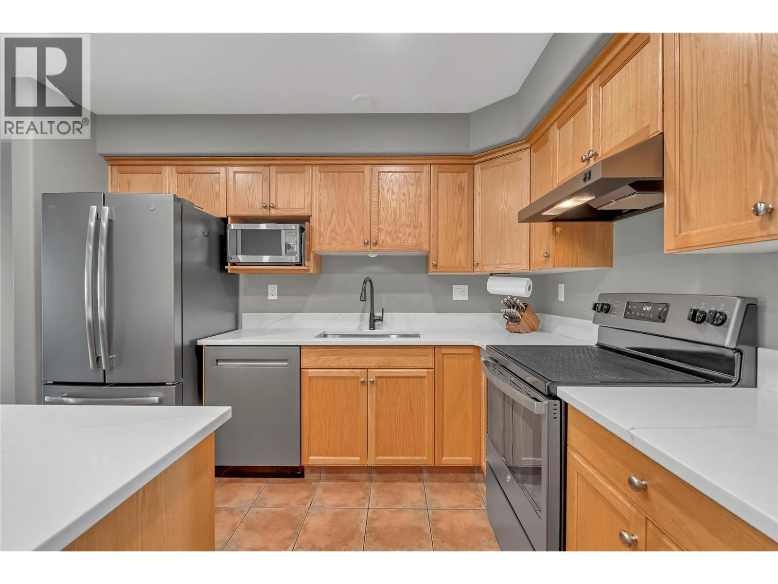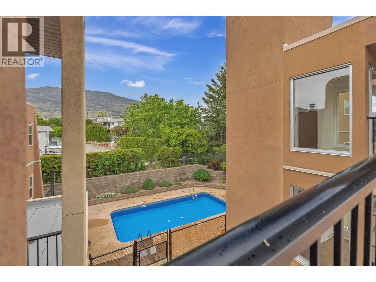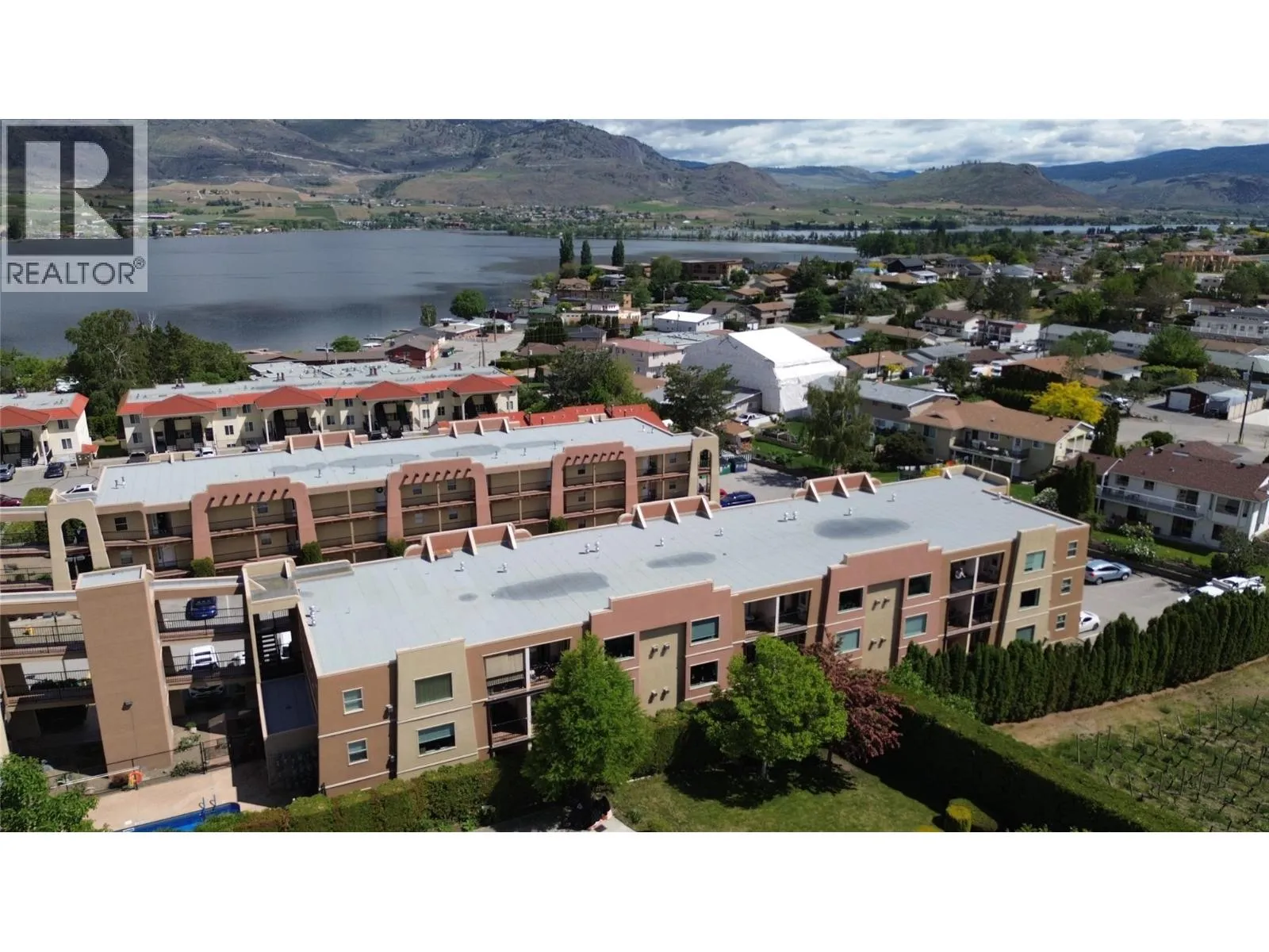 Desert Court makes Osoyoos living feel wonderfully simple. Just steps from the beach on the warm waters of Osoyoos Lake, this top-floor 2-bedroom, 1-bath condo offers 1,035 sq. ft. of bright, modern comfort. The home has been fully renovated with quartz countertops, upgraded cabinetry, and sleek flooring throughout. Its open layout flows easily, while the west-facing covered patio overlooks a private vineyard and the surrounding mountainsâan inviting place to enjoy morning coffee or evening sunsets. The well-run strata has recently completed several major upgrades, providing peace of mind along with low monthly fees of just $324.20. Residents enjoy an outdoor pool, elevator access, generous parking, and a pet-friendly environment. Golf courses, shopping, and everyday amenities are only minutes away, and more than 50 wineries lie within a short drive. Whether youâre downsizing, seeking a lock-and-leave retreat, or hoping to spend more of the year in the sun, Desert Court offers relaxed, easy-care living in the heart of Osoyoos. (id:27476)