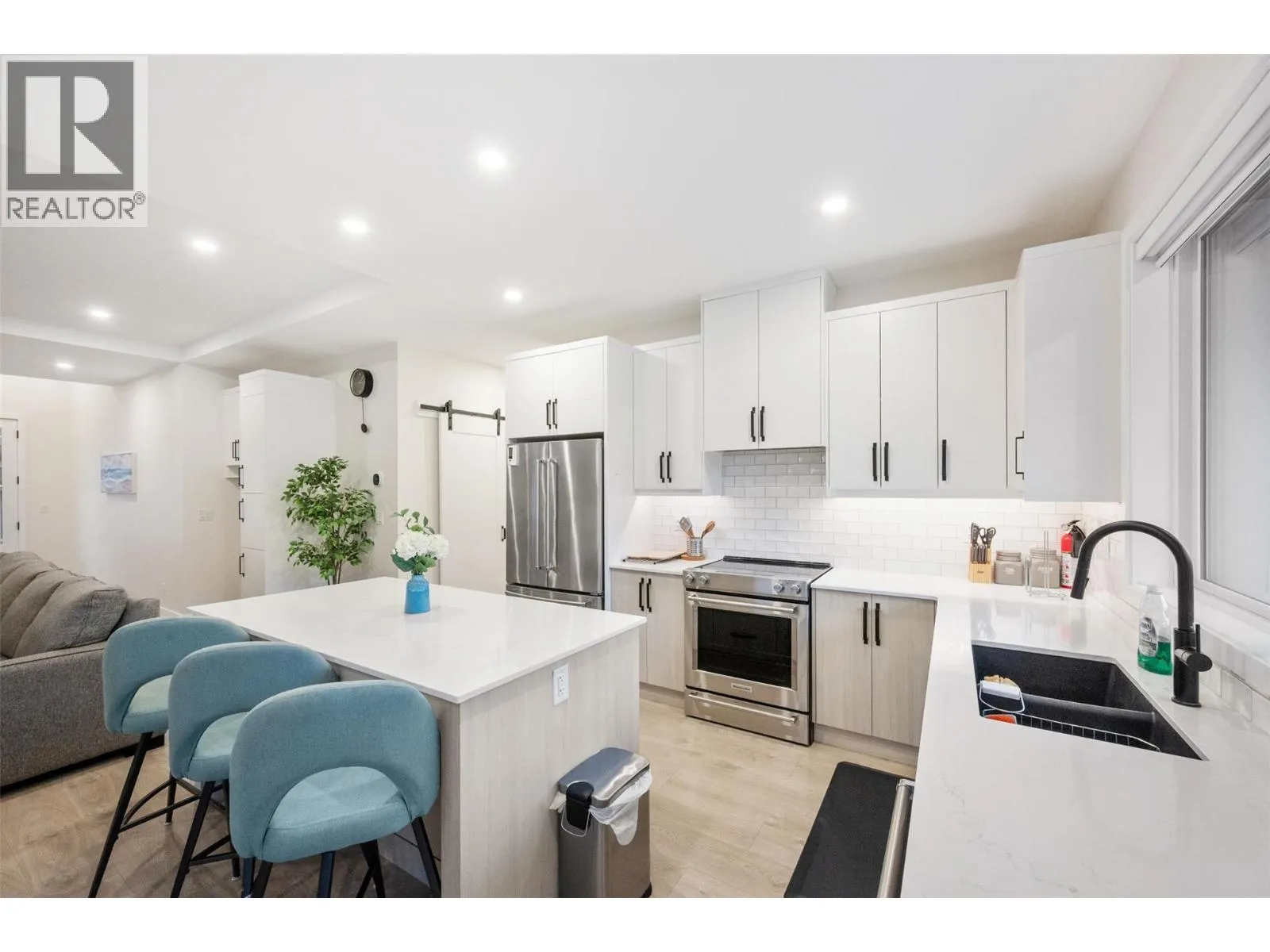 Experience luxurious Okanagan living in this spacious 3-bed, 4-bath corner townhome in Osoyoosâs newest community, The Villas. Perfectly positioned with east-facing morning sun and west-facing sunset views, this Mediterranean-inspired home offers an airy open floor plan with high ceilings, abundant windows, a gourmet kitchen with gas stove and stainless appliances, luxury vinyl flooring, custom cabinetry, a cozy gas fireplace, and a main-floor primary bedroom with walk-in closet and ensuite. The lower level includes an additional bedroom and bath, a great storage room, and a fully equipped legal 1-bedroom suite with its own entrance, parking, and patioâideal for guests or rental income. A double garage adds generous parking and storage. Steps from the outdoor pool, hot tub, and clubhouse, and walking or biking distance to downtown, beaches, parks, restaurants, shopping, and schools, this stunning end unit blends comfort, convenience, and investment potential. iGuide measured; buyer to verify if important. (id:27476)