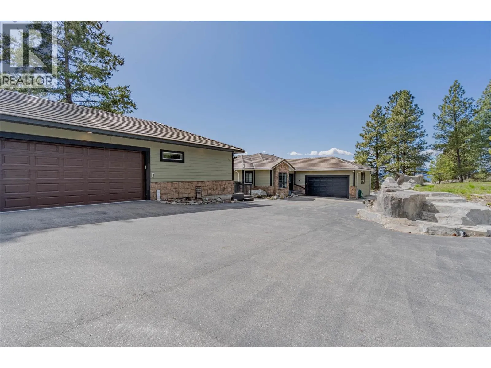 RURAL OSOYOOS RETREAT on Anarchist Mountain with GARAGE SPACE for 8 VEHICLES. Enjoy privacy & functionality in this mountain-view property. Set on over 3 acres in a peaceful cul-de-sac, this stunning property offers a main FAMILY SIZED HOME plus a DETACHED GUEST SUITE. The 550 sq. ft. guest suite is just steps from the main house & features a spacious deck and a 5-pc bath, making it comfortable for visitors or extended family. For the automotive aficionado, this property is a dream come true, featuring: An attached double garage, a massive 1,458 sq. ft. detached 6-car garage, a 2-vehicle carport as well as RV PARKING & electrical hookup. In the main home, you'll find an inviting living space with a cozy fireplace, seamlessly flowing into the kitchen & dining area, positioned to maximize the breathtaking mountain views. The primary suite is a true sanctuary, featuring deck access, a luxurious 5-piece ensuite, rejuvenating jetted tub, and ample closet space. Also on the main is a second bedroom and laundry/mudroom. The lower level is designed for relaxation and entertainment, offering: A spacious family room with patio & pool access, an additional bedroom with outdoor entry. Step outside to enjoy resort-style amenities and enjoy the HEATED POOL, GROTTO and SLIDE, HOT TUB, and an OUTDOOR FIREPLACE. Perfect for alfresco gatherings. This exceptional property delivers the ultimate in comfort, recreation, and vehicle storage, set against a stunning mountain backdrop. (id:27476)