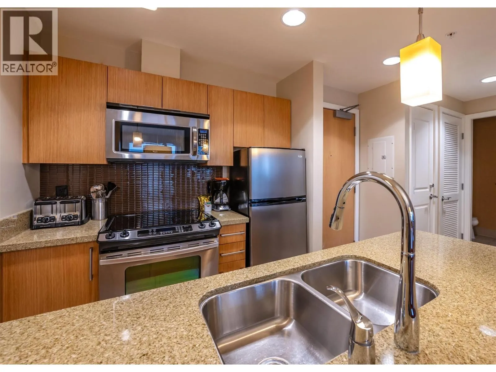Own your piece of Canada's desert paradise! Ideally located on the quiet, south side of the resort with balcony lake views, this 836 square foot, spacious, 2 bed suite represents amazing value! With furnishings, decor, and equipment maintained by the resort, this is your opportunity for stress-free, lock and leave vacation property ownership. The open concept kitchen, living and dining areas are ideal for entertaining, while the split 2 bedroom layout optimizes privacy. The pull out sofa enables comfortable accommodation for 6, and the generous balcony offers sheltered alfresco dining with stunning lake views. Close proximity to both elevator and stairs ensures quick access to the beach, pool deck and hotel amenities, and secured, indoor parking. Resort amenities include pool, hot tubs (one year round), gym, spa, and beautiful function rooms. Amazing dining options including 15 Park Bistro (with sheltered seasonal patio & grill), Boston Pizza, Backroads Brewery, and Roberto's Gelato. The Watermark is located just steps to all the vibrant shops, services and amazing dining options Osoyoos has to offer. World class wineries, dining, golf, skiing, watersports and cultural experiences are all in close proximity. Enrolled in the the resort's professionally managed hotel rental pool, this suite generates significant rental income to help offset the costs of ownership. Sale subject to GST. Square footage per builder plans. Dimensions approximate - buyer to verify if important. (id:27476)