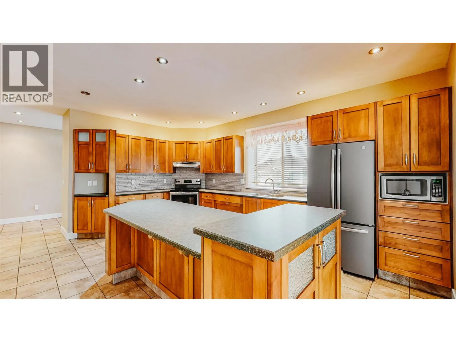 Perfect family or retirement home on quiet Cul De Sac! Located close to restaurants, shopping, recreation, schools and Osoyoos Lake. This rancher with basement features 3 Bedrooms, 3 bathrooms, located on a corner lot with low maintenance landscaping. Double car garage with canning kitchen & work benches. Two bedrooms & laundry on the main level. Spacious kitchen with island, patio doors off of dining area to covered deck to enjoy your morning coffee. This bright home features views of the mountains & from the kitchen and main living area. Downstairs features 1 bdrm, 1 bath plus large family room & lots of storage. New furnace and air conditioning. Private fenced back patio area with raised garden beds. All measurements approx and to be verified by the buyer. (id:27476)