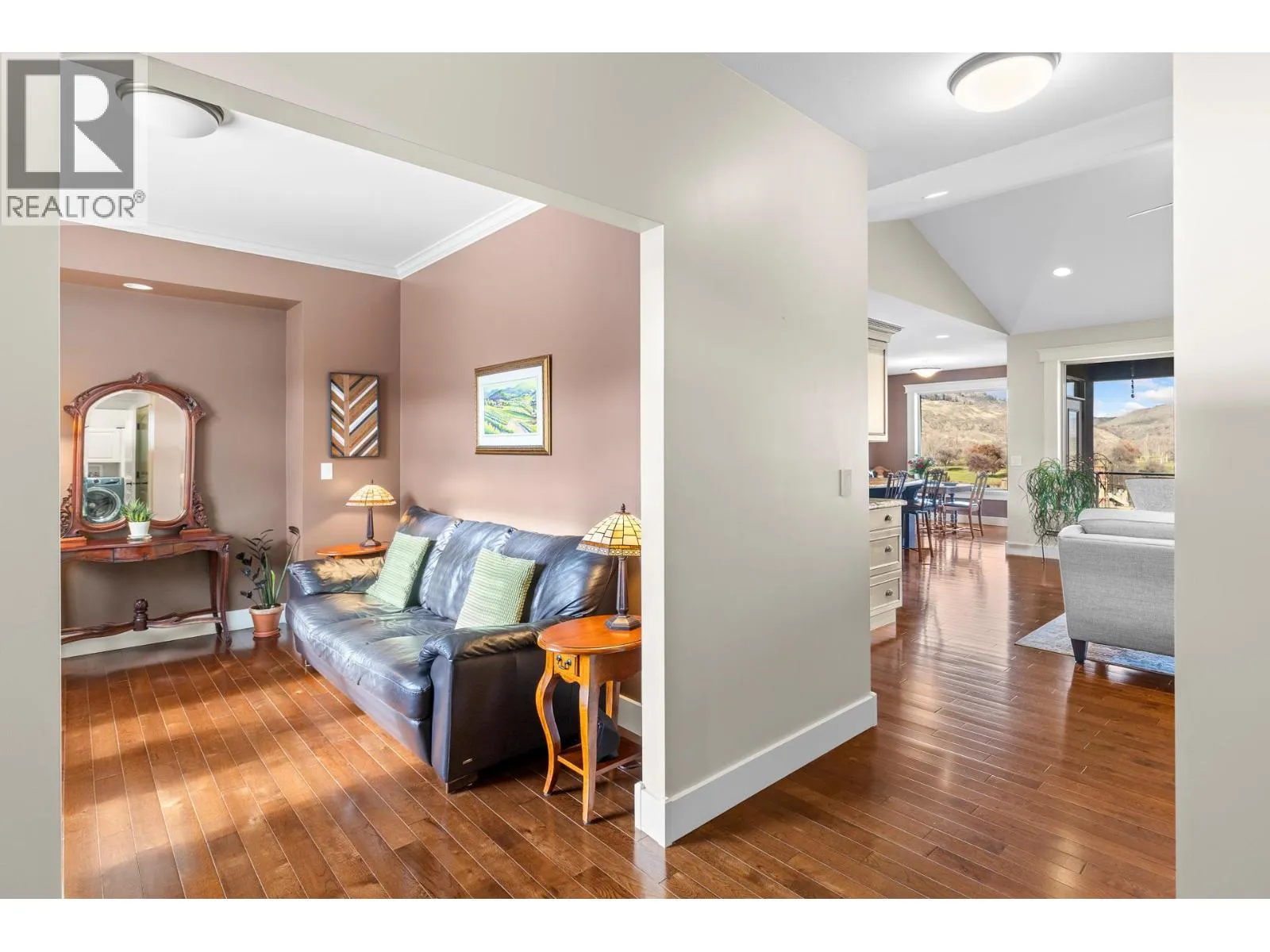 Refined Okanagan living awaits in a prestigious golf course community. This meticulously maintained primary-on-main home welcomes you with a ground-level entry, vaulted ceilings and oversized windows. Stunning lake and mountain views are beautifully showcased while the interior is flooded with natural light. Step onto the covered patio to savour unforgettable sunsets, an ideal backdrop for year-round everyday living and elegant entertaining. The lower level features a separate entrance, offering excellent suite potential or versatile living options. An oversized driveway with RV/boat parking, complemented by a 2-car garage adds exceptional convenience. Just steps from the 36-hole golf course, this home delivers a seamless blend of sophistication, comfort & the coveted Okanagan lifestyle. (id:27476)