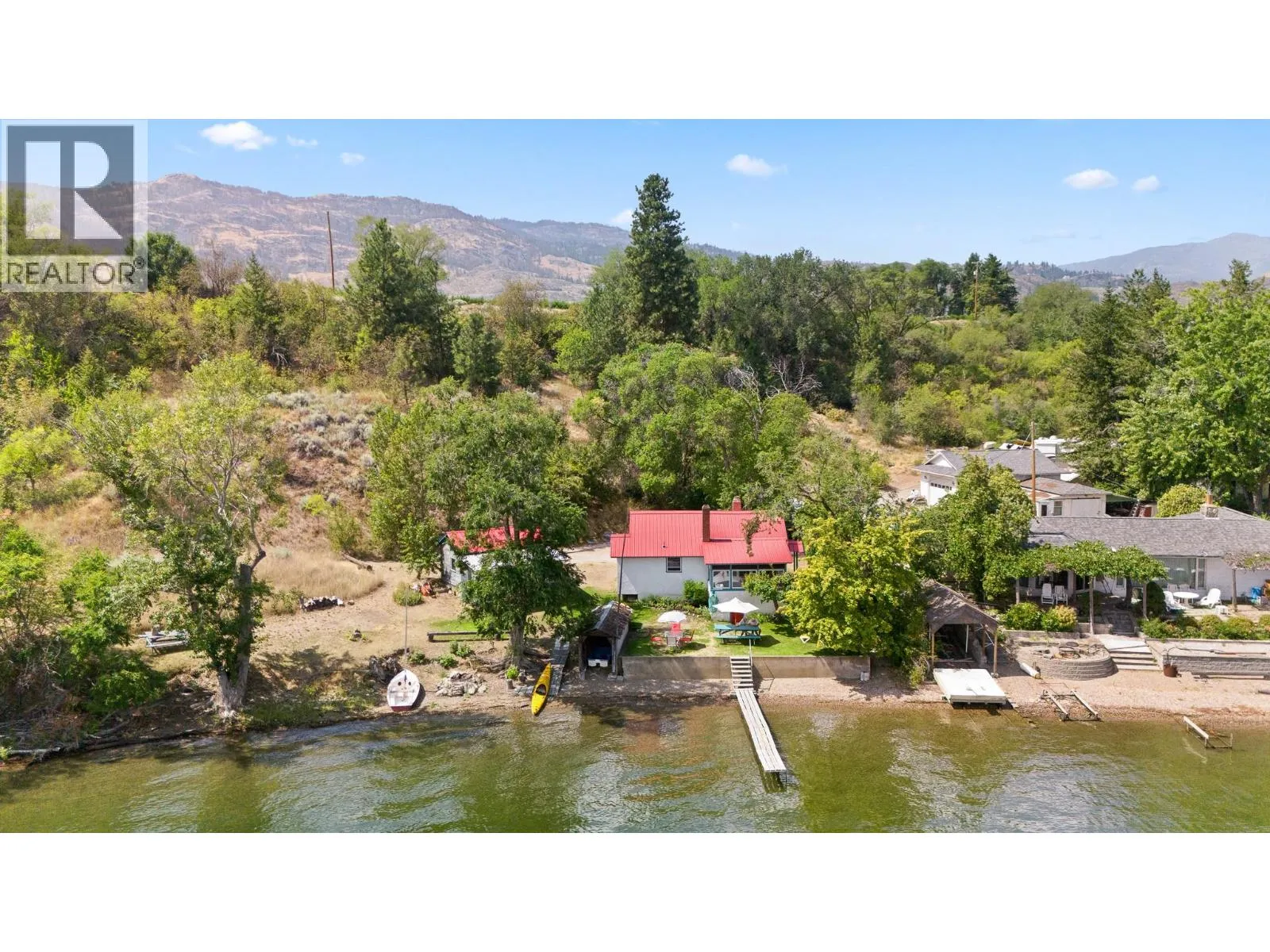PRIVATE BEACH. BREATHTAKING VIEWS. UNLIMITED POTENTIAL. An exceptional opportunity to own nearly three-quarters of an acre on the pristine shores of Osoyoos Lake, featuring over 200 feet of direct lakefront and your very own private beach. Nestled at the end of a quiet, no-through road, this rare offering boasts 180-degree, unobstructed lake and mountain views with peaceful east-facing sunrises. The gently sloped lot provides ample space for boats, RVs, and guest parking, and offers excellent potential to build a second residence. There is plenty of room to construct a secondary home just above the current structures, allowing for enhanced privacy, elevated views, or multi-generational living. Located just 10 minutes from downtown Osoyoos, the property is surrounded by some of British Columbiaâs most acclaimed wineries, local fruit stands, golf courses, and the exclusive Area 27 racetrack. In the winter months, enjoy quick access to Mount Baldy for skiing and snowboarding. The existing one-bedroom, one-bathroom cottage and separate bunk house offer endless possibilities, ideal as a guest house, income property, or summer getaway. Whether youâre looking to build your dream waterfront estate or secure a piece of highly desirable lakefront land for future development, this property delivers flexibility, natural beauty, and true lakefront living. Live the Osoyoos lakefront dream, private, peaceful, and perfectly located. (id:27476)