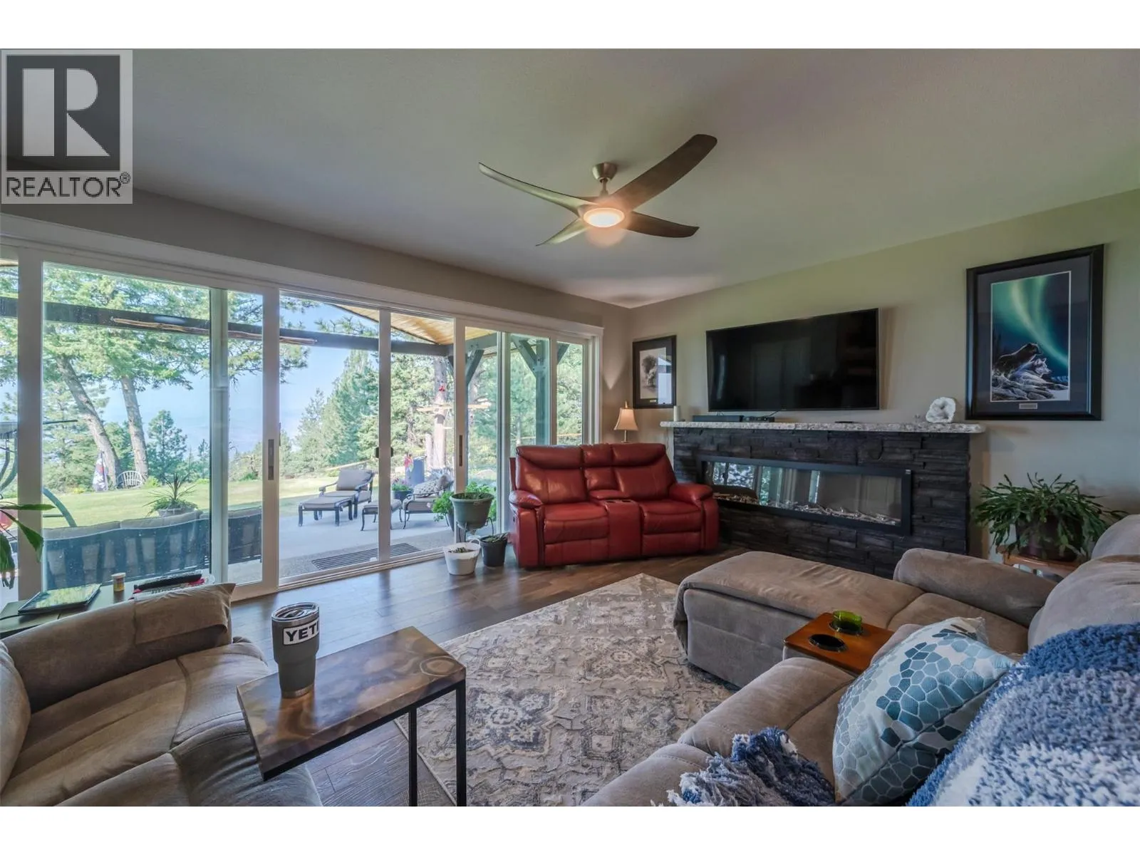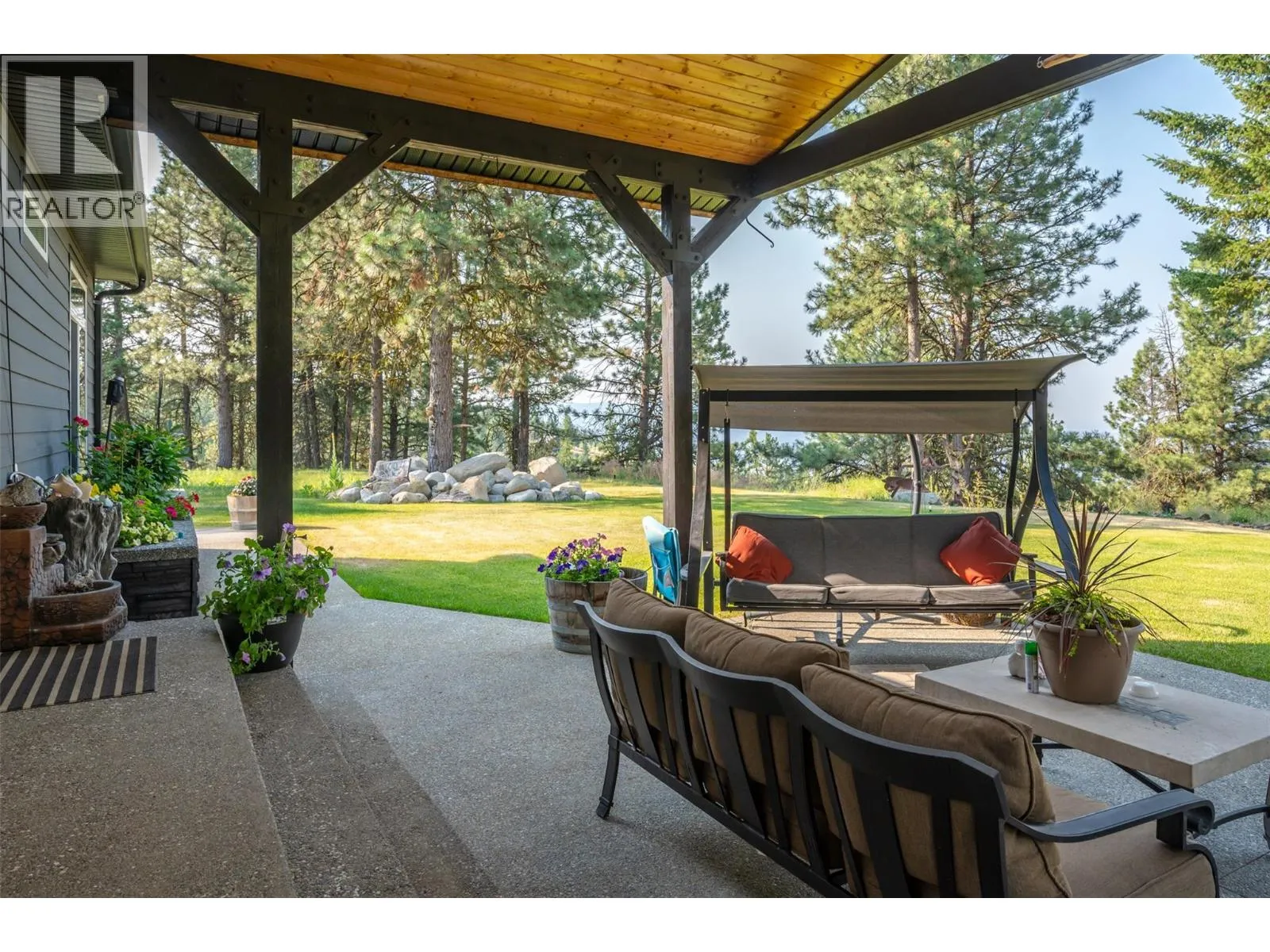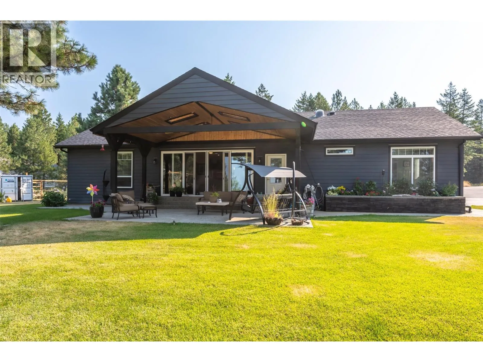 No restriction area for FOREIGN INVESTORS!!Nestled atop the scenic heights of Anarchist Mountain, this exquisite 3-bedroom, 3-bathroom rancher offers a rare blend of luxury, privacy, and natural beauty. Set on over 5.6 acres of pristine landscape, the home invites you into a retreat-like atmosphere, where floor-to-ceiling windows in the living room frame breathtaking panoramic views of the lake and surrounding mountainsâchanging beautifully with the seasons. Thoughtfully designed with a spacious, open-concept layout, the interior features a modern gourmet kitchen, ample storage, and a seamless flow into the dining and living areas. The master suite is a peaceful haven with its own en-suite and tranquil views, while two additional bedrooms offer comfort and space for family or guests. For car lovers and hobbyists alike, the fully insulated, oversized triple-door garage/shop (40â46 feet) is a standout feature, complete with in-floor heating for year-round comfortâideal for working on projects or protecting vehicles in all seasons. Step outside onto the expansive deck to fully immerse yourself in the serenity of nature. Whether youâre looking for a full-time residence or a mountain escape, this property delivers peace, space, and unparalleled vistas. Donât miss your chance to experience the magic of Anarchist Mountainâschedule your private showing today! (id:27476)