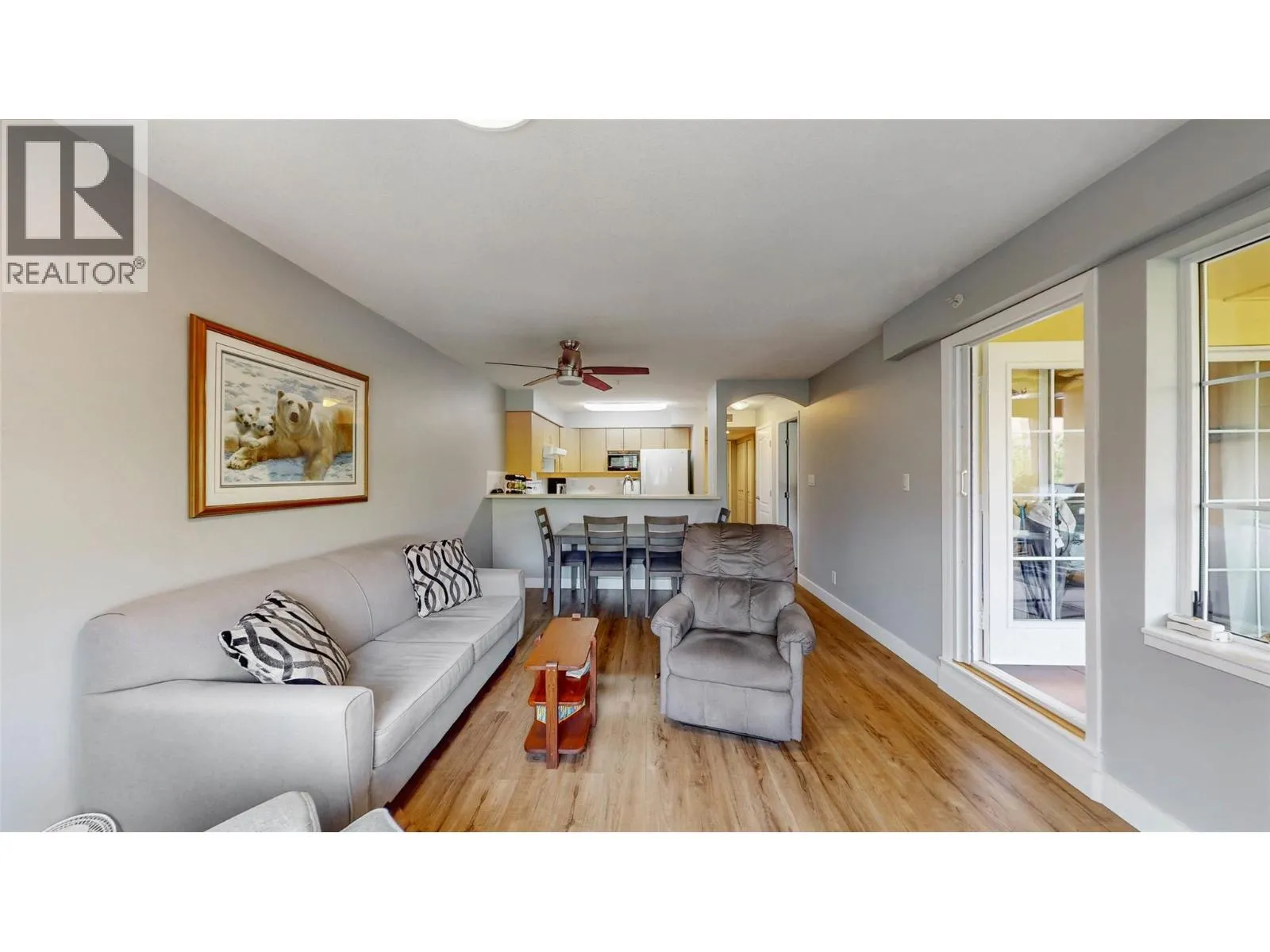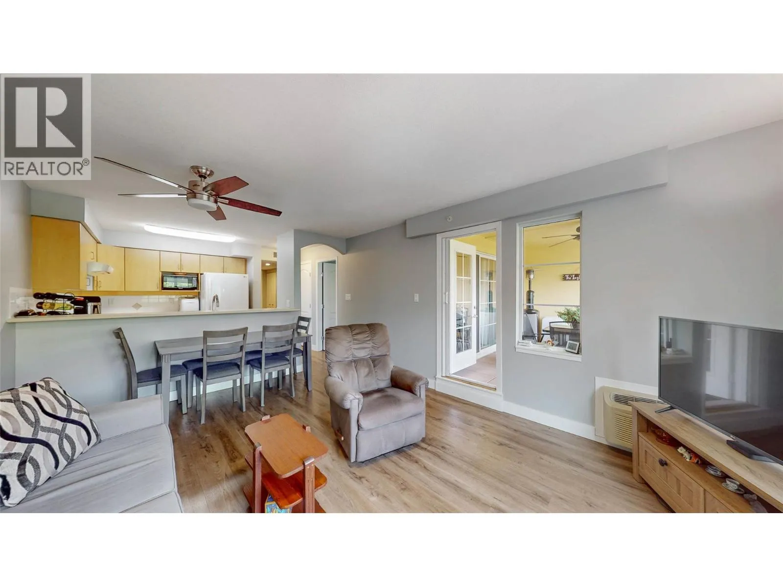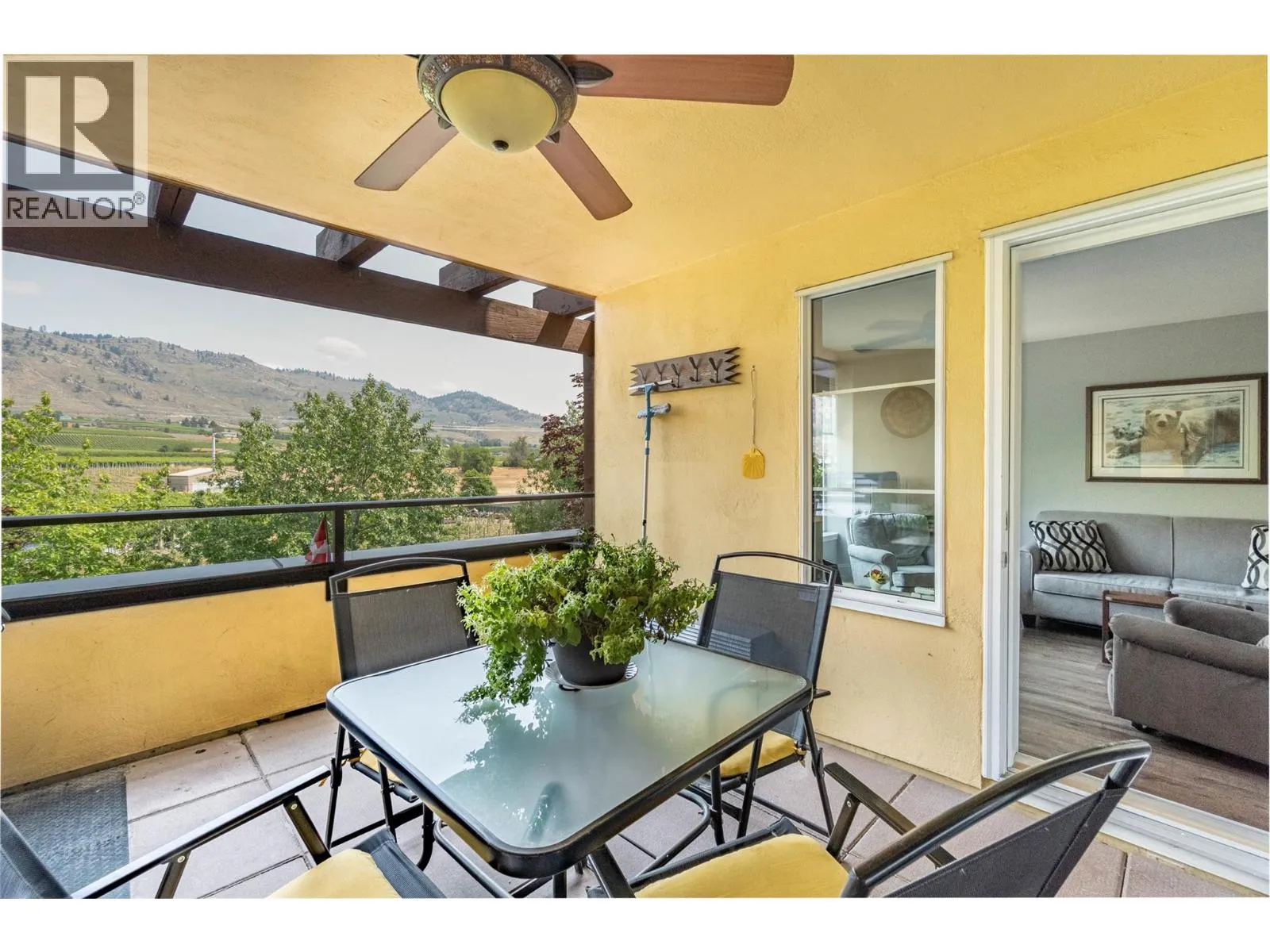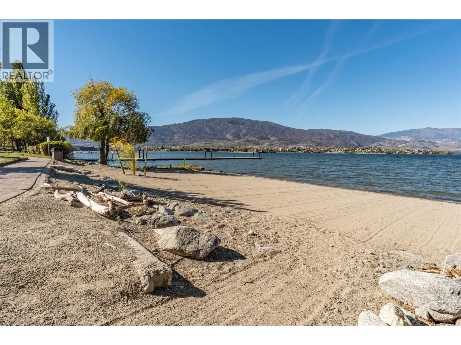 Quick possession available, move in for summer! Welcome to Casa del Lago. Discover easy living in this bright and inviting 1-bedroom + den condo in one of Osoyoosâs most desirable waterfront communities. Step inside to find a spacious open-concept layout featuring updated laminate flooring, in-suite laundry, and plenty of storage. The kitchen boasts classic hardwood cabinetry and a thoughtfully designed bar-style counter that connects perfectly with the dining and living areasâideal for both entertaining and everyday comfort. Wake up to the morning sun streaming through large windows and sliding glass doors. The south-facing covered patio provides vineyard and mountain viewsâperfect for your morning coffee or relaxing evening meals. The primary bedroom is bright and airy, with direct patio access, while the versatile den offers space for a home office or extra sleeping area for visiting guests. Casa del Lago offers resort-style amenities including a clubhouse, outdoor pool, beautifully landscaped green spaces, and private beach with dock accessâperfect for enjoying the Okanagan lifestyle to the fullest. Whether you're searching for a year-round residence, a seasonal getaway, or an investment propertyâthis is your chance to join a friendly, sought-after community on the shores of Canadaâs warmest lake. *All measurements are approximate, if important buyer to verify* (id:27476)