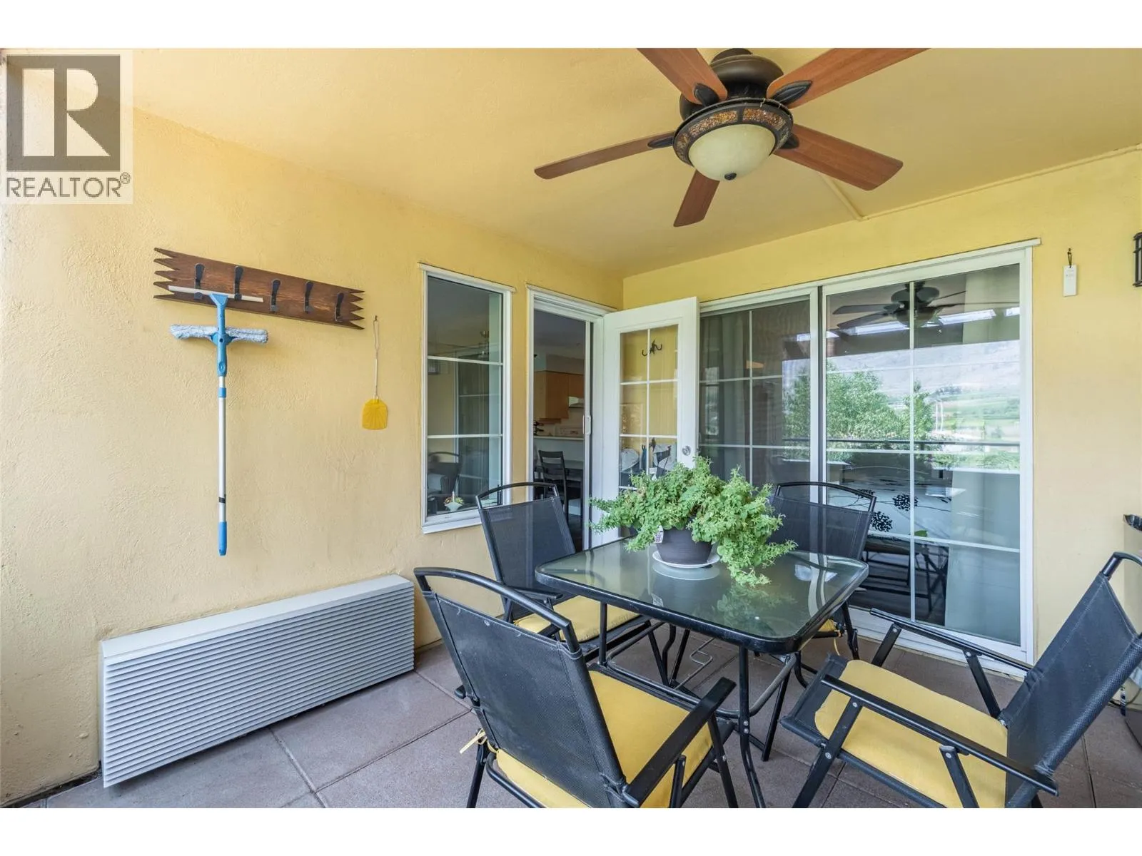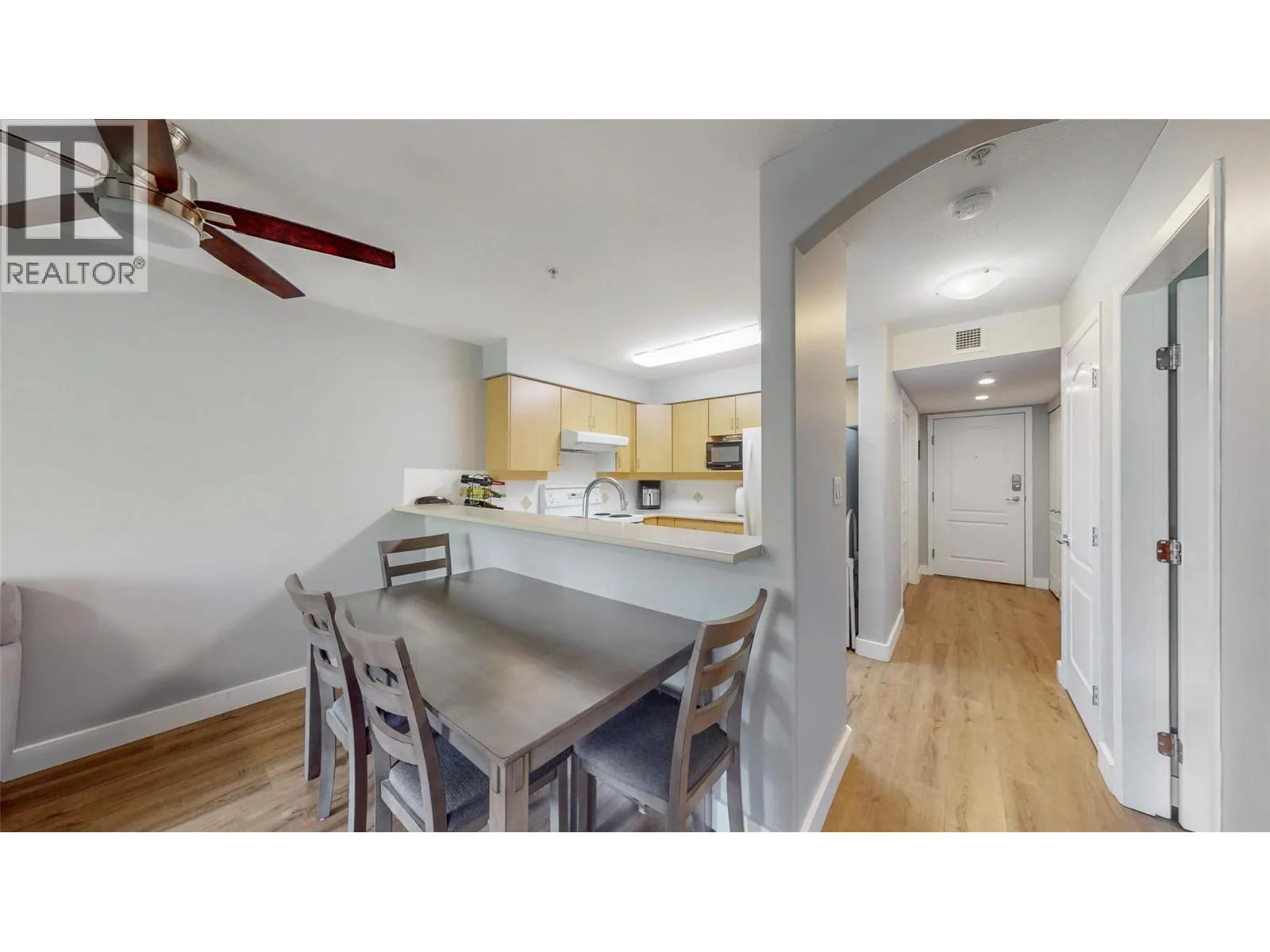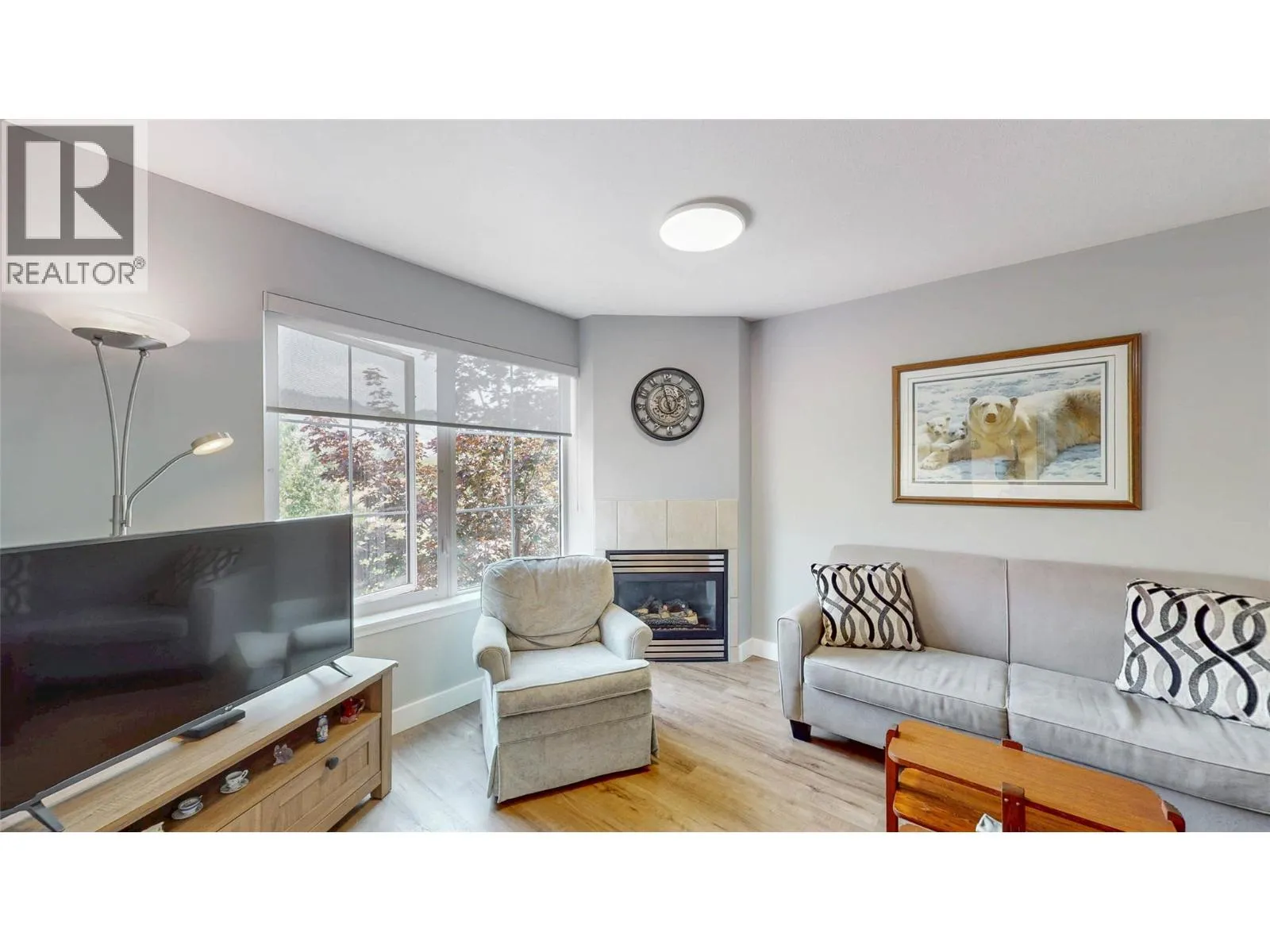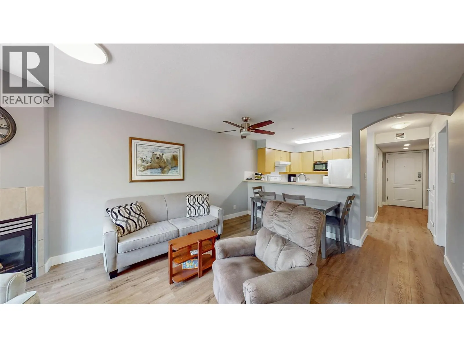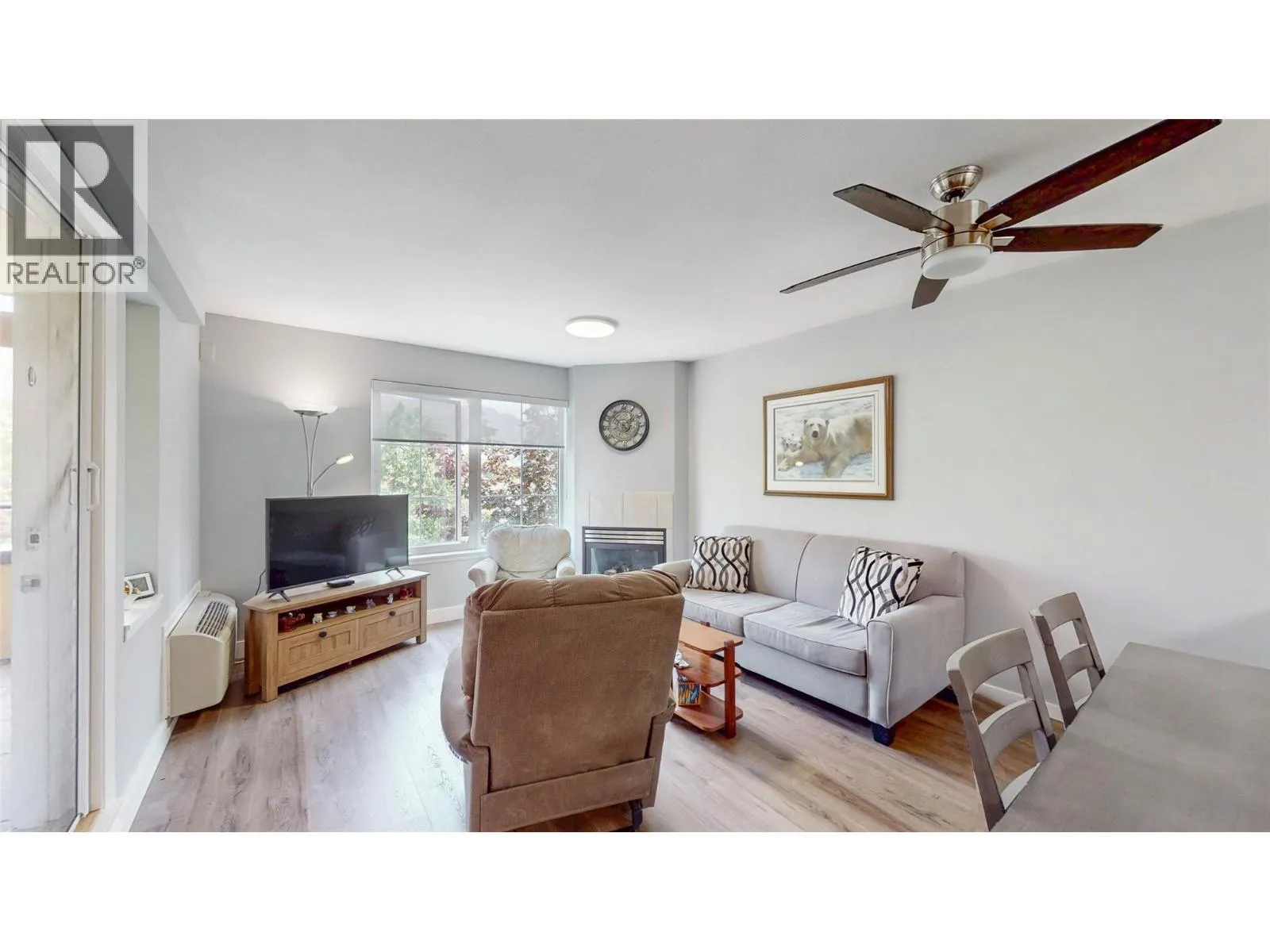 Quick possession available, move in for summer! Welcome to Casa del Lago. Discover easy living in this bright and inviting 1-bedroom + den condo in one of Osoyoosâs most desirable waterfront communities. Step inside to find a spacious open-concept layout featuring updated laminate flooring, in-suite laundry, and plenty of storage. The kitchen boasts classic hardwood cabinetry and a thoughtfully designed bar-style counter that connects perfectly with the dining and living areasâideal for both entertaining and everyday comfort. Wake up to the morning sun streaming through large windows and sliding glass doors. The south-facing covered patio provides vineyard and mountain viewsâperfect for your morning coffee or relaxing evening meals. The primary bedroom is bright and airy, with direct patio access, while the versatile den offers space for a home office or extra sleeping area for visiting guests. Casa del Lago offers resort-style amenities including a clubhouse, outdoor pool, beautifully landscaped green spaces, and private beach with dock accessâperfect for enjoying the Okanagan lifestyle to the fullest. Whether you're searching for a year-round residence, a seasonal getaway, or an investment propertyâthis is your chance to join a friendly, sought-after community on the shores of Canadaâs warmest lake. *All measurements are approximate, if important buyer to verify* (id:27476)