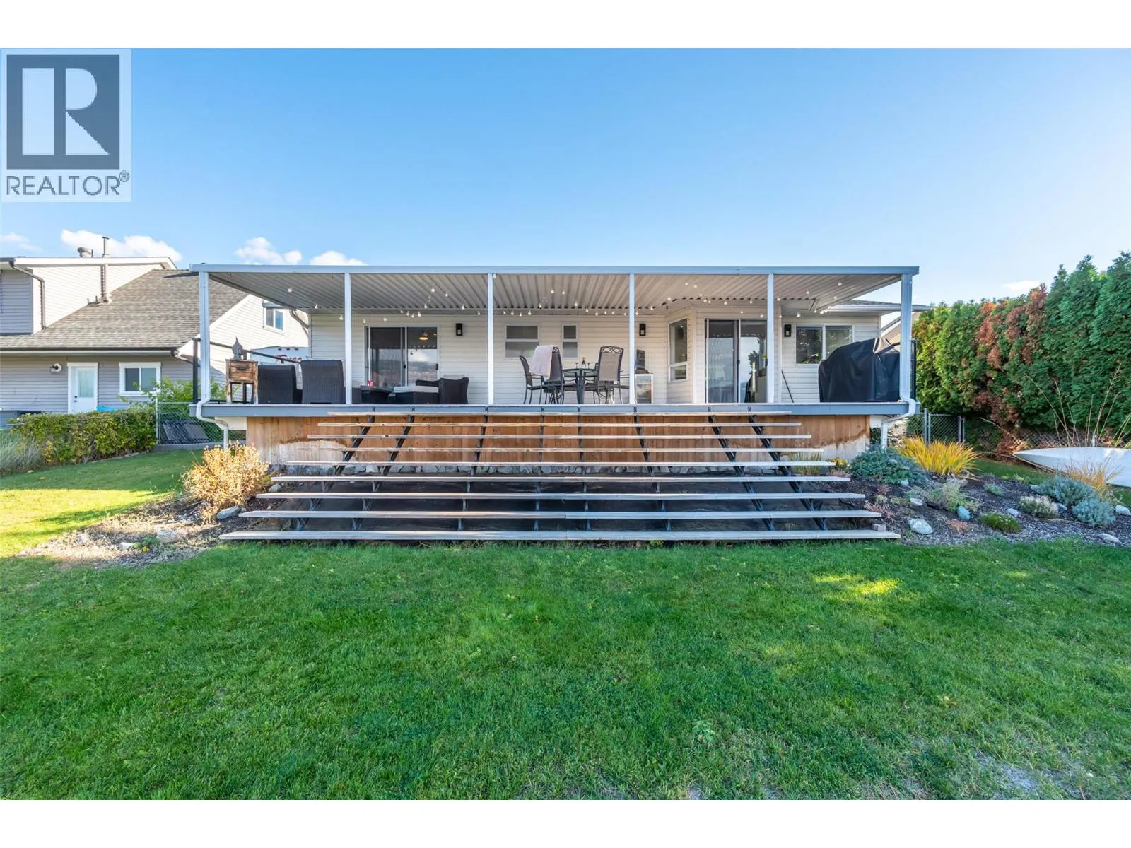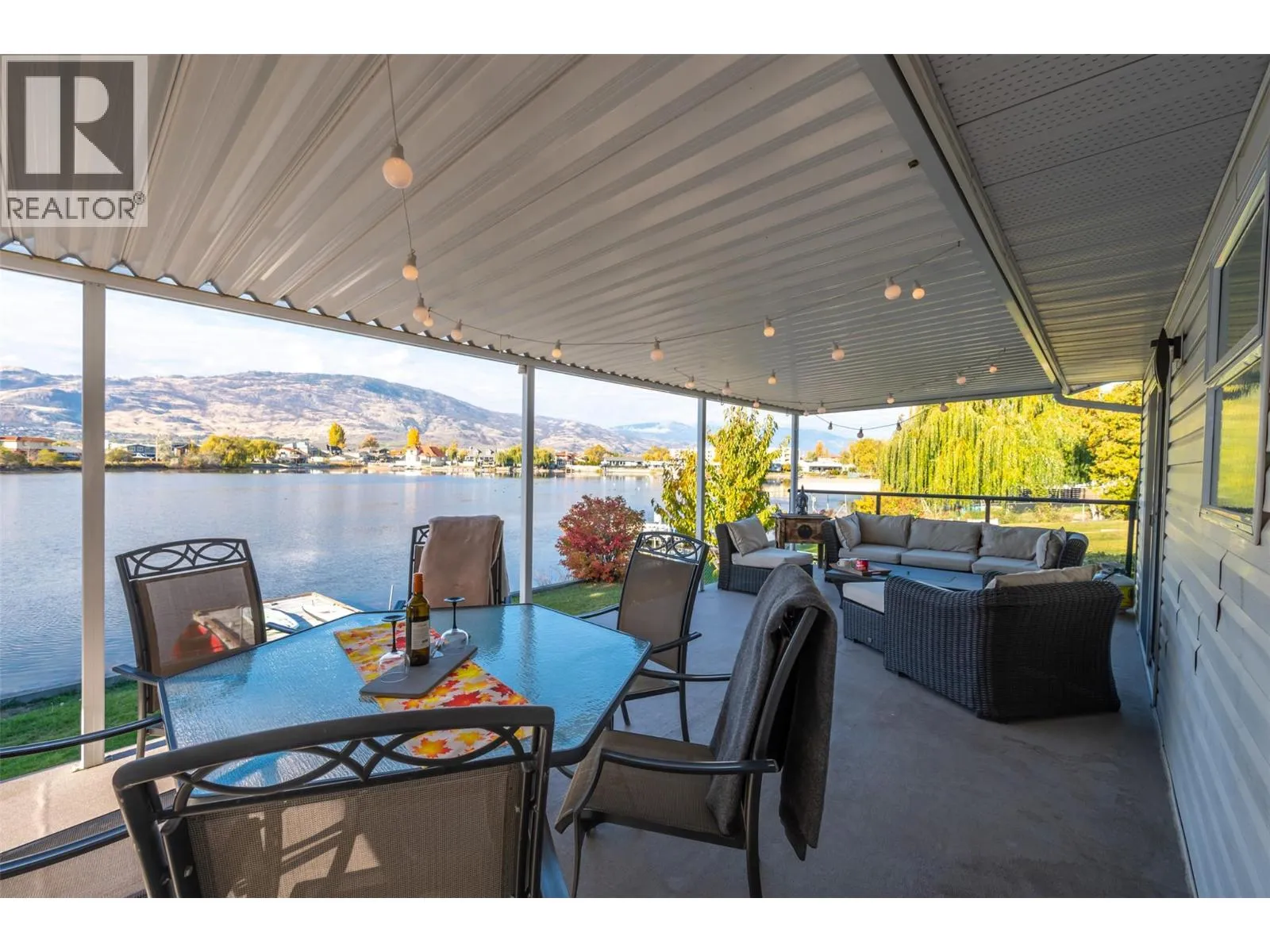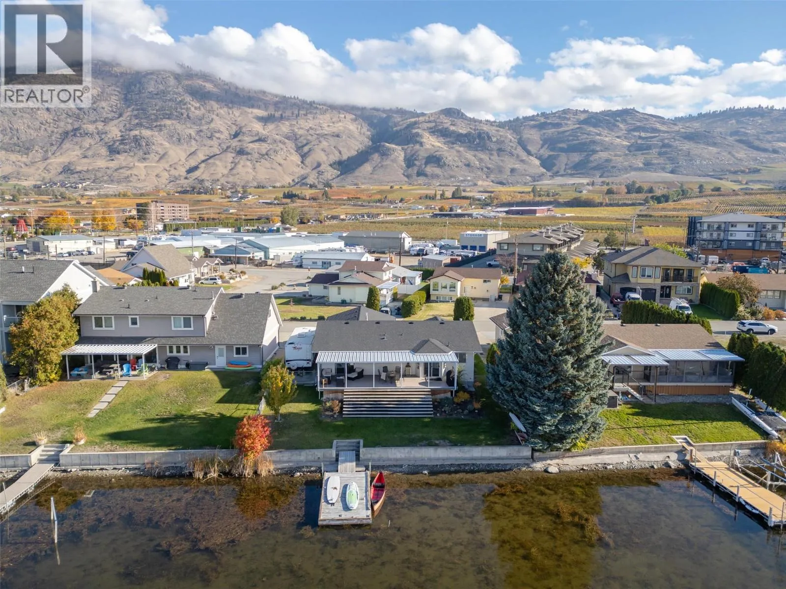 Welcome home to peaceful waterfront living on Solana Bay. Beautifully renovated rancher radiates warmth from the moment you arrive, offering stunning mountain views, gentle bayfront and lake vistas that create a feeling of calm in every season. Extensive 2022 renovation brought new life and comfort to this single-level home. Open-concept great room is designed for connectionâfeaturing a large island, cozy coffee station, and the soft glow of updated lighting, with 3 welcoming beds and 2 thoughtfully updated baths. Step outside onto the spacious deck and into the private fenced yard, where the peaceful setting invites morning coffee, afternoon relaxation, and evenings gathered on the water. The bayside dock offers DIRECT LAKE ACCESS AND Hosting is easy with plenty of parking, including RV accommodation with sewer hookup and 30-amp service. Located within walking distance to many of lifeâs conveniencesâcoffee shops, parks, restaurants, community spaces, and wineriesâthis home supports a lifestyle that feels truly connected. With golf and four-season recreation nearby, every day brings something to enjoy - a place filled with light, peace, and the spirit of lake lifeâready to welcome you home. (id:27476)