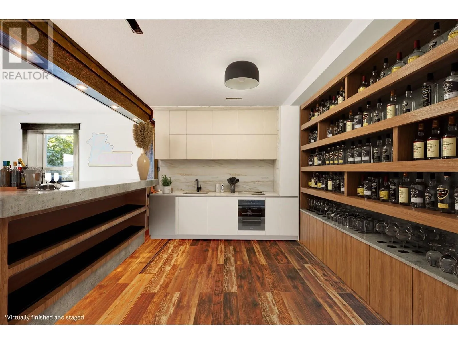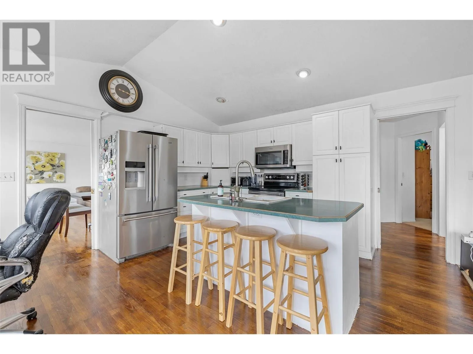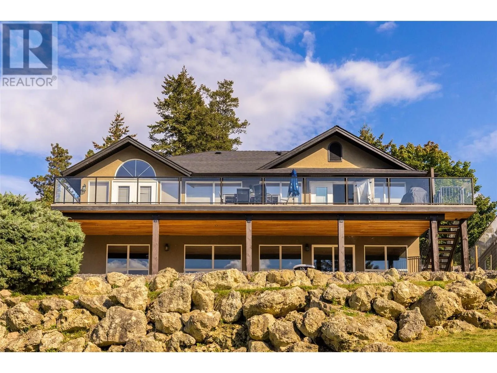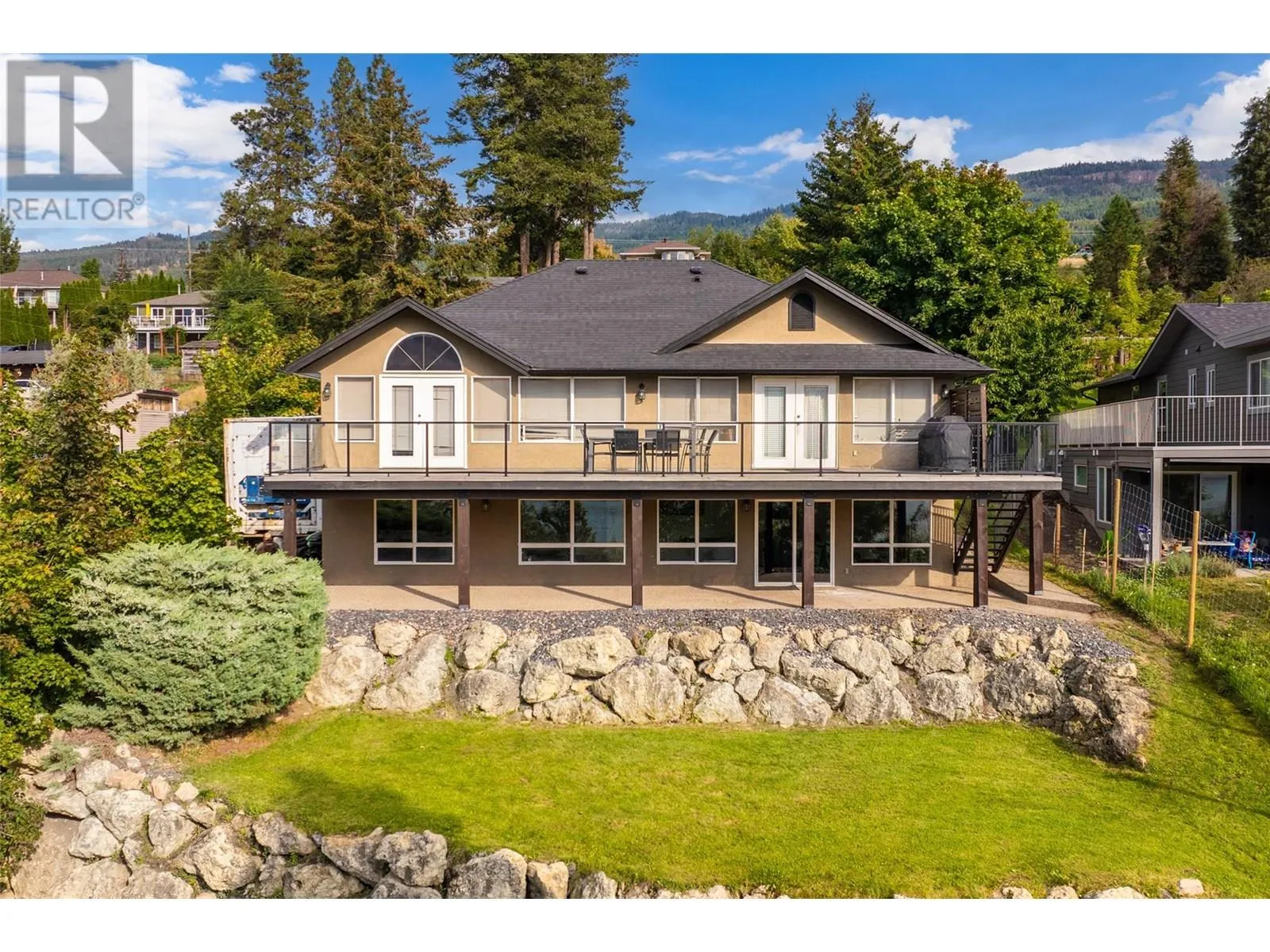 Nestled in a private Oyama setting, this sizeable walkout rancher with a basement offers over 3,200 square feet of living space and spectacular lake views, just steps from the water. Situated on a spacious 0.497 acre lot backing onto mature landscaping and the popular Rail Trail, this four bedroom, three bathroom home provides the ultimate Okanagan lifestyle. Enjoy nearby access to a private beach on Wood Lake, perfect for summer water activities, and easy access to nearby Kalmalka Lake. Surrounded by orchards and vineyards, this home offers a peaceful retreat with tons of potential for the new buyer. The primary suite features an ensuite and walk-in closet, and the home is easily suiteable, boasting a separate patio entrance and a wet bar in the basement, easily adaptable for a private one bedroom mortgage helper. With a massive paved driveway ideal for recreational vehicles, cars, and toys, plus a double garage, there is plenty of space for all your needs. Additional highlights include high ceilings, hardwood flooring, a new four-ton AC unit, built-in vacuum, and roughed-in security system. Whether you're looking for a serene escape or a home with tons of potential, this property is a must-see. (id:27476)