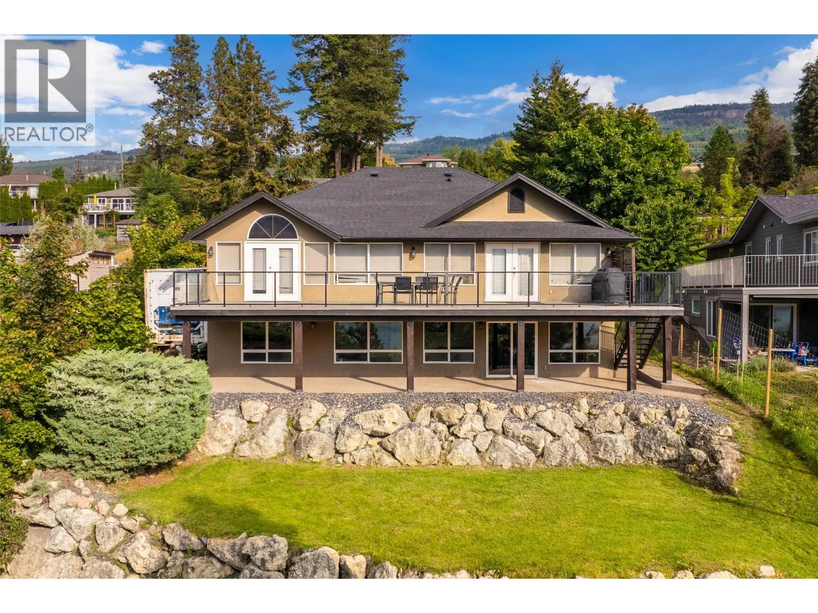 Nestled in a private Oyama setting, this sizeable walkout rancher with a basement offers over 3,200 square feet of living space and spectacular lake views, just steps from the water. Situated on a spacious 0.497 acre lot backing onto mature landscaping and the popular Rail Trail, this four bedroom, three bathroom home provides the ultimate Okanagan lifestyle. Enjoy nearby access to a private beach on Wood Lake, perfect for summer water activities, and easy access to nearby Kalmalka Lake. Surrounded by orchards and vineyards, this home offers a peaceful retreat with tons of potential for the new buyer. The primary suite features an ensuite and walk-in closet, and the home is easily suiteable, boasting a separate patio entrance and a wet bar in the basement, easily adaptable for a private one bedroom mortgage helper. With a massive paved driveway ideal for recreational vehicles, cars, and toys, plus a double garage, there is plenty of space for all your needs. Additional highlights include high ceilings, hardwood flooring, a new four-ton AC unit, built-in vacuum, and roughed-in security system. Whether you're looking for a serene escape or a home with tons of potential, this property is a must-see. (id:27476)