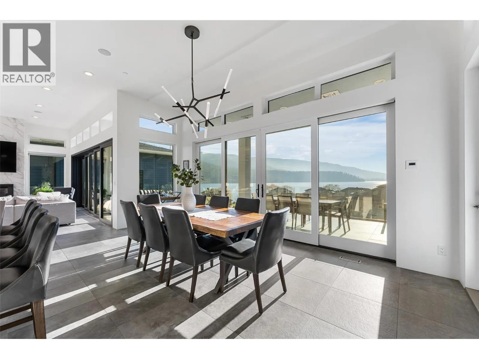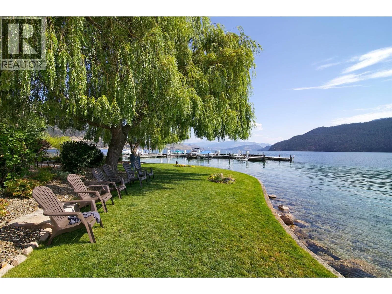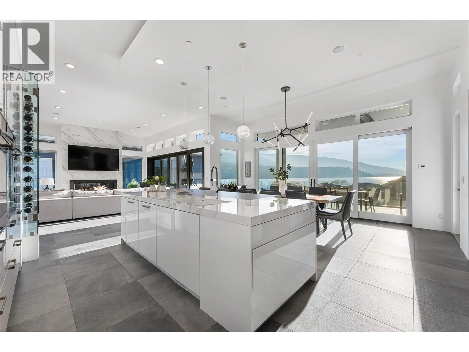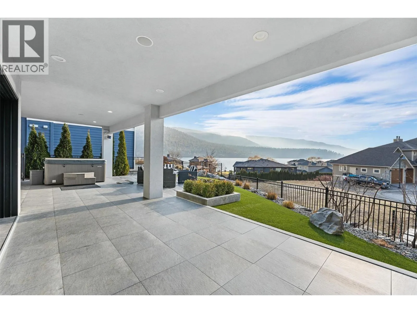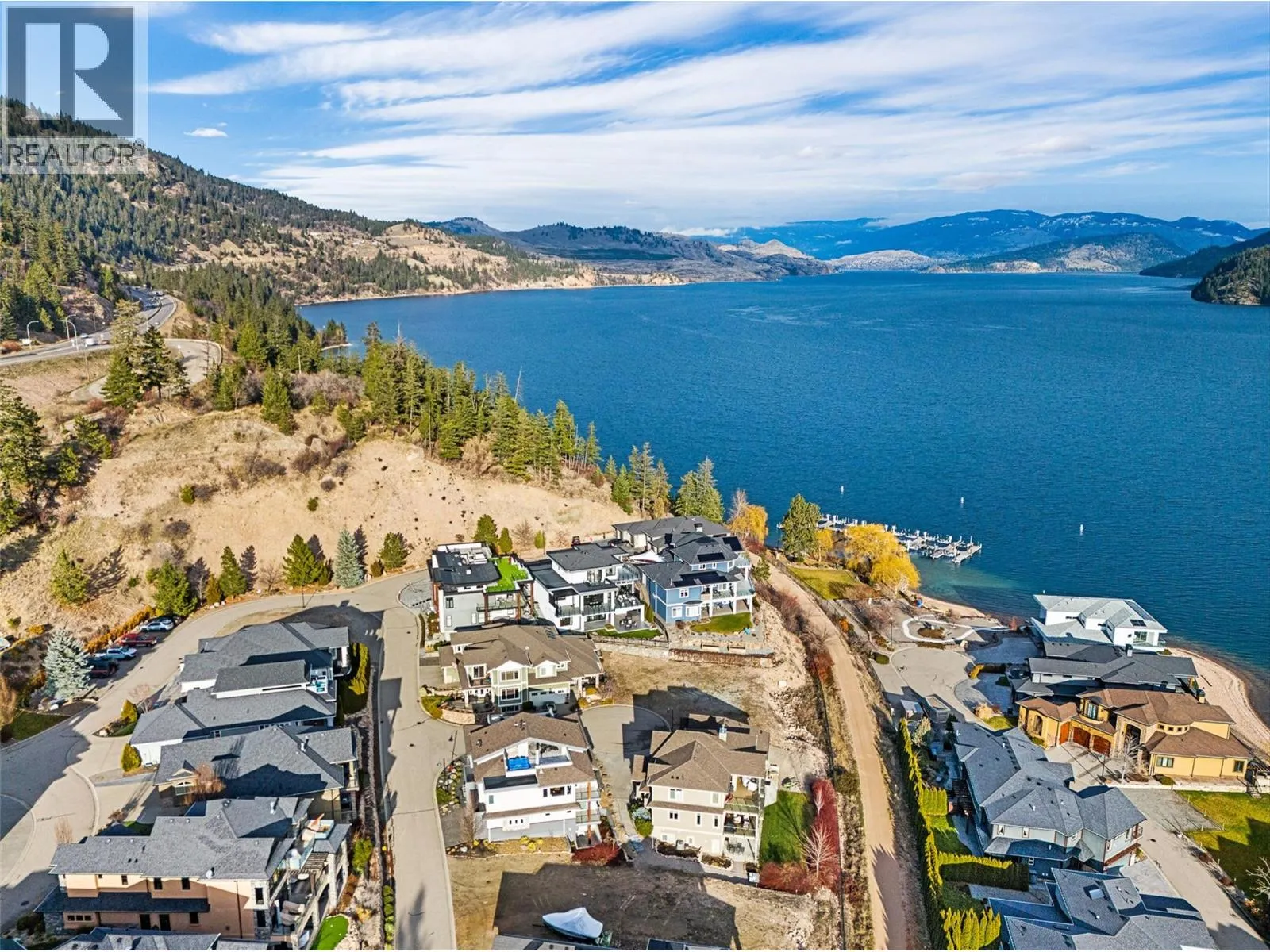 Set within an exclusive, gated lakefront community this custom-built home offers an easy lock-and-leave lifestyle with breathtaking views of Kalamalka Lake. Thoughtfully designed, with each level offering outdoor access, the home invites a natural flow between indoor and outdoor living. Expansive tiled decks and patios are positioned to take full advantage of the lake views, creating inviting spaces for everything from morning coffee to long summer evenings. A dedicated boat slip with a 3-tonne lift makes time on the water feel effortless, allowing lake days to unfold naturally. Inside, the open-concept main level is filled with light, defined by soaring ceilings, walls of windows, and nano doors that open wide to the deck. The kitchen is both welcoming and refined, featuring custom cabinetry, Sub-Zero refrigeration, JennAir and Wolf appliances, a built-in wine display, and a butlerâs pantry designed for easy entertaining. Integrated sound, Hunter Douglas blinds, and thoughtful custom finishes add quiet sophistication throughout. Upstairs, the primary suite feels like a private retreat with its own lakeview deck, fireplace, and spa-inspired ensuite with heated floors and a walk-through shower. The walkout lower level offers flexible living with a rec room, custom bar, gym, and direct access to the fenced backyard. A 3-level elevator, a generous triple-car garage with epoxy floors and ample space for boat storage complete a home designed for relaxed, elevated Okanagan living. (id:27476)