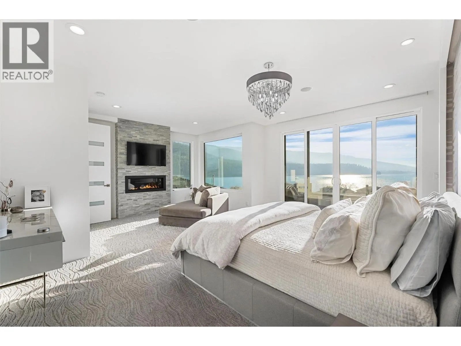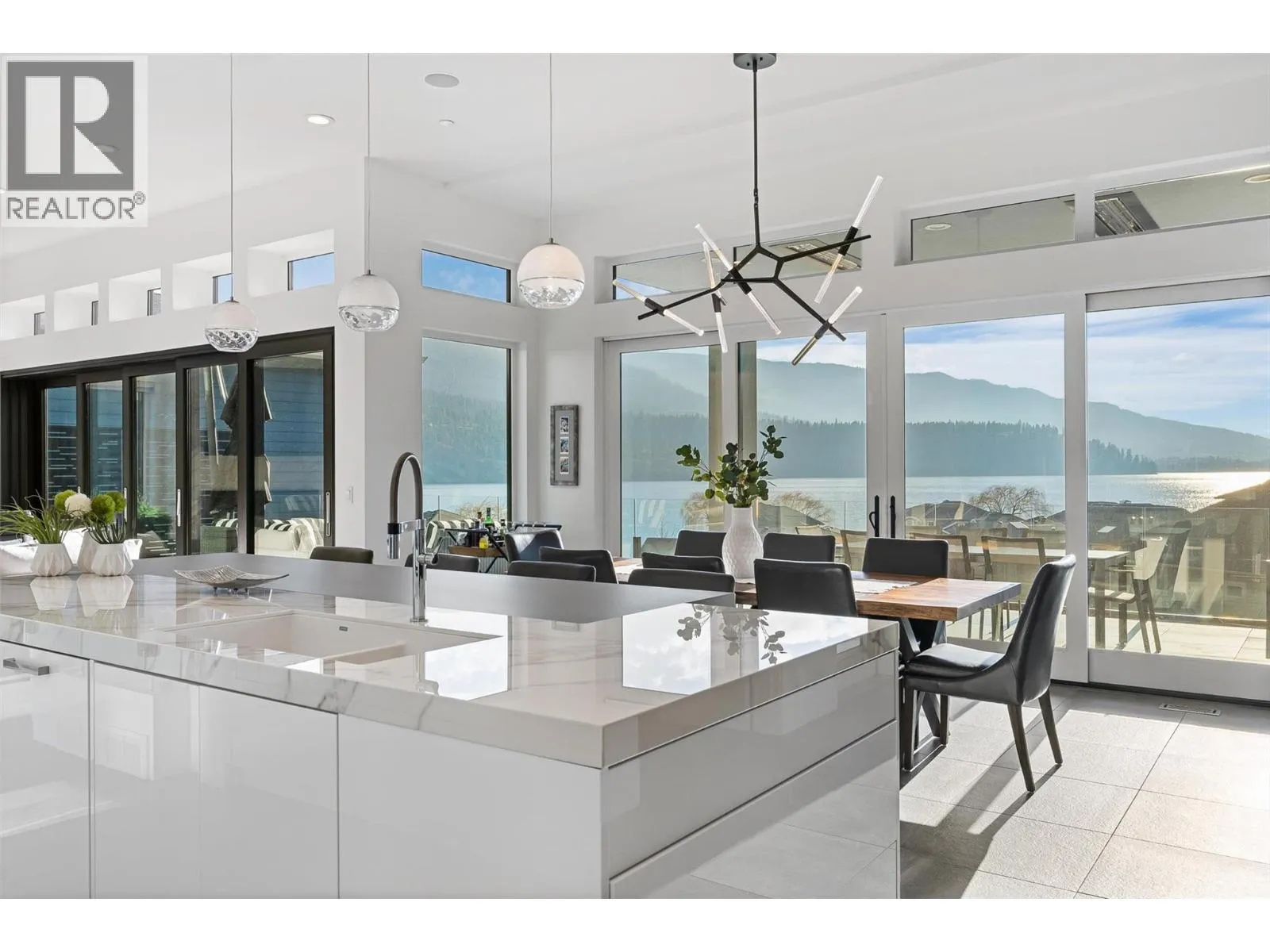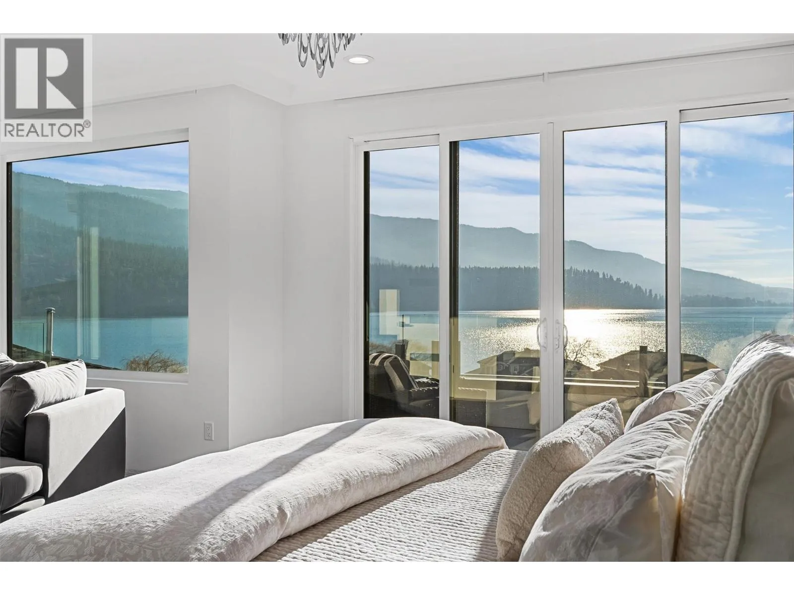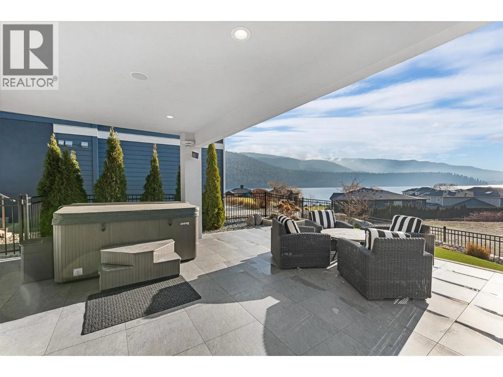 Set within an exclusive, gated lakefront community this custom-built home offers an easy lock-and-leave lifestyle with breathtaking views of Kalamalka Lake. Thoughtfully designed, with each level offering outdoor access, the home invites a natural flow between indoor and outdoor living. Expansive tiled decks and patios are positioned to take full advantage of the lake views, creating inviting spaces for everything from morning coffee to long summer evenings. A dedicated boat slip with a 3-tonne lift makes time on the water feel effortless, allowing lake days to unfold naturally. Inside, the open-concept main level is filled with light, defined by soaring ceilings, walls of windows, and nano doors that open wide to the deck. The kitchen is both welcoming and refined, featuring custom cabinetry, Sub-Zero refrigeration, JennAir and Wolf appliances, a built-in wine display, and a butlerâs pantry designed for easy entertaining. Integrated sound, Hunter Douglas blinds, and thoughtful custom finishes add quiet sophistication throughout. Upstairs, the primary suite feels like a private retreat with its own lakeview deck, fireplace, and spa-inspired ensuite with heated floors and a walk-through shower. The walkout lower level offers flexible living with a rec room, custom bar, gym, and direct access to the fenced backyard. A 3-level elevator, a generous triple-car garage with epoxy floors and ample space for boat storage complete a home designed for relaxed, elevated Okanagan living. (id:27476)