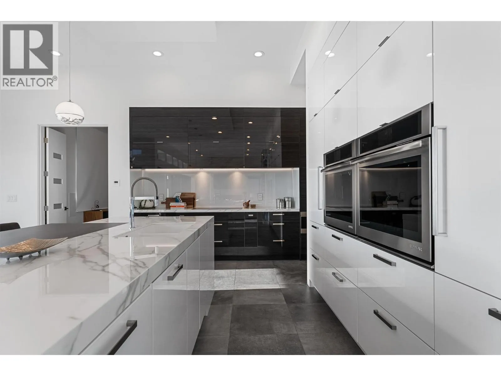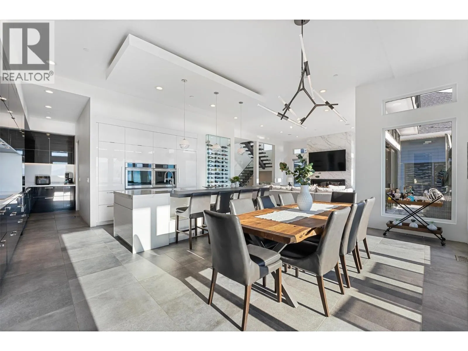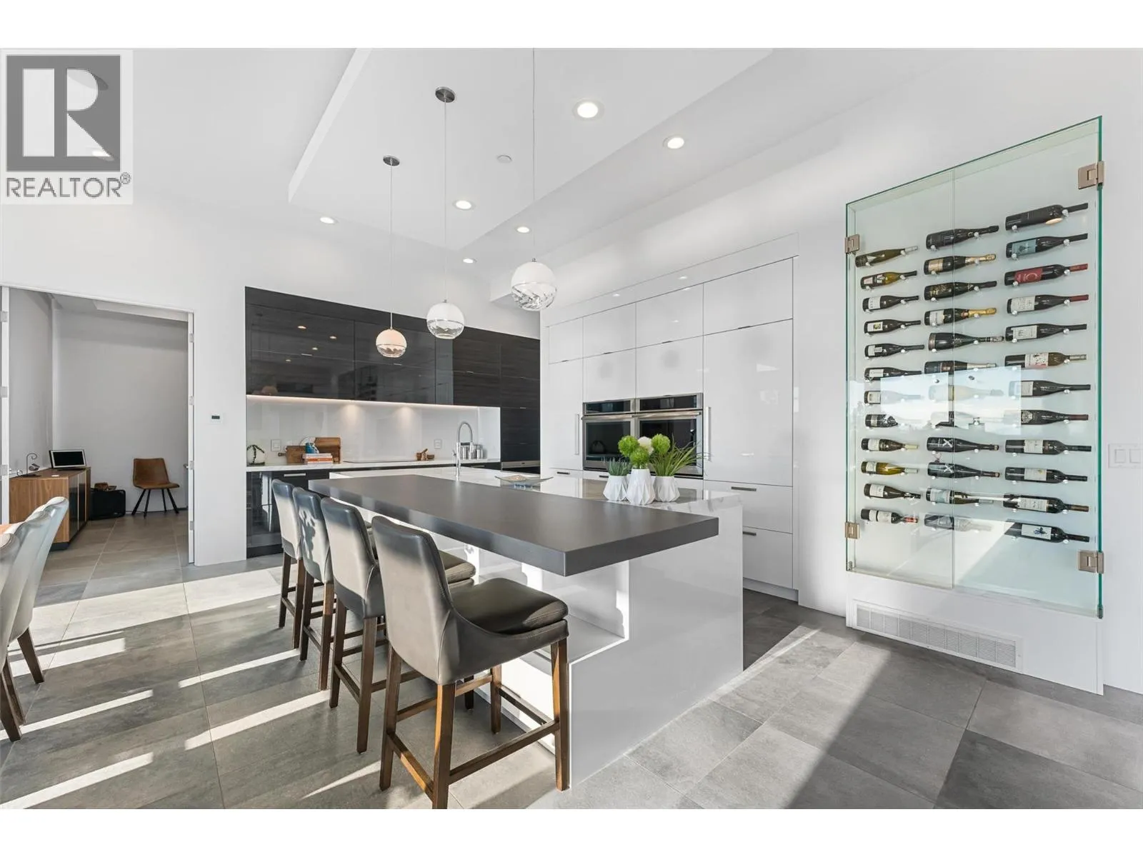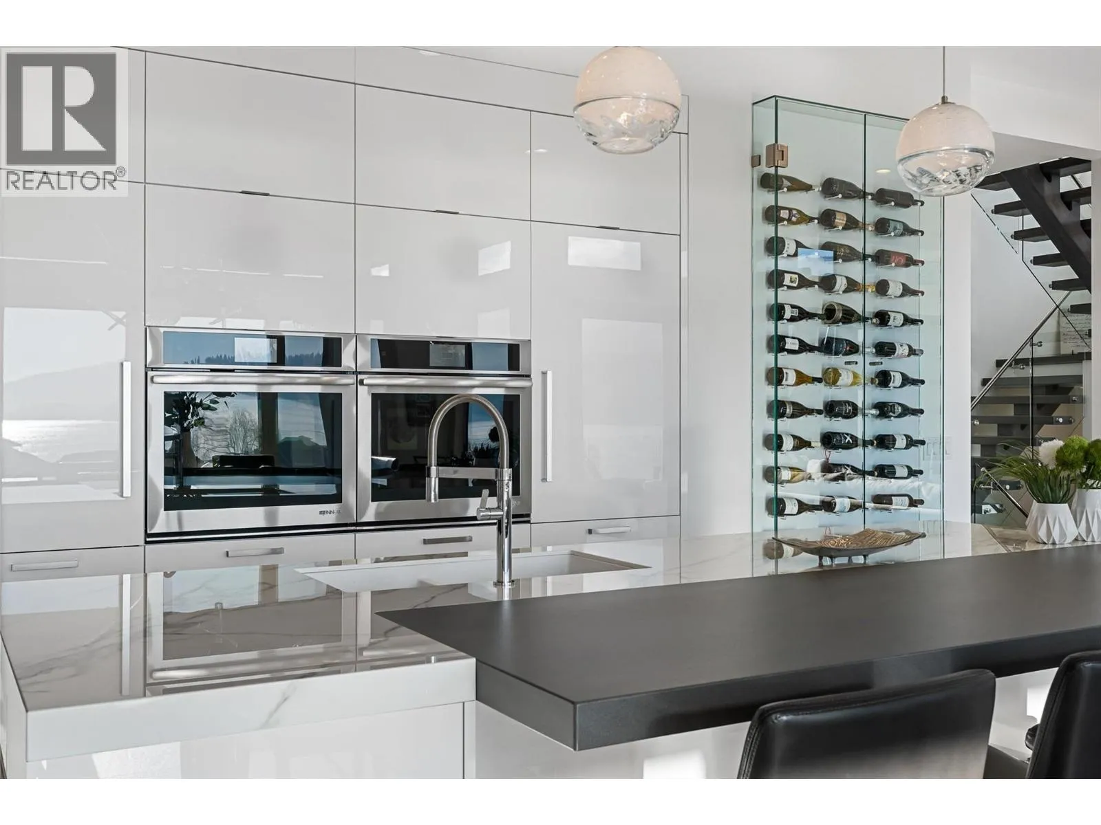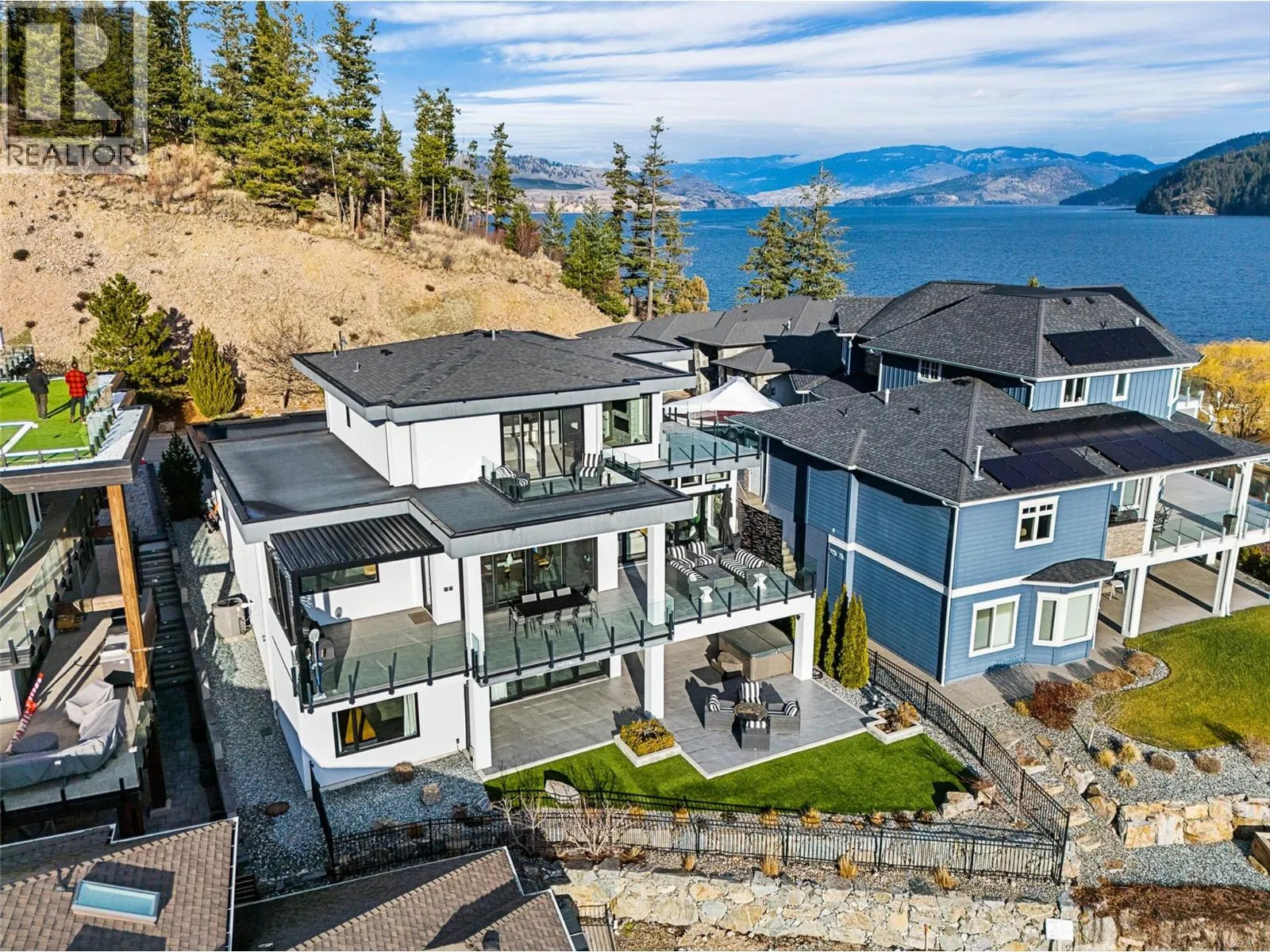 Set within an exclusive, gated lakefront community this custom-built home offers an easy lock-and-leave lifestyle with breathtaking views of Kalamalka Lake. Thoughtfully designed, with each level offering outdoor access, the home invites a natural flow between indoor and outdoor living. Expansive tiled decks and patios are positioned to take full advantage of the lake views, creating inviting spaces for everything from morning coffee to long summer evenings. A dedicated boat slip with a 3-tonne lift makes time on the water feel effortless, allowing lake days to unfold naturally. Inside, the open-concept main level is filled with light, defined by soaring ceilings, walls of windows, and nano doors that open wide to the deck. The kitchen is both welcoming and refined, featuring custom cabinetry, Sub-Zero refrigeration, JennAir and Wolf appliances, a built-in wine display, and a butlerâs pantry designed for easy entertaining. Integrated sound, Hunter Douglas blinds, and thoughtful custom finishes add quiet sophistication throughout. Upstairs, the primary suite feels like a private retreat with its own lakeview deck, fireplace, and spa-inspired ensuite with heated floors and a walk-through shower. The walkout lower level offers flexible living with a rec room, custom bar, gym, and direct access to the fenced backyard. A 3-level elevator, a generous triple-car garage with epoxy floors and ample space for boat storage complete a home designed for relaxed, elevated Okanagan living. (id:27476)