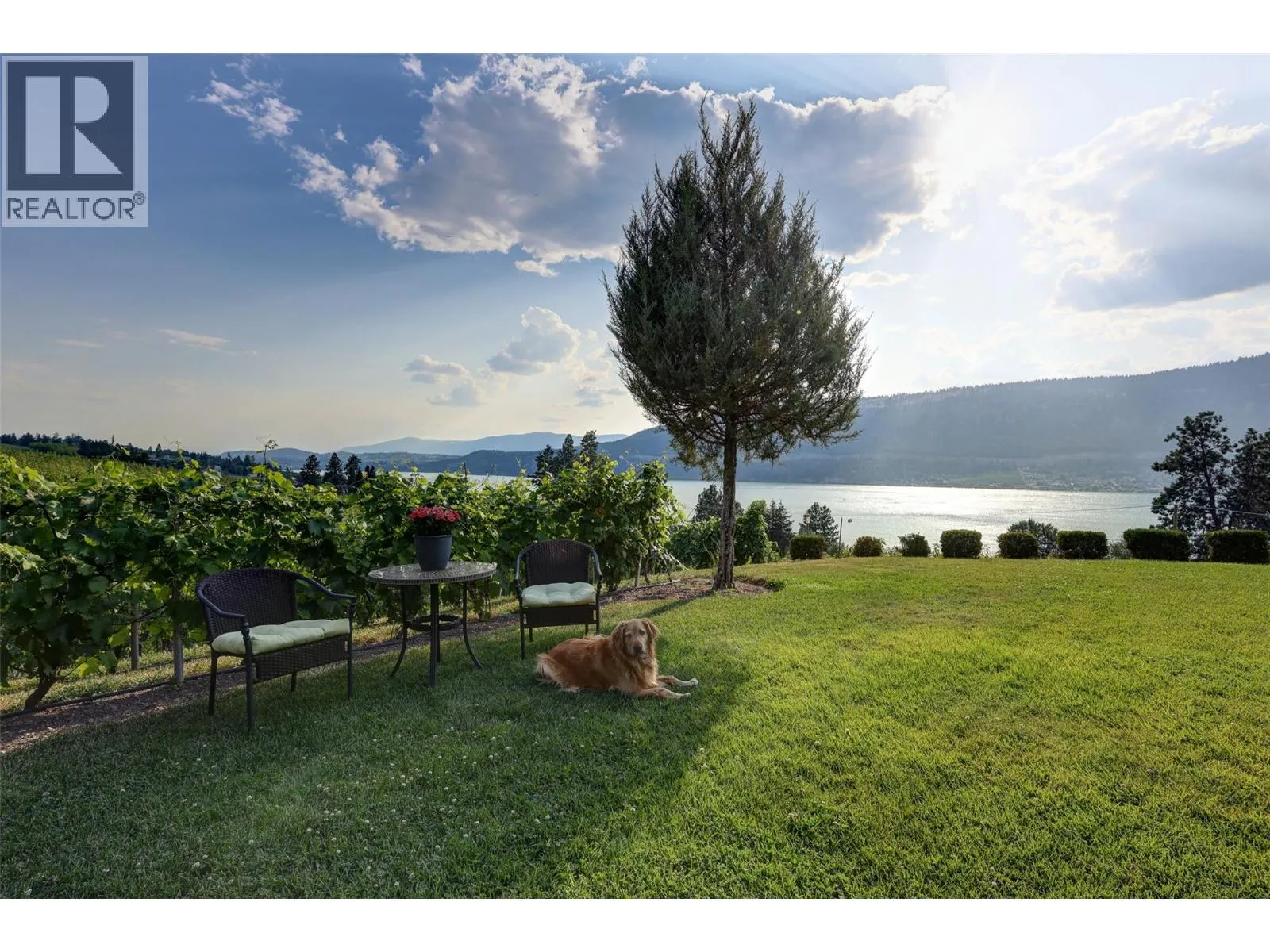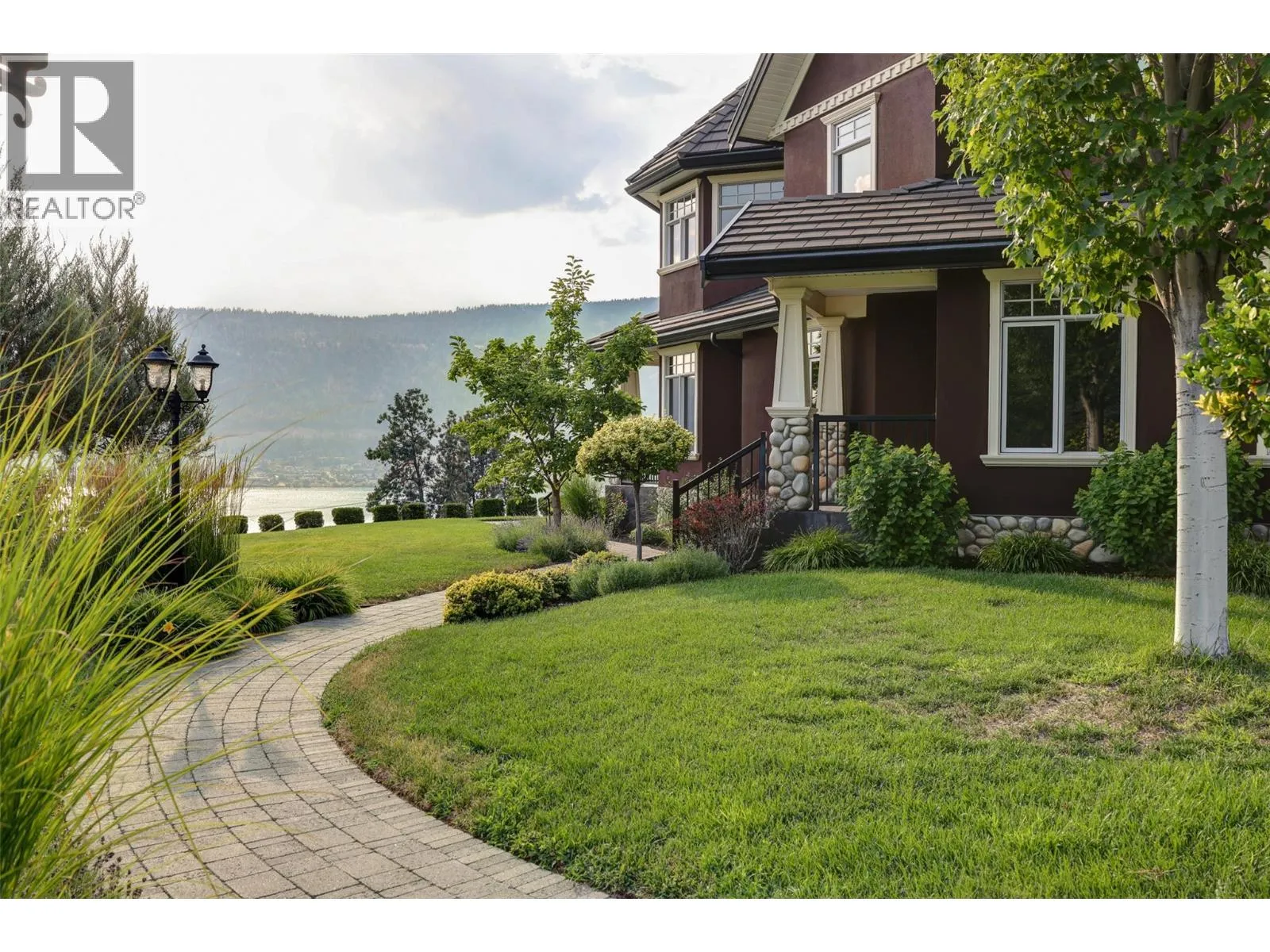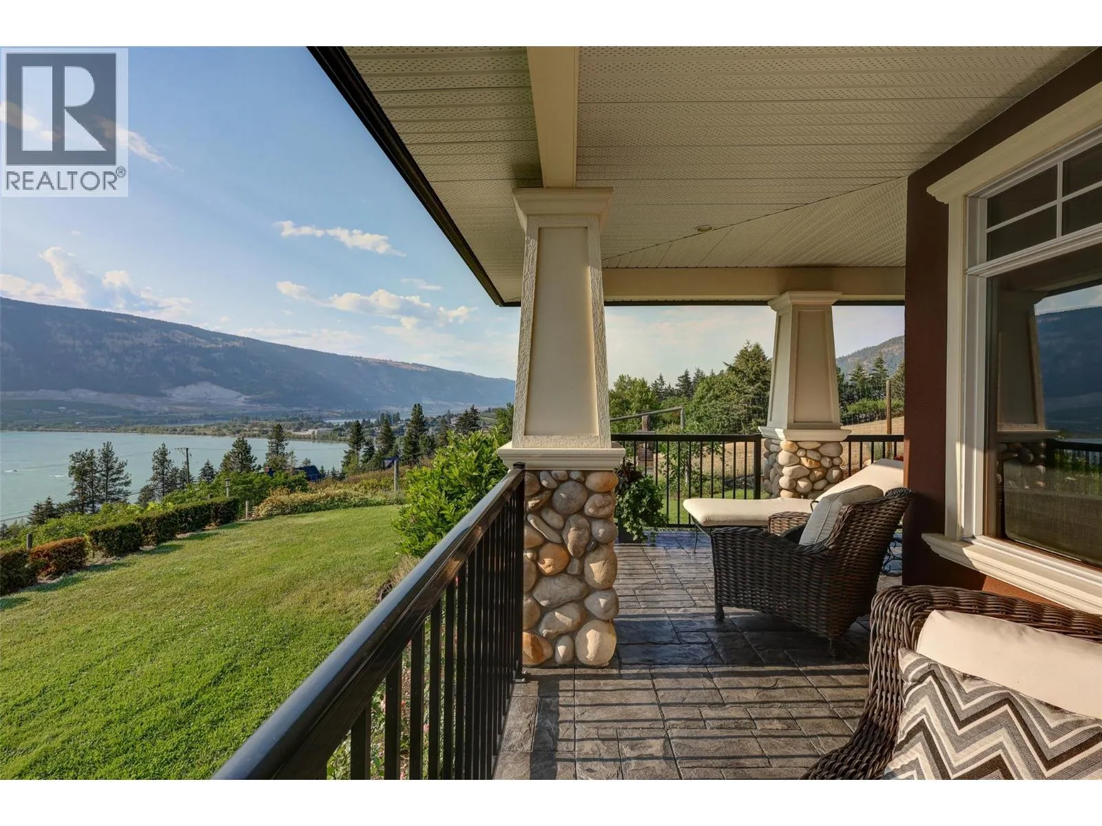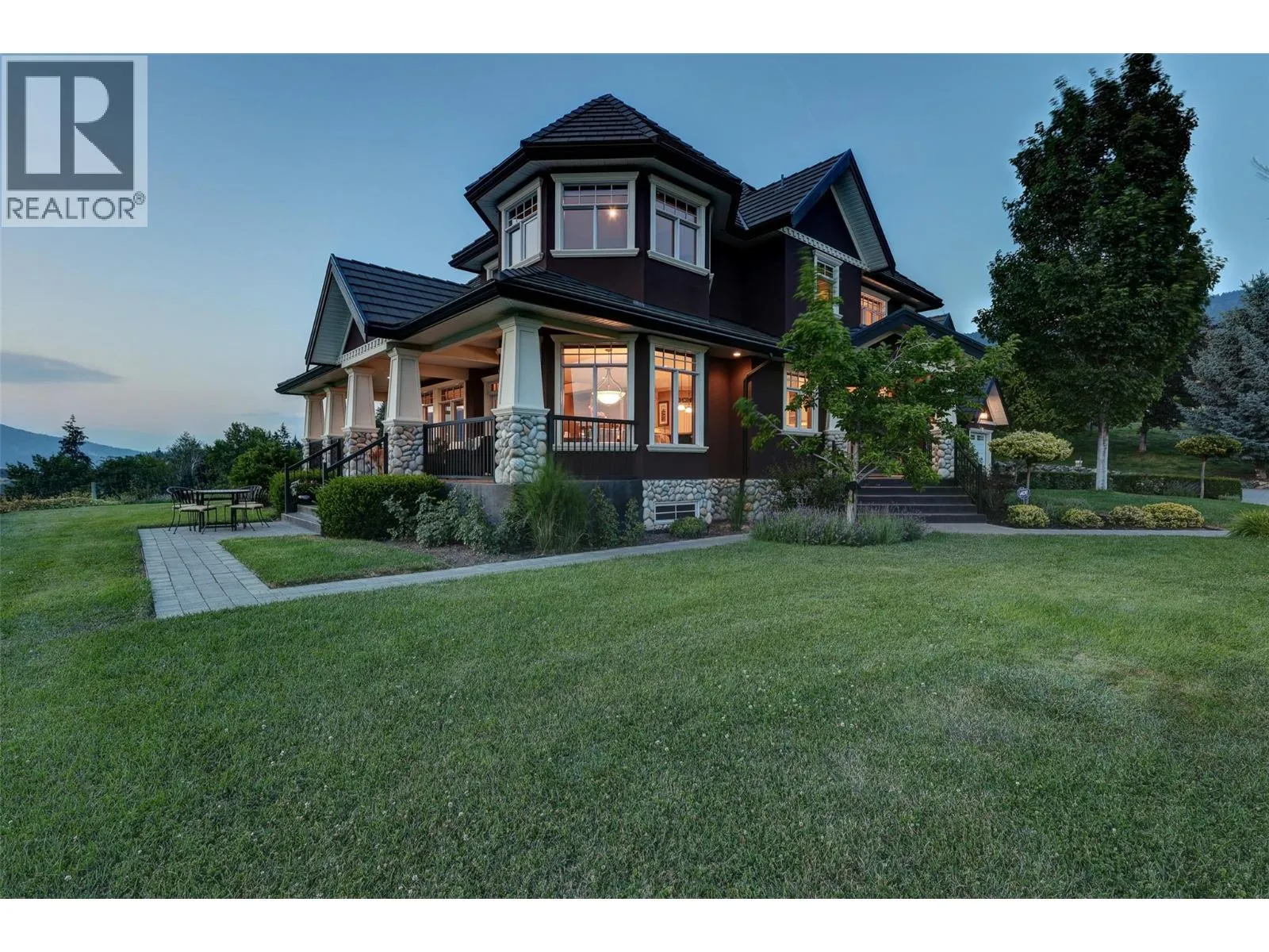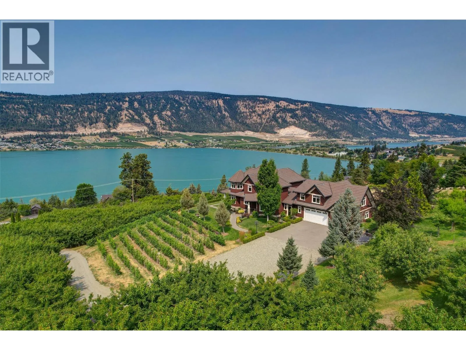 Welcome to an extraordinary custom estate offering over 6,200 sq. ft. of refined living space. Perfectly positioned to capture expansive lake and mountain views, this one-of-a-kind property blends timeless architecture with the beauty and productivity of a thriving orchard. Set on 7 manicured acres, the mature cherry orchard features approximately 3,500 Lapin, Staccato, and Centennial cherry trees, originally planted in 2003 and meticulously maintained, offering both lifestyle and income potential. Inside, craftsmanship and quality are immediately evident. Vaulted ceilings, solid wood-framed windows, and a statement fireplace anchor the main living space, while expansive windows frame the breathtaking views beyond. The gourmet custom kitchen is designed to impress, featuring commercial-grade stainless steel appliances, a gas range with pot filler, and a two-tier island ideal for entertaining and everyday living alike. The primary suite on the main level is a private retreat with direct access to the covered deck and views beyond. The spa-inspired ensuite includes dual sinks, a soaker tub, and a glass-encased shower, designed for relaxation and comfort. Upstairs, a loft area with a separate entrance and rough-in for a kitchenette offers excellent potential for a guest suite or B&B accommodation. The fully finished lower level adds versatility with a wine cellar, in-home gym (easily convertible to a media room), and abundant storage. Modern comforts include hot water on demand and thoughtfully designed systems throughout. Car enthusiasts will appreciate the triple attached garage, additional detached workshop for farm maintenance, and an oversized gated driveway with ample RV parking. Privately situated on a quiet road, yet just minutes to shopping, wineries, and schools, this exceptional estate offers the perfect blend of luxury living and agricultural opportunity in a truly breathtaking setting. (id:27476)