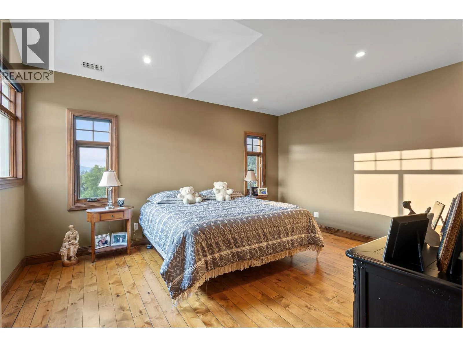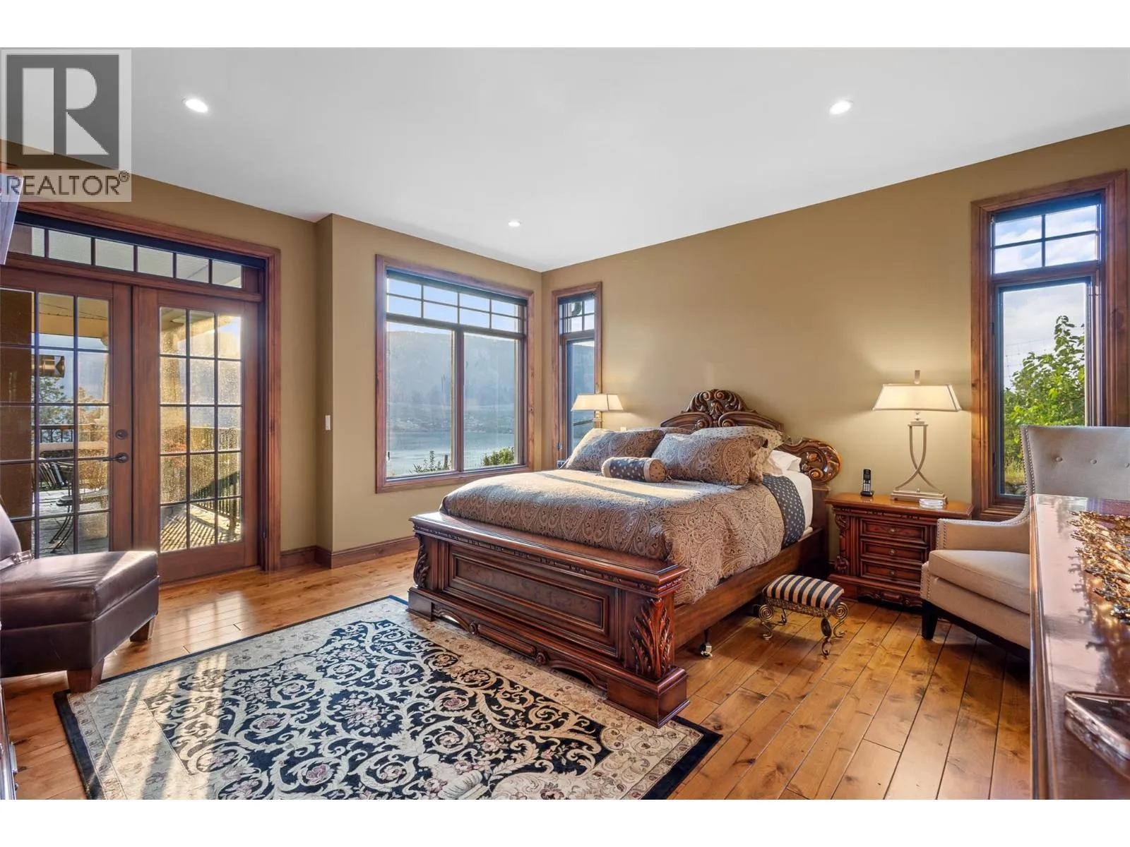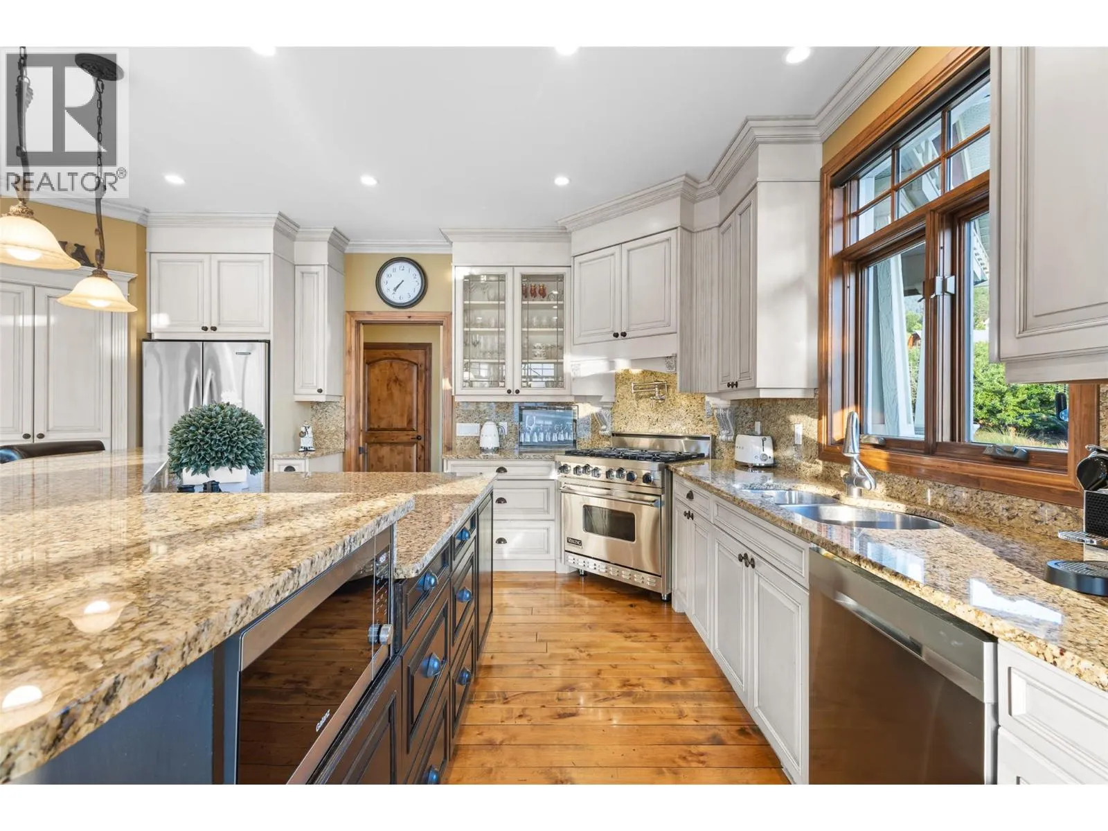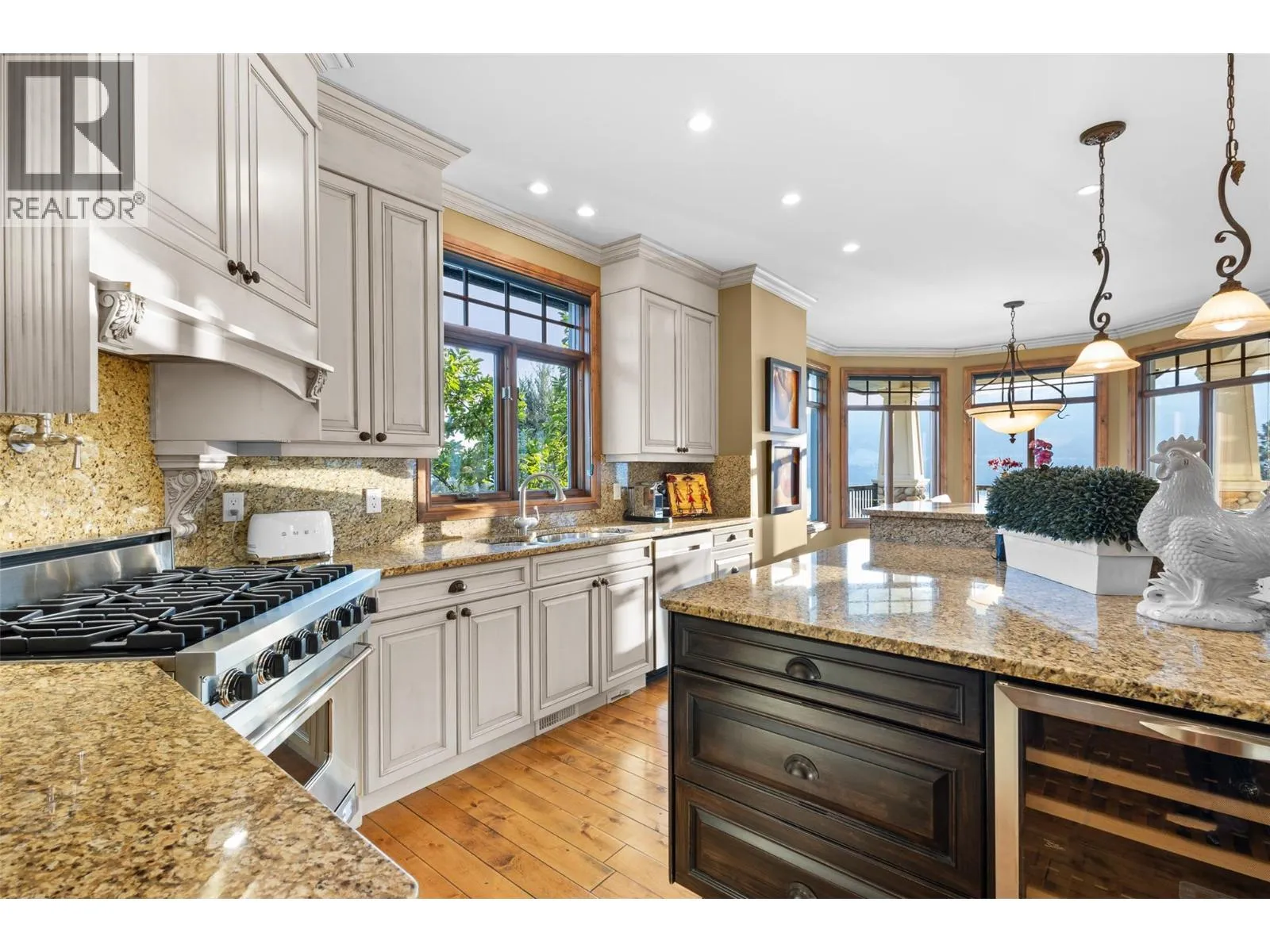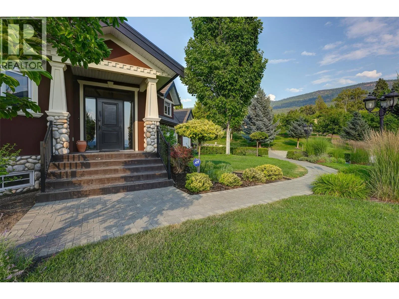 Welcome to an extraordinary custom estate offering over 6,200 sq. ft. of refined living space. Perfectly positioned to capture expansive lake and mountain views, this one-of-a-kind property blends timeless architecture with the beauty and productivity of a thriving orchard. Set on 7 manicured acres, the mature cherry orchard features approximately 3,500 Lapin, Staccato, and Centennial cherry trees, originally planted in 2003 and meticulously maintained, offering both lifestyle and income potential. Inside, craftsmanship and quality are immediately evident. Vaulted ceilings, solid wood-framed windows, and a statement fireplace anchor the main living space, while expansive windows frame the breathtaking views beyond. The gourmet custom kitchen is designed to impress, featuring commercial-grade stainless steel appliances, a gas range with pot filler, and a two-tier island ideal for entertaining and everyday living alike. The primary suite on the main level is a private retreat with direct access to the covered deck and views beyond. The spa-inspired ensuite includes dual sinks, a soaker tub, and a glass-encased shower, designed for relaxation and comfort. Upstairs, a loft area with a separate entrance and rough-in for a kitchenette offers excellent potential for a guest suite or B&B accommodation. The fully finished lower level adds versatility with a wine cellar, in-home gym (easily convertible to a media room), and abundant storage. Modern comforts include hot water on demand and thoughtfully designed systems throughout. Car enthusiasts will appreciate the triple attached garage, additional detached workshop for farm maintenance, and an oversized gated driveway with ample RV parking. Privately situated on a quiet road, yet just minutes to shopping, wineries, and schools, this exceptional estate offers the perfect blend of luxury living and agricultural opportunity in a truly breathtaking setting. (id:27476)