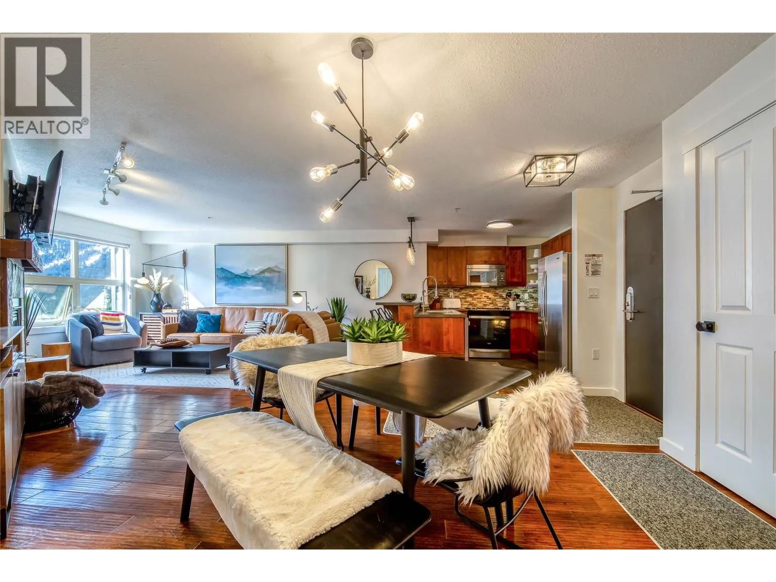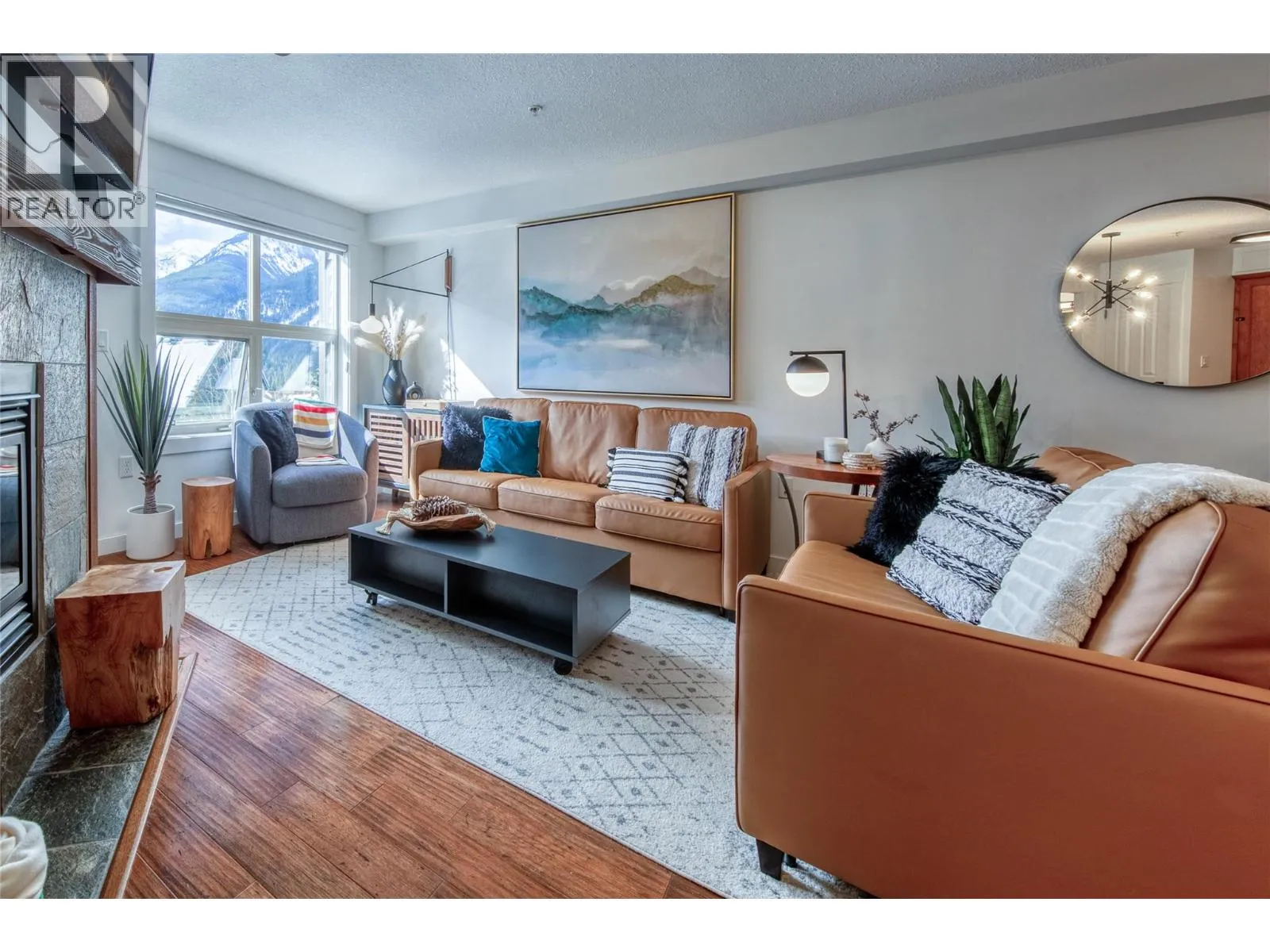 For the discerning buyer, a deluxe one-bedroom nested into Panorama's prestigious Summit building, offering unparalleled slopeside living. This residence redefines luxury, presenting an exceptionally spacious, open-concept design, ideal for après-ski. From your private balcony, immerse yourself in views of the ski hill and resort pool, providing an idyllic setting for relaxation. Effortless access to Panorama's world-class amenities, from direct ski access to an array of fine dining establishments and boutique village core. This unit distinguishes itself with the rare inclusion of an in-suite washer/dryer. Abundant, thoughtful storage solutions are seamlessly integrated, including a generous owner's closet situated on the deck, a feature of remarkable rarity. The interiors reflect a commitment to modern comfort and elegance, featuring a renovated bathroom and a gourmet kitchen equipped with new appliances installed in 2023. This turnkey offering is luxuriously furnished with upgraded pieces, including a premium leather EQ3 sofa, stylish dinnerware, and curated decor, making it immediately ready for your mountain escape. Every detail has been considered to maximize space and enhance the living experience. This exceptional property represents a harmonious blend of luxury, convenience, and unparalleled views, offering a truly unique ownership experience in Panorama. Opportunities of this caliber are exceedingly rare. GST is applicable to the purchase price. (id:27476)