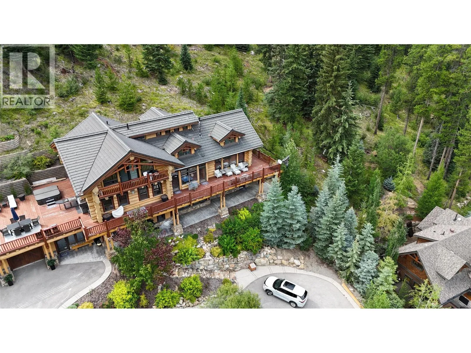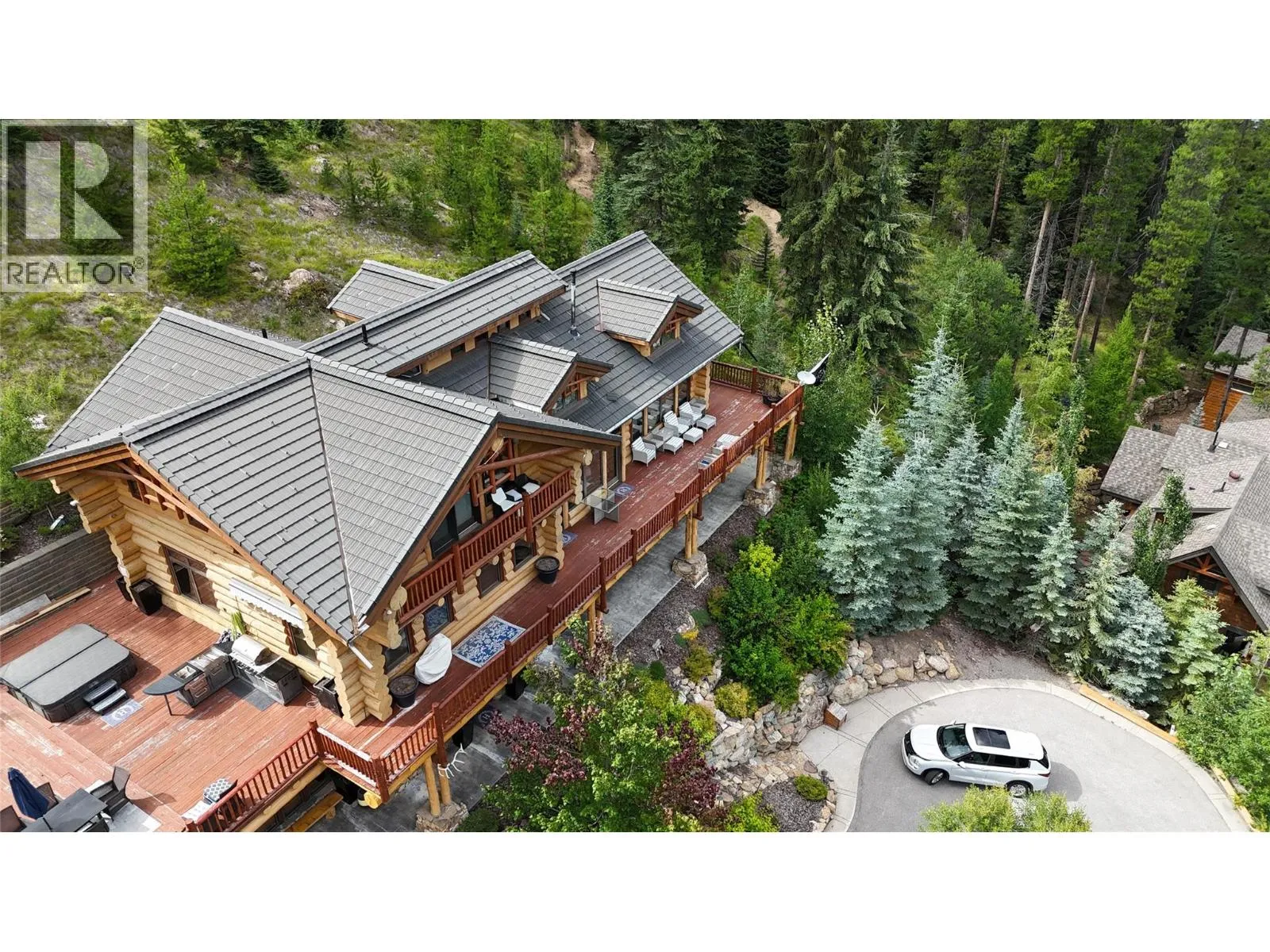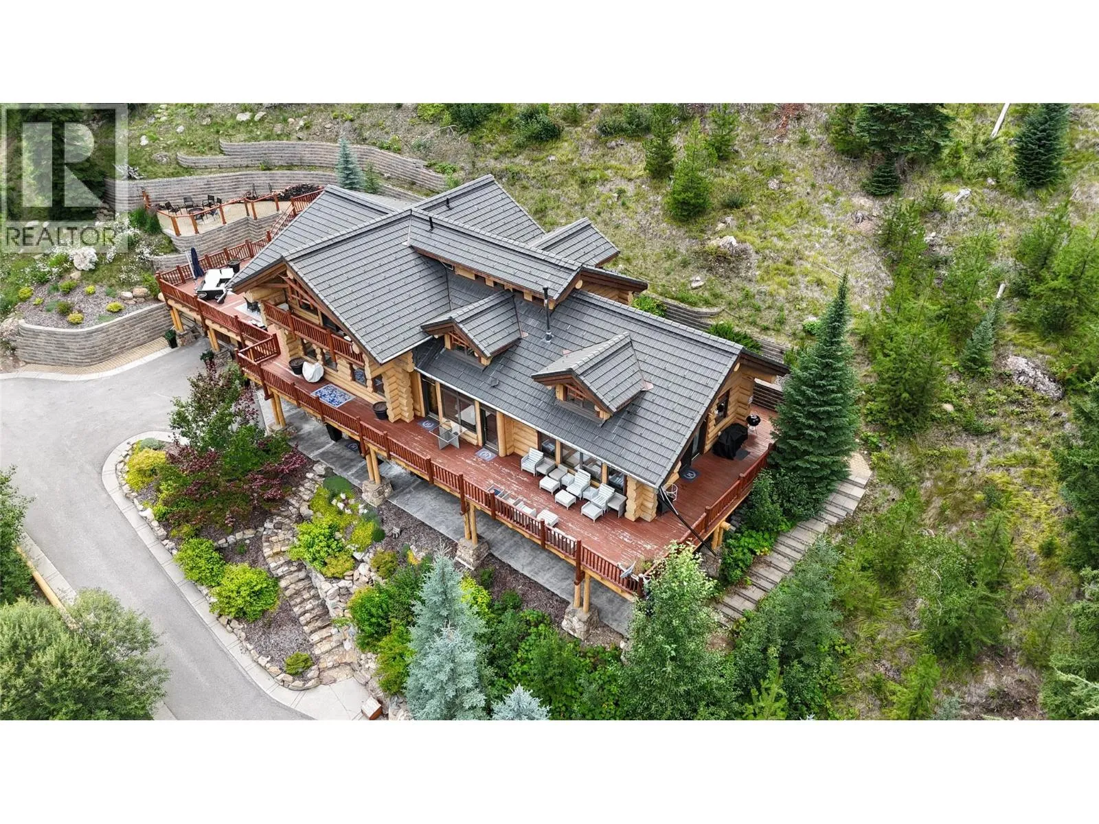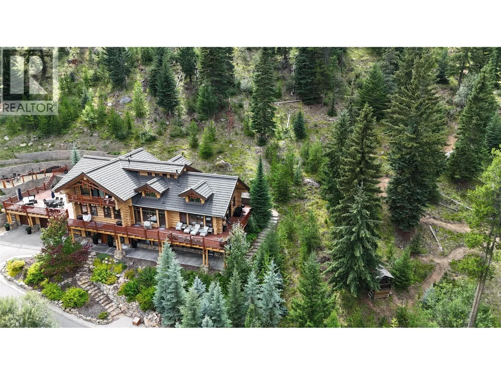 Discover Mountain Luxury in this Architect-designed home on two elevated lots with breathtaking views of BC's #1-rated Greywolf Golf Course & Panorama's ski slopes. Spanning three spacious floors, this 6 Bedroom 5-bathroom retreat perfectly combines elegance and comfort.Enjoy Easy 4 Season convenience & exceptional Outdoor spaces, including a BBQ area, hot tub, & firepit, set amidst thoughtfully landscaped grounds with privacy & an irrigation system. Inside, SOARING OPEN beam ceilings, stunning wood flooring, and a grand staircase create an atmosphere of sophistication.The open-concept kitchen is a chefâs dream, featuring a massive island, updated cabinetry, & seamless integration with the dining and living areas. Step onto the wrap-around deck to soak in million-dollar views, or unwind by the fireplace in complete serenity.The top-floor primary suite is a luxurious sanctuary with a private balcony, spa-inspired ensuite featuring a walk-in shower, soaker tub, dual fixtures, and a workspace. The second floor embodies mountain resort living with a grand dining area, raised deck, and a dramatic concrete fireplace dividing the dining and living rooms. Additional bedrooms offer inviting luxury for family and guests. The lower level provides guest accommodations, a movie room, & spaces for entertaining/relaxing. Smart features like automatic lighting controls enhance convenience. Enjoy the 4 Season Luxury and Lifestyle in this amazing Ski Hill Location! GST APPLICABLE (id:27476)