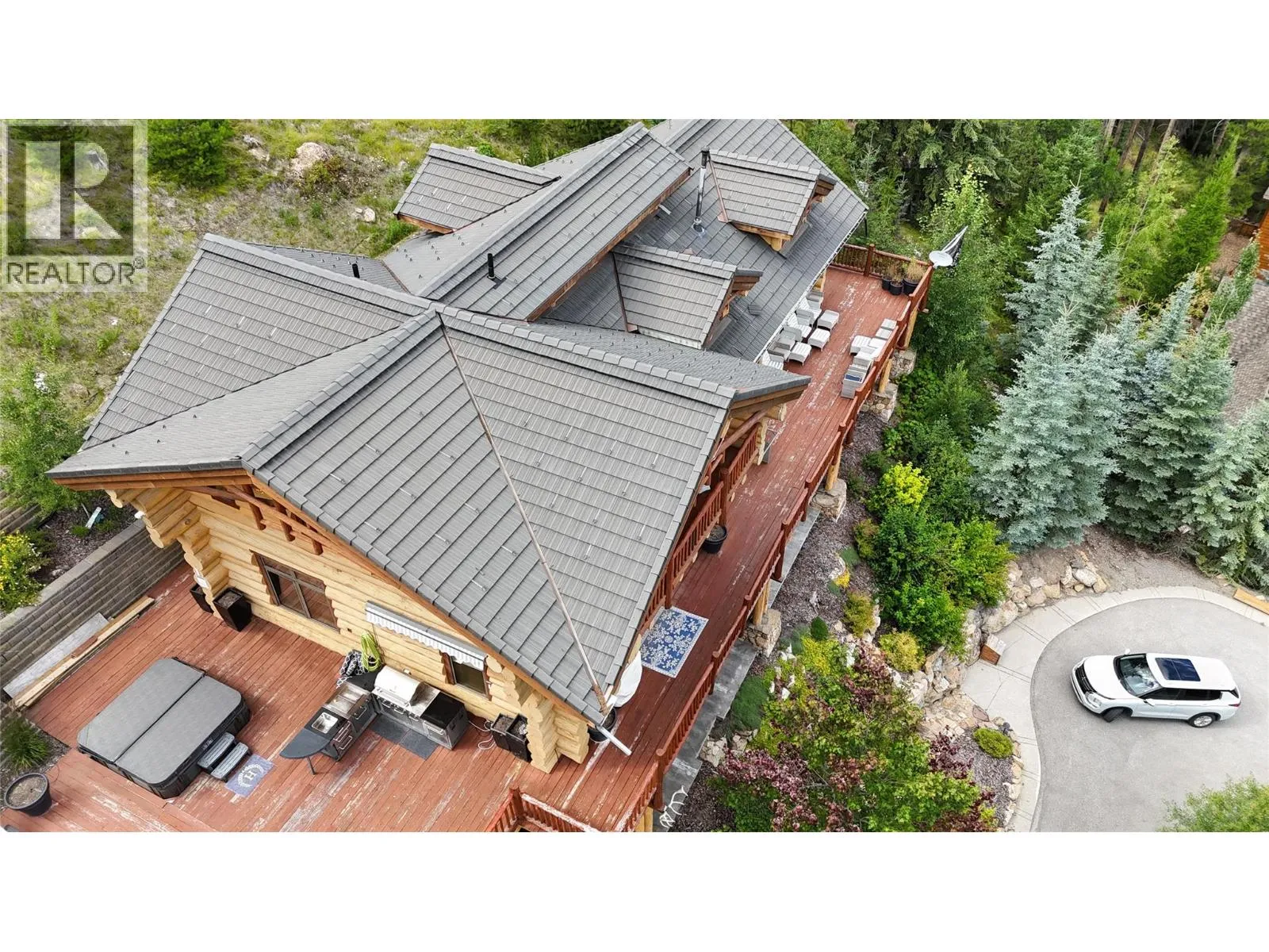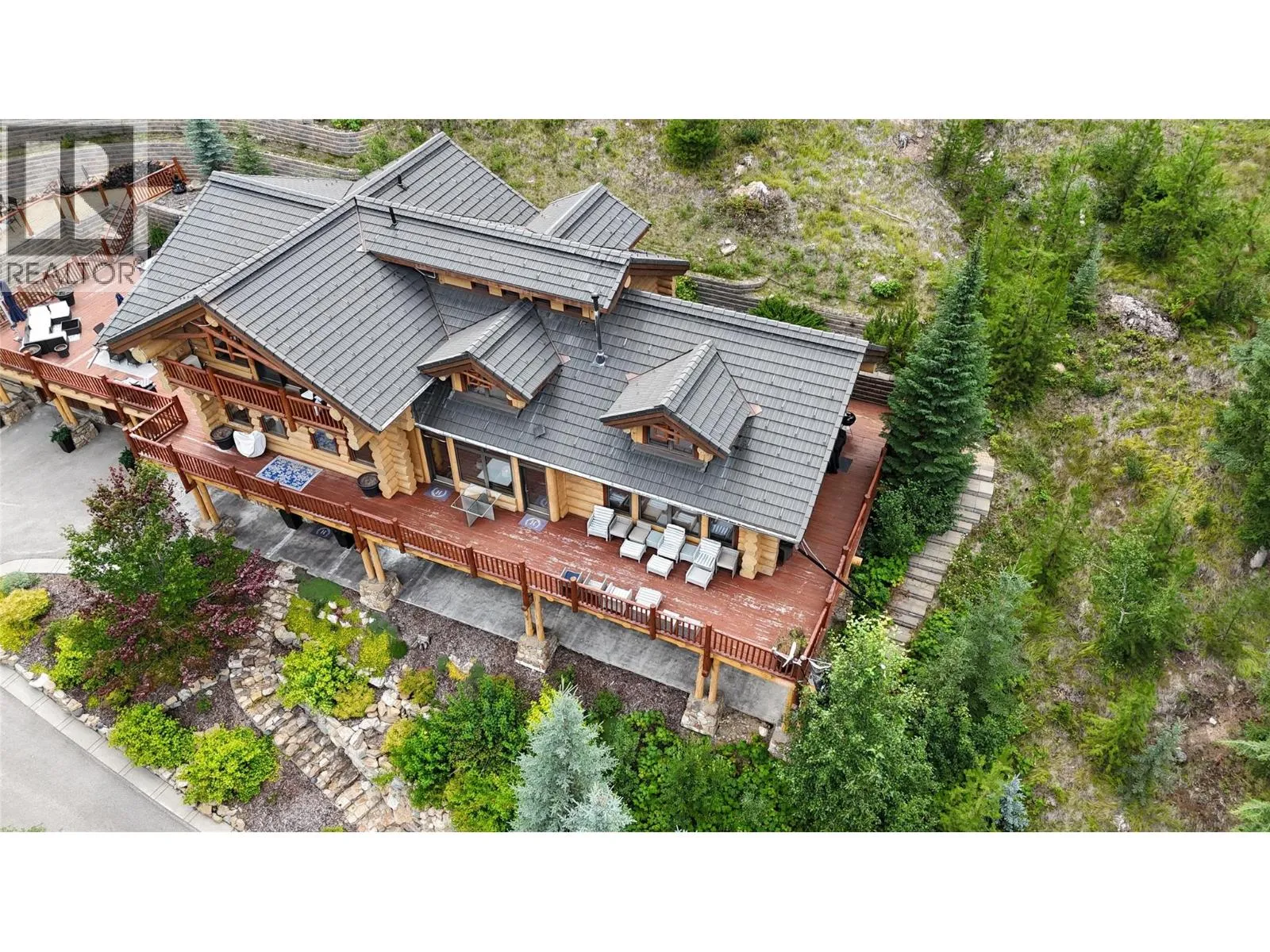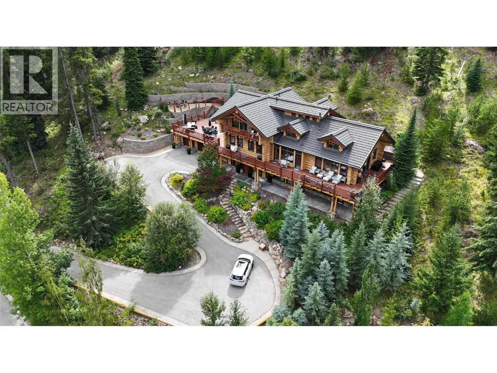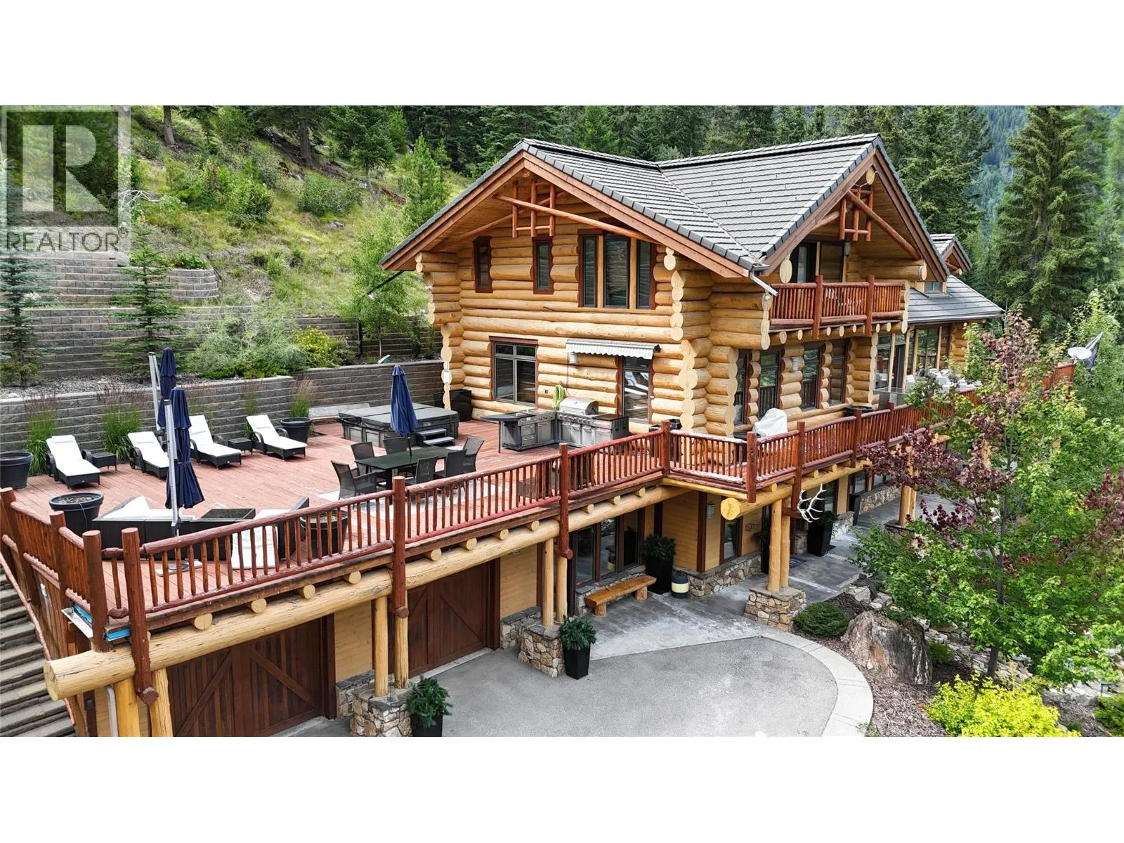 Discover Mountain Luxury in this Architect-designed home on two elevated lots with breathtaking views of BC's #1-rated Greywolf Golf Course & Panorama's ski slopes. Spanning three spacious floors, this 6 Bedroom 5-bathroom retreat perfectly combines elegance and comfort.Enjoy Easy 4 Season convenience & exceptional Outdoor spaces, including a BBQ area, hot tub, & firepit, set amidst thoughtfully landscaped grounds with privacy & an irrigation system. Inside, SOARING OPEN beam ceilings, stunning wood flooring, and a grand staircase create an atmosphere of sophistication.The open-concept kitchen is a chefâs dream, featuring a massive island, updated cabinetry, & seamless integration with the dining and living areas. Step onto the wrap-around deck to soak in million-dollar views, or unwind by the fireplace in complete serenity.The top-floor primary suite is a luxurious sanctuary with a private balcony, spa-inspired ensuite featuring a walk-in shower, soaker tub, dual fixtures, and a workspace. The second floor embodies mountain resort living with a grand dining area, raised deck, and a dramatic concrete fireplace dividing the dining and living rooms. Additional bedrooms offer inviting luxury for family and guests. The lower level provides guest accommodations, a movie room, & spaces for entertaining/relaxing. Smart features like automatic lighting controls enhance convenience. Enjoy the 4 Season Luxury and Lifestyle in this amazing Ski Hill Location! GST APPLICABLE (id:27476)