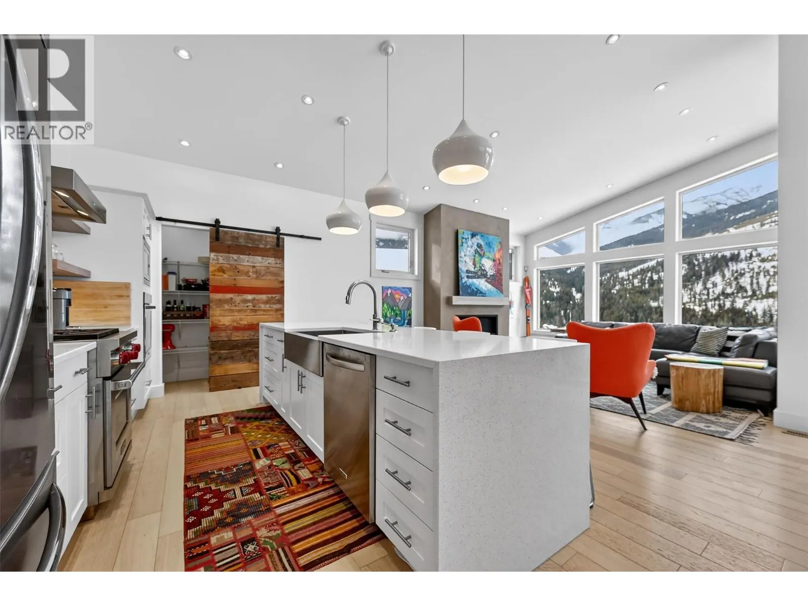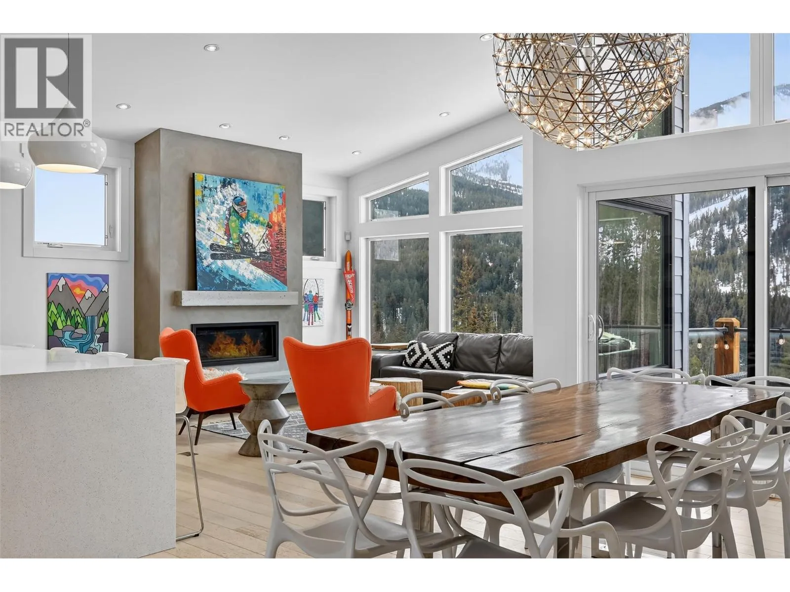Truly a ski in and ski out property! This perfect family home in the Trappers Ridge subdivision is ideal for those looking for a year-round getaway surrounded by natural beauty and recreational opportunities. This home shows beautifully and has been built to withstand generations of fun and memory making. Comes furnished and has all the modern comforts you could hope for! The very bright and open main level features a soaring vaulted ceiling and huge windows to take in the amazing mountain and valley views. The main floor living space is anchored by the cozy gas fireplace, the open kitchen with Wolf range, dual wall ovens, a spacious island and huge pantry, and the dining room. Main floor also offers a practical mudroom and the perfect primary suite with a walk-in closet and 5-piece ensuite retreat. The walkout lower level features a large rec room with fireplace and patio doors to the lower-level deck and hot tubâthe perfect place to unwind after a hard day of skiing, hiking or golfing. There are plenty of sleeping options in this well thought out basement with 2 bedrooms including one amazing âbunkyâ style room with 6 built in beds. Plenty of parking with an attached garage (currently used as an amazing ski tuning center) and oversized driveway. This home is across the street from the Trappers Lynx ski run for quick ski access just steps from your front door. The Panorama Village amenities fee includes countless year-round facilities like slope-side outdoor pools & more! (id:27476)