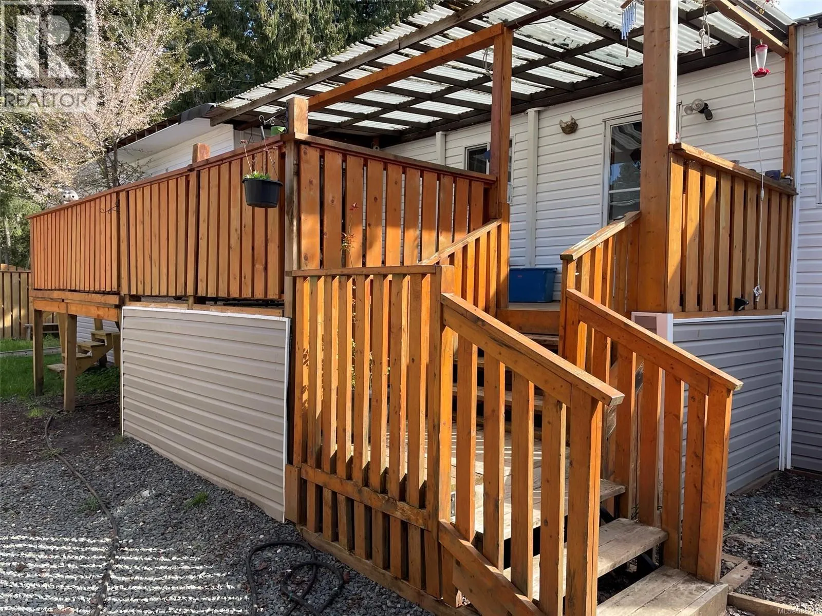 Live a vacation lifestyle daily! This 2 bedroom, 2 bath extra wide 792 sqft mobile is situated in a wonderful, family-oriented park. The home has an open living/ dining space, large kitchen, 3 piece main bath, pantry laundry room, and second bedroom. At the back is an oversized master suite and 4 piece ensuite with a jacuzzi soaker tub. Recent updates include laminate flooring, new hot water tank, security system, backsplash in bathroom and kitchen. Outside is primed for entertaining with a large, partially covered, deck running the full length of the home and stairs into a fully fenced yard. The park has full access to swimming holes both deep and shallow in the Englishman River. All this and everything that Parksville has to offer within walking distance. Available for immediate possession. All measurements approximate, verify if deemed important. Call Dan Morris at 250-667-4585 to arrange a showing or visit www.danmorris.ca to learn more or email dan@danmorris.ca Dan Morris Personal Real Estate Corporation The Dan Morris Real Estate Team. Royal LePage Nanaimo Realty Each office independently owned and operated. (id:27476)