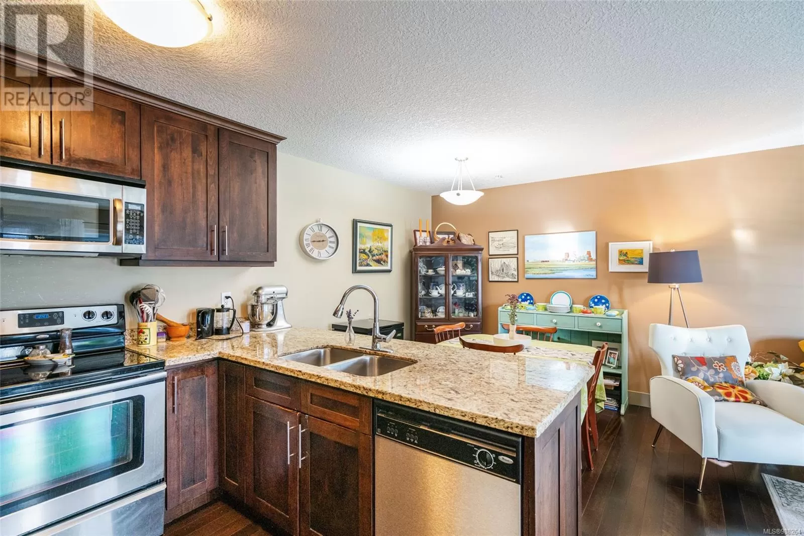 Avista in Parksville. This comfortable two-bedroom 991 square foot condo is excellent for personal use or investment. Located walking distance to shops, schools, parks and the sandy beach. On the bus route too! Hardwood flooring, lots of cabinetry plus granite counters in the kitchen, large windows, and in-suite laundry all add to the convenience of living in Avista. The spacious Primary Suite offers a 4pc ensuite. Good size second bedroom perfect for guest or family with 3pc bath across the hall. Enjoy time on the sunny deck area or relax in front of the fireplace. This well-maintained building features secured access and designated parking. The long-term month to month tenant would be pleased to stay. A nice location in beautiful Parksville. Very walkable and minutes by car to everything in Parksville and Qualicum Beach. (id:27476)