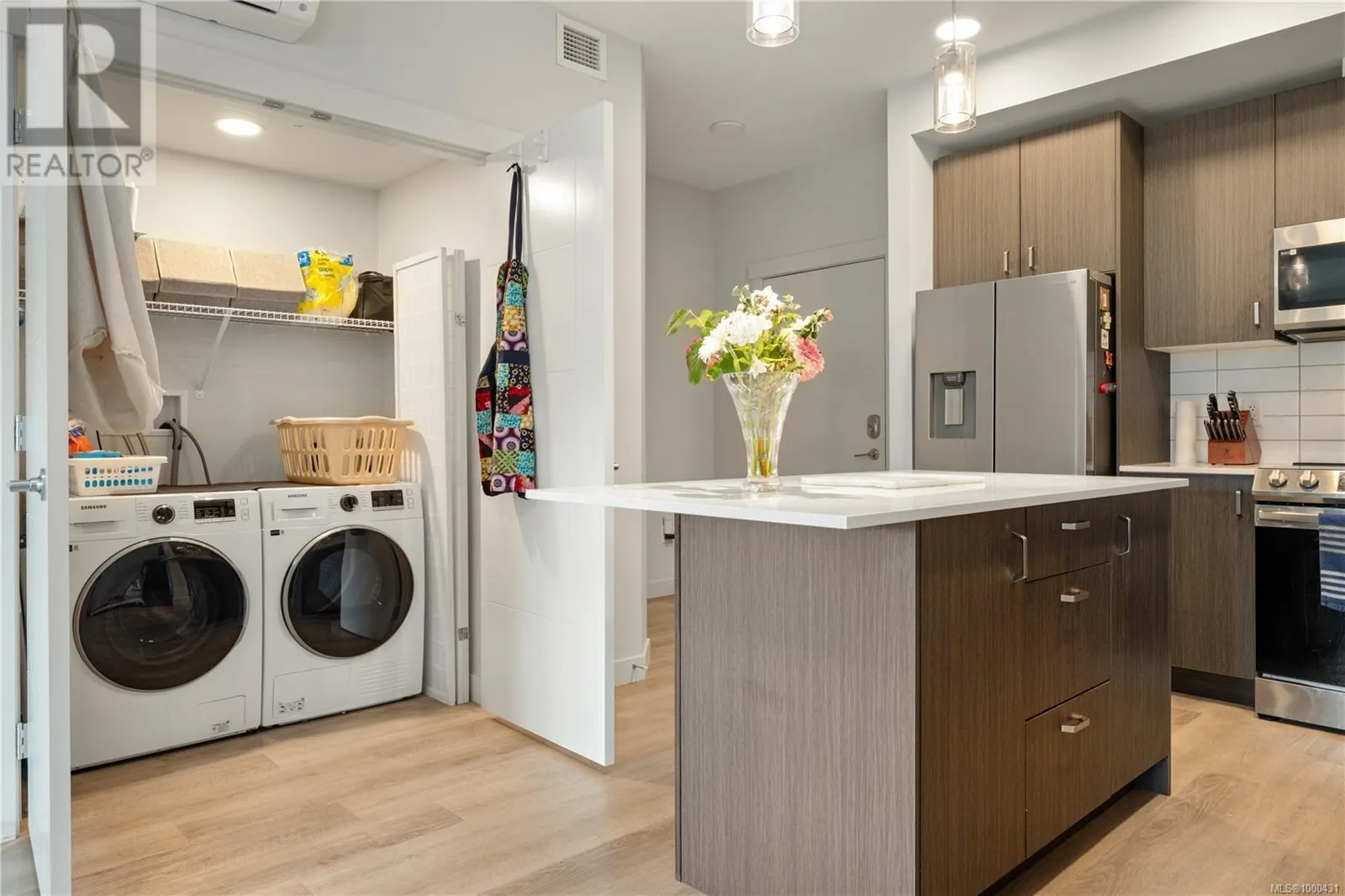 Welcome to Mosaic, Parksvilleâs newest award-winning, eco-friendly, modern contemporary building. This stylish 1 bed, 1 bath unit offers 675 sqft of efficient, high-end living in the heart of one of Vancouver Islandâs most desirable communities. Enjoy triple-pane windows, a heat pump for year-round comfort, energy recovery ventilation, sleek modern finishings, and thoughtful design throughout. Enjoy quartz countertops, soft-close cabinetry, and vinyl plank flooring. Pets and rentals are allowed, making this a flexible investment or perfect home. Includes storage and parking. Located just steps to shops, restaurants, and world-class beachesâlive where you vacation! Measurements are approximate; please verify if important. (id:27476)