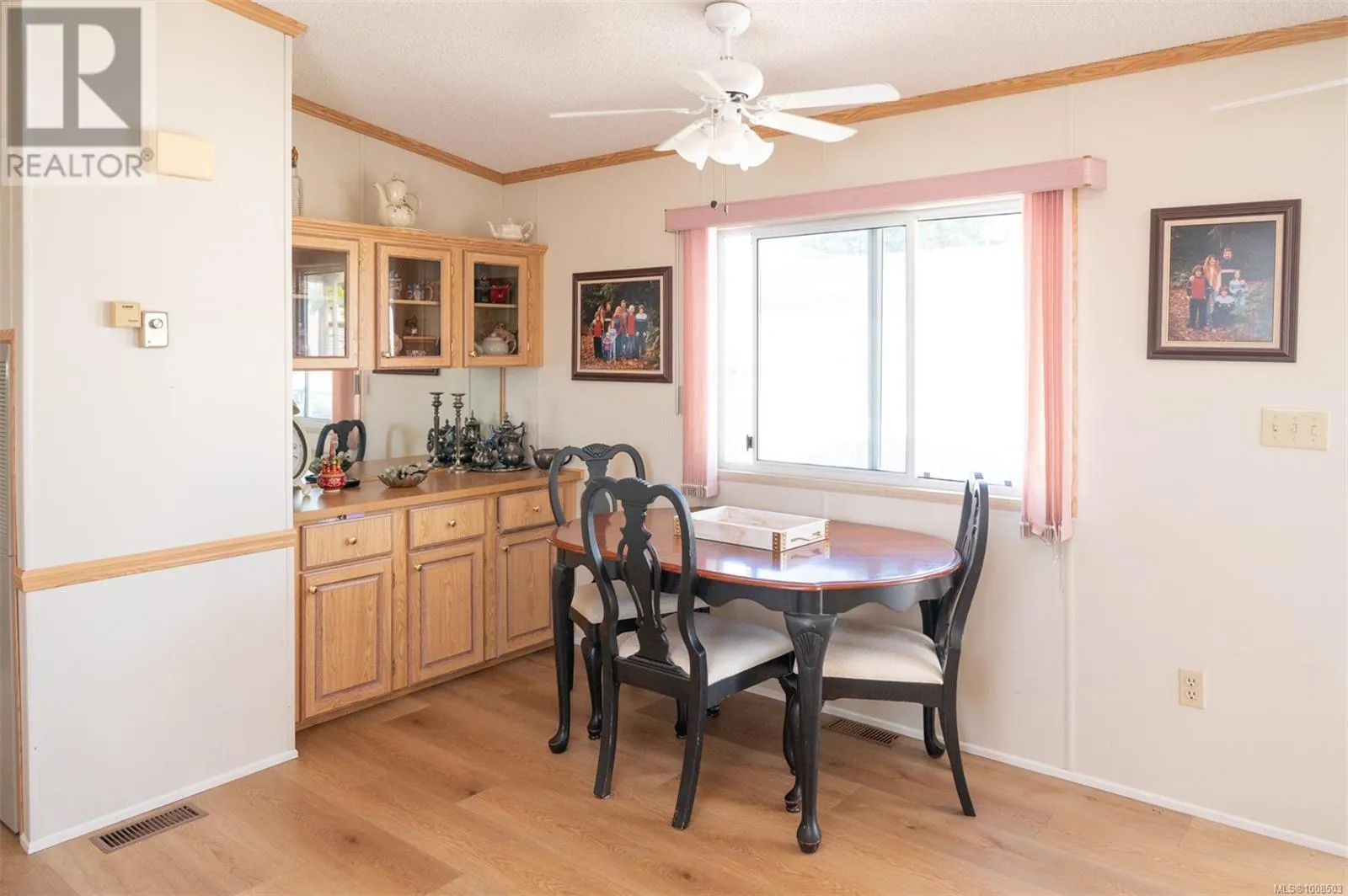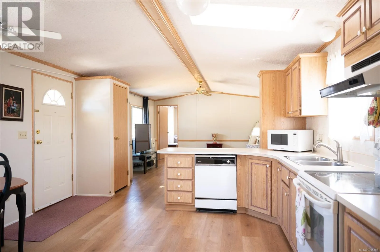A lovingly maintained and bright 2 bedroom, 2 bathroom home in the heart of Parksville. This beautifully cared-for home features two spacious bedrooms and two bathrooms, offering comfort and convenience in every corner. This bright and welcoming kitchen flows seamlessly into the dining area-perfect for daily living or entertaining guests. Vaulted ceilings create an airy, open feel, while the new flooring throughout adds a fresh, modern touch. Step outside to the generously sized yard, complete with a charming storage shed - ideal for keeping tools and totes handy. Whether you're a seasoned green thumb or just getting started this yard offers a perfect space for gardening and enjoying the outdoors. Nestled in a 55+ community, this home is perfect for retirement living. Relax in a peaceful setting and take in the beautiful views of Mt. Arrowsmith and the nearby beaches. Location is everything - You'll be minutes from shopping, essential amenities that make Parksville so desireable. (id:27476)