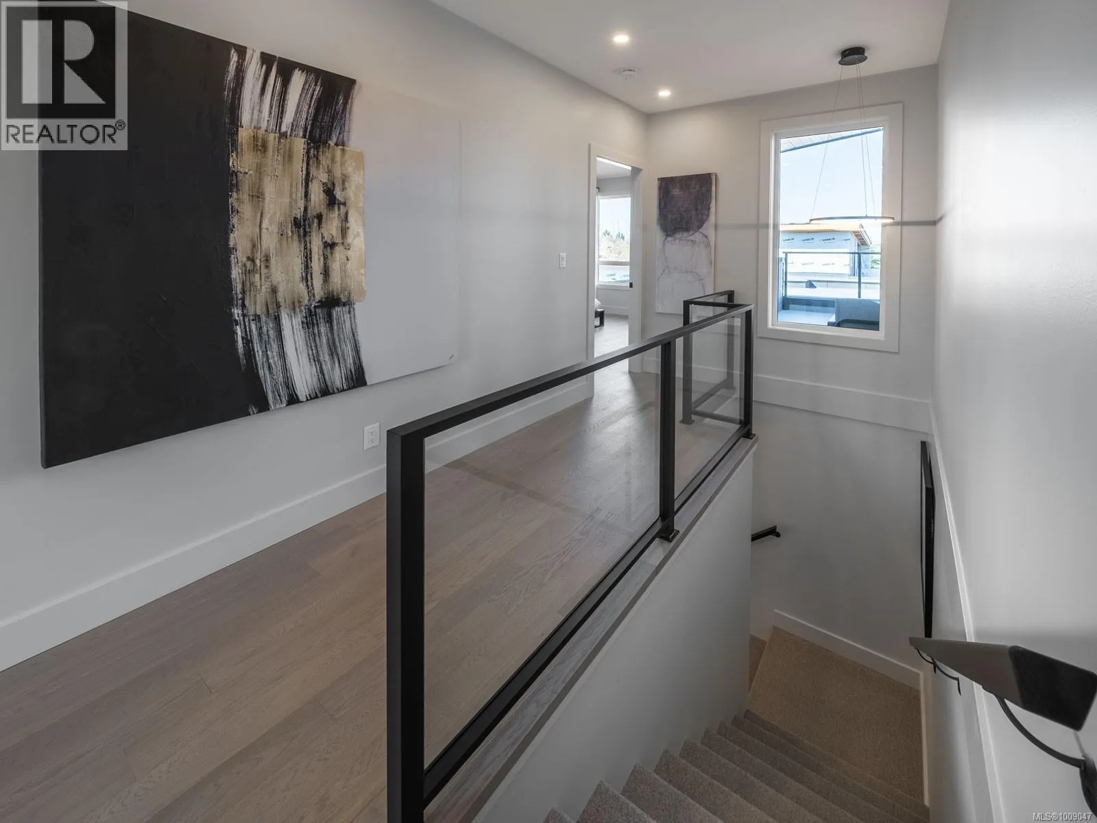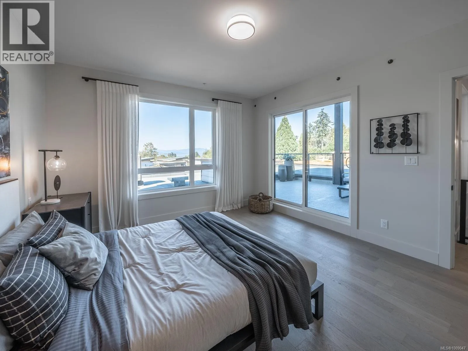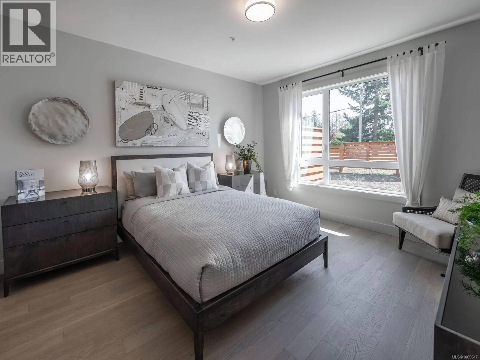 Welcome to ''DUO'' â a luxury development in the heart of town within blocks of shopping, amenities, the boardwalk and Parksville's sandy beach! DUO Flex Suite #112 is an Executive Townhome with a Primary Bedroom Suite on each level, a Den and upper Flex Room, a sunny patio, and two lrg balconies with views that include the Island Mountains, the Strait of Georgia, and Lasqueti/Texada Islands! This Contemporary Home offers sophisticated finishing, spacious rooms for house size furnishings, energy star appls, and multiple outdoor living spaces. The modern Kitchen features quartz CTs & Wi-Fi-enabled stainless appls, all Baths boast quartz-topped vanities & big mirrors with LED lighting, & each ensuite has in-floor heating. A glass entry door with a keyless touchscreen lock welcomes you into a spacious foyer, where eng hardwood flooring flows into a Kitchen/Living/Dining Rm with 9' ceilings. The Living/Dining Room features a nat gas FP & a door to a south-facing patio. The Chef's Kitchen boasts quartz CTs, a Cambria quartz island, and top-quality stainless appls. There is also a Laundry Closet, Powder Room, & Primary Bedroom Suite with a 4 pc ensuite. The upper level hosts a 2nd Primary Suite with a WI closet, a 4 pc ensuite, and a door to a large covered deck with ocean and island views. There's also a 3 pc Bath and a Flex Rm with a door to a balcony with views of Little Mountain & the Island Mountains. This premium DUO home boasts hot water on-demand, an OS Single Garage (pre-wired for EV charger), a heat pump, and more. Two dogs or cats allowed. A Base Window Covering/Blinds Package is included. Visit our website for more. (id:27476)