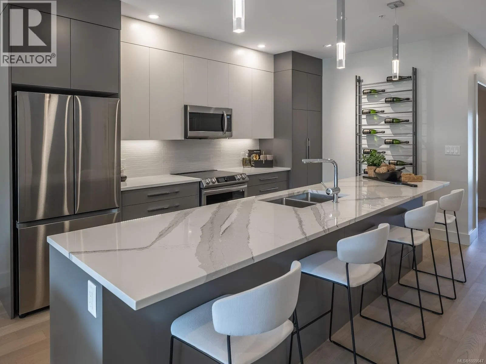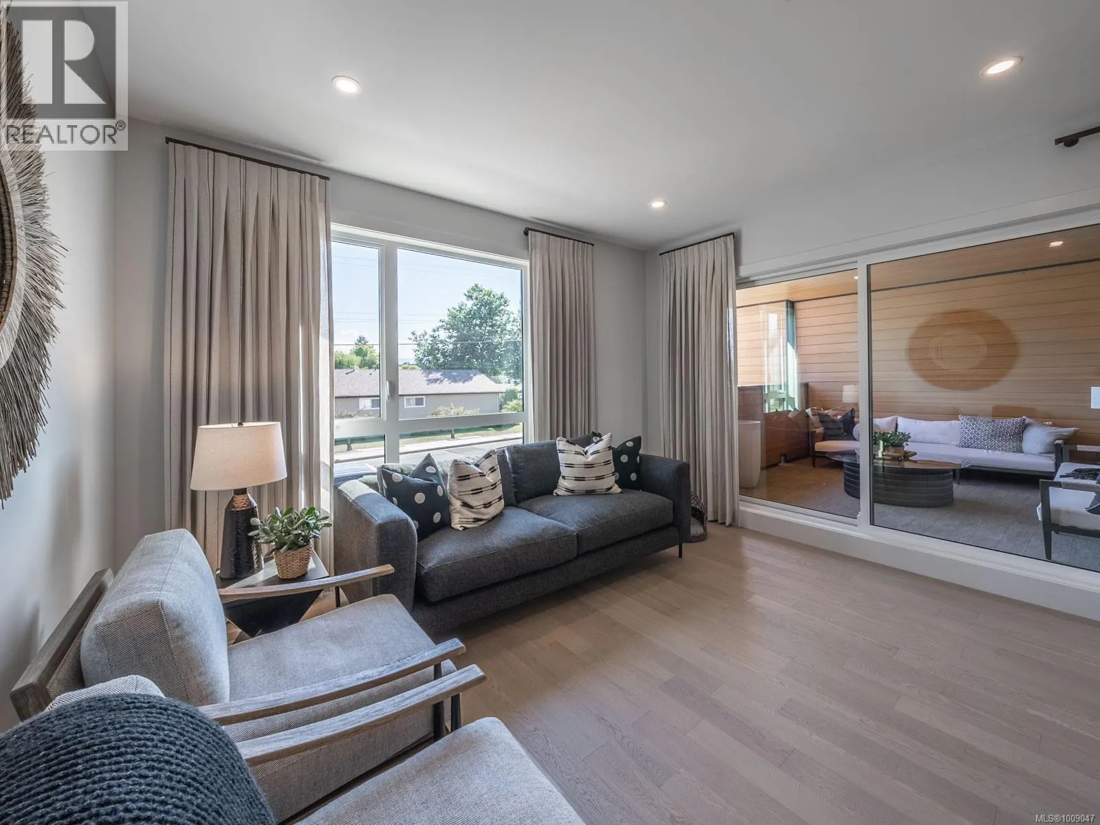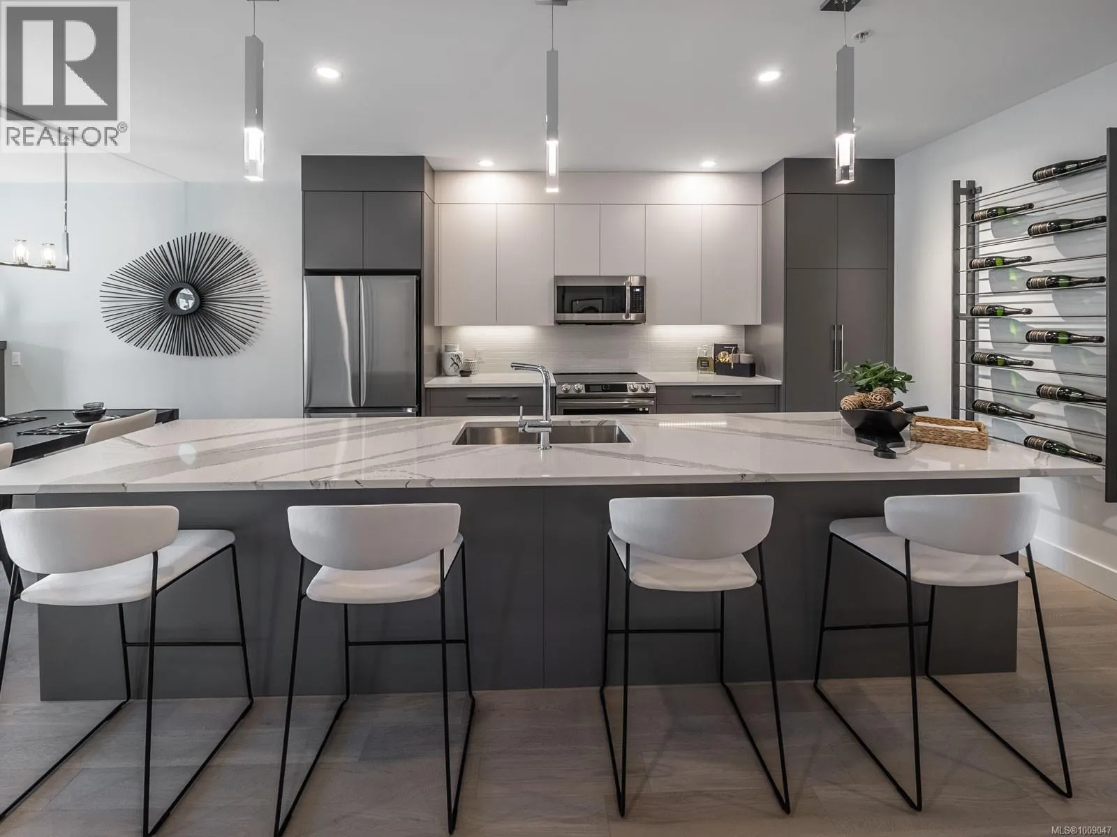 Welcome to ''DUO'' â a luxury development in the heart of town within blocks of shopping, amenities, the boardwalk and Parksville's sandy beach! DUO Flex Suite #112 is an Executive Townhome with a Primary Bedroom Suite on each level, a Den and upper Flex Room, a sunny patio, and two lrg balconies with views that include the Island Mountains, the Strait of Georgia, and Lasqueti/Texada Islands! This Contemporary Home offers sophisticated finishing, spacious rooms for house size furnishings, energy star appls, and multiple outdoor living spaces. The modern Kitchen features quartz CTs & Wi-Fi-enabled stainless appls, all Baths boast quartz-topped vanities & big mirrors with LED lighting, & each ensuite has in-floor heating. A glass entry door with a keyless touchscreen lock welcomes you into a spacious foyer, where eng hardwood flooring flows into a Kitchen/Living/Dining Rm with 9' ceilings. The Living/Dining Room features a nat gas FP & a door to a south-facing patio. The Chef's Kitchen boasts quartz CTs, a Cambria quartz island, and top-quality stainless appls. There is also a Laundry Closet, Powder Room, & Primary Bedroom Suite with a 4 pc ensuite. The upper level hosts a 2nd Primary Suite with a WI closet, a 4 pc ensuite, and a door to a large covered deck with ocean and island views. There's also a 3 pc Bath and a Flex Rm with a door to a balcony with views of Little Mountain & the Island Mountains. This premium DUO home boasts hot water on-demand, an OS Single Garage (pre-wired for EV charger), a heat pump, and more. Two dogs or cats allowed. A Base Window Covering/Blinds Package is included. Visit our website for more. (id:27476)
