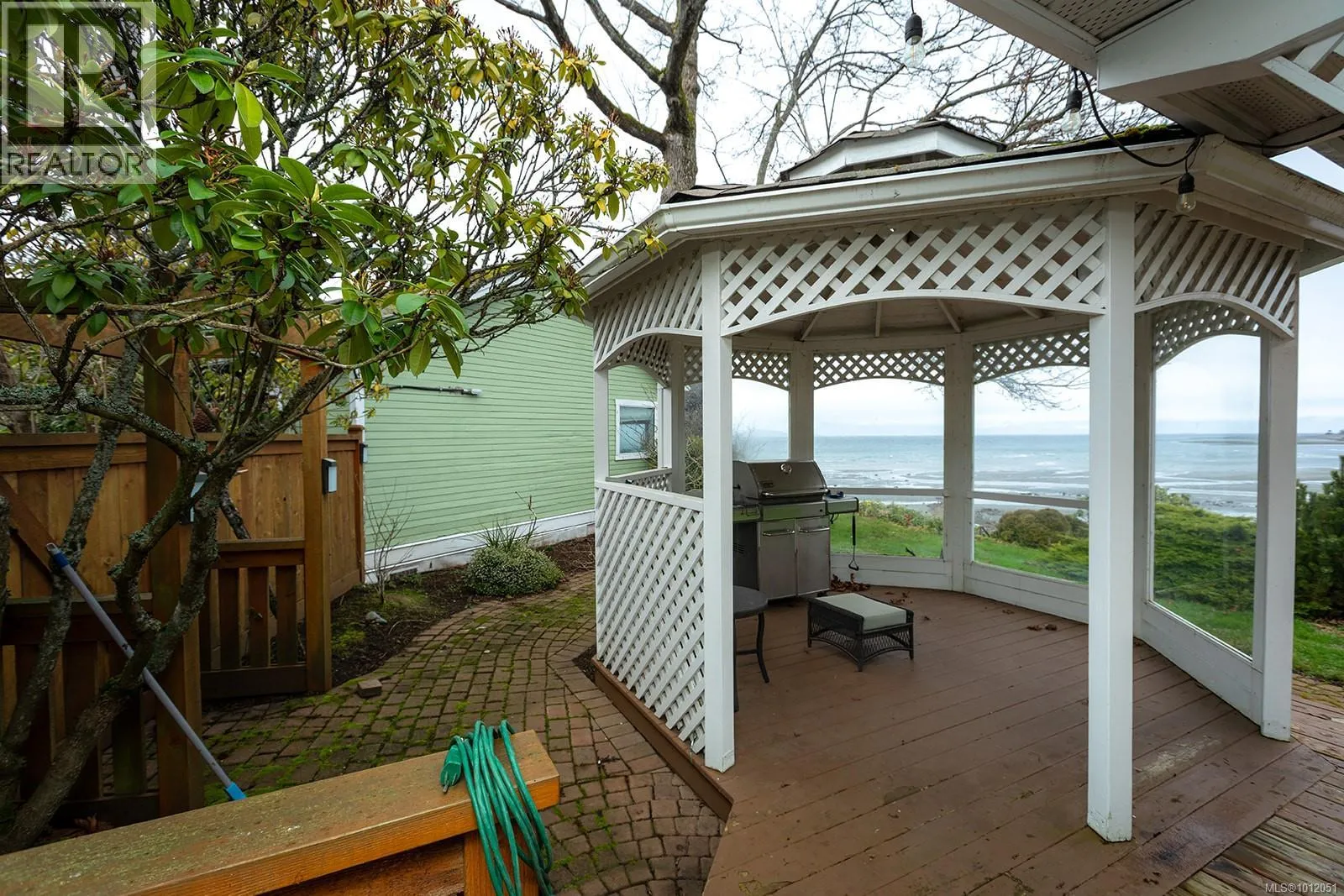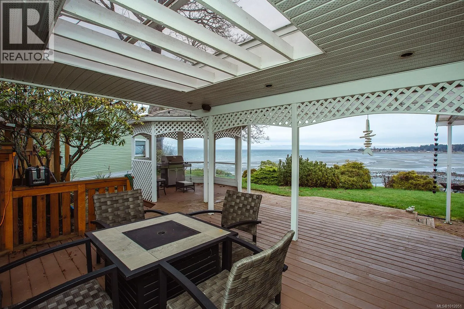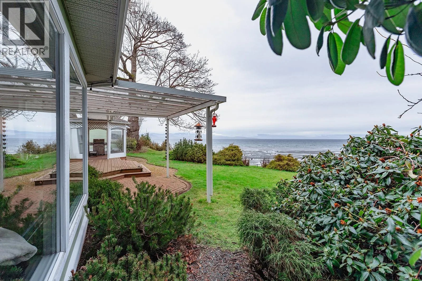 Nestled on a rare .59-acre oceanfront lot, this exceptional property offers breathtaking panoramic views and direct beach access. The main rancher-style home is designed to embrace coastal living, featuring expansive windows that frame the stunning seascape, an open-concept layout, and a spacious deck perfect for enjoying the ever-changing tides. Adding to its uniqueness, a charming carriage home/cottage provides incredible flexibilityâideal for guests, extended family, or an income-generating rental. With its unbeatable waterfront location, ample space, and the tranquility of a quiet seaside street, this is a rare opportunity to own a true Vancouver Island retreat while enjoying the added value of a versatile secondary dwelling. (id:27476)
