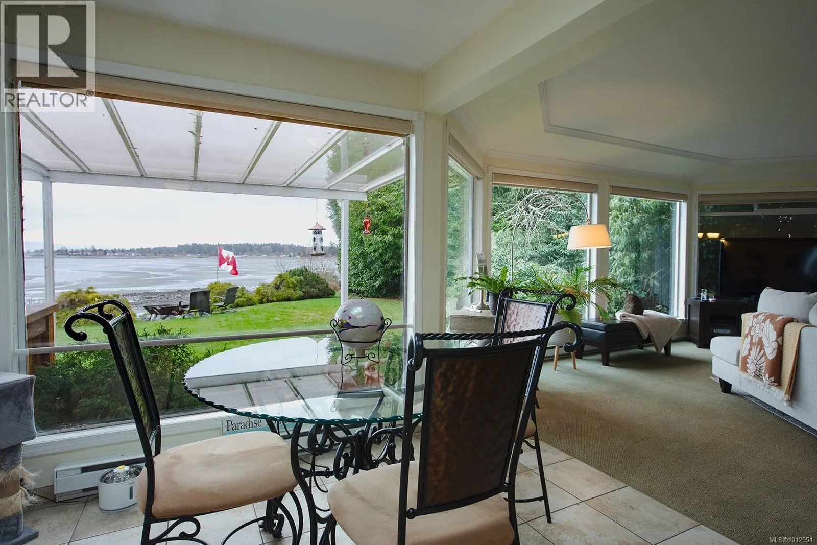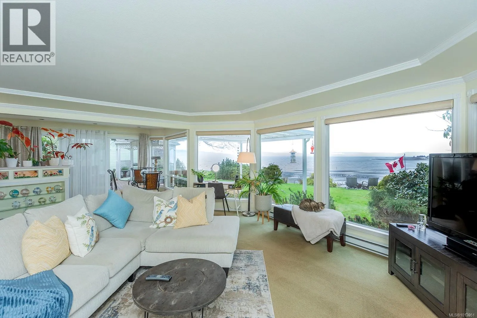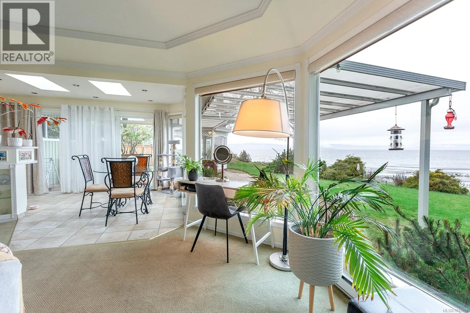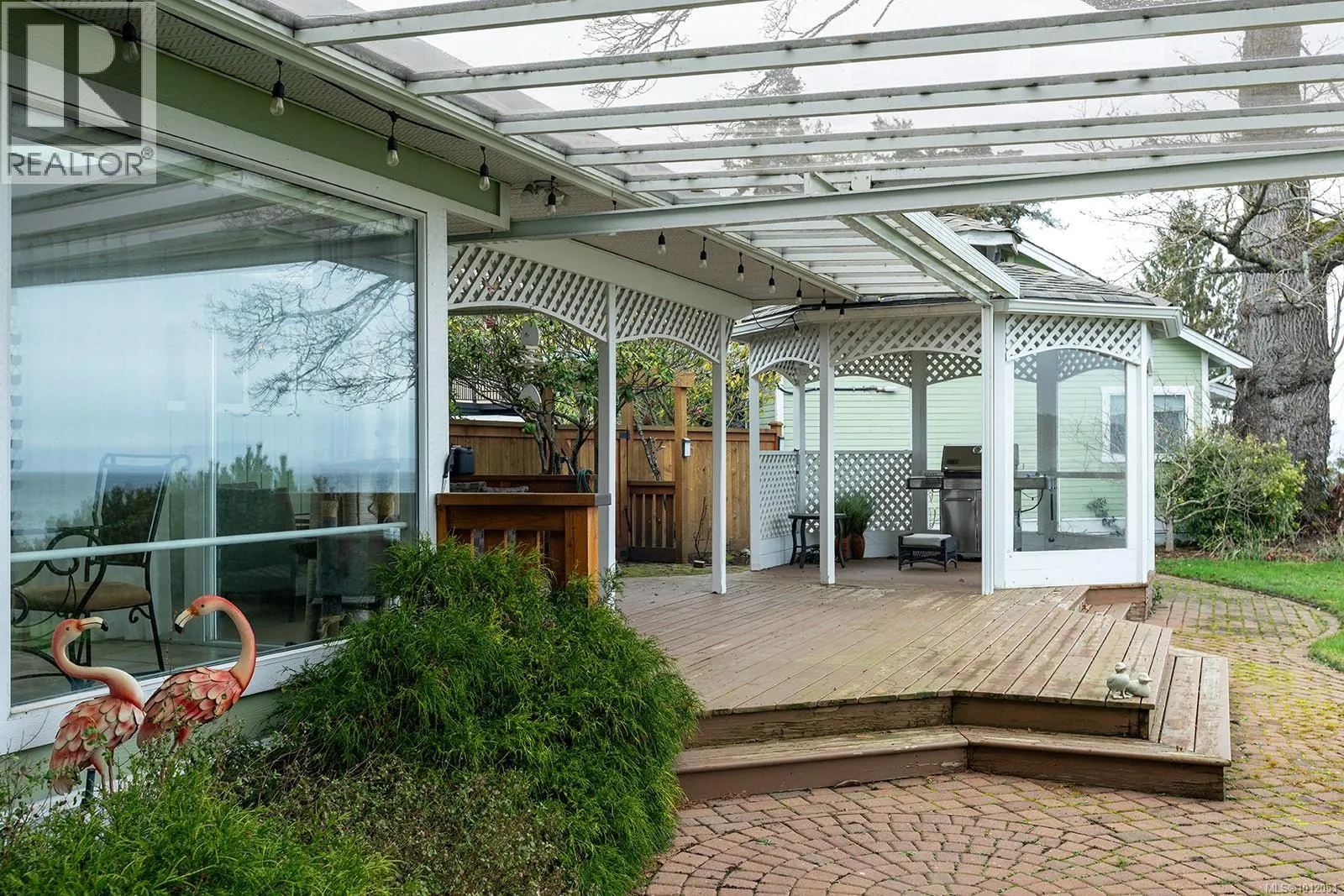Nestled on a rare .59-acre oceanfront lot, this exceptional property offers breathtaking panoramic views and direct beach access. The main rancher-style home is designed to embrace coastal living, featuring expansive windows that frame the stunning seascape, an open-concept layout, and a spacious deck perfect for enjoying the ever-changing tides. Adding to its uniqueness, a charming carriage home/cottage provides incredible flexibilityâideal for guests, extended family, or an income-generating rental. With its unbeatable waterfront location, ample space, and the tranquility of a quiet seaside street, this is a rare opportunity to own a true Vancouver Island retreat while enjoying the added value of a versatile secondary dwelling. (id:27476)