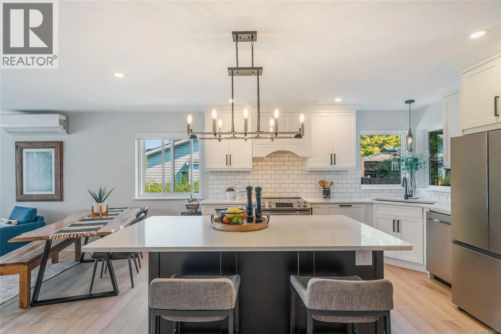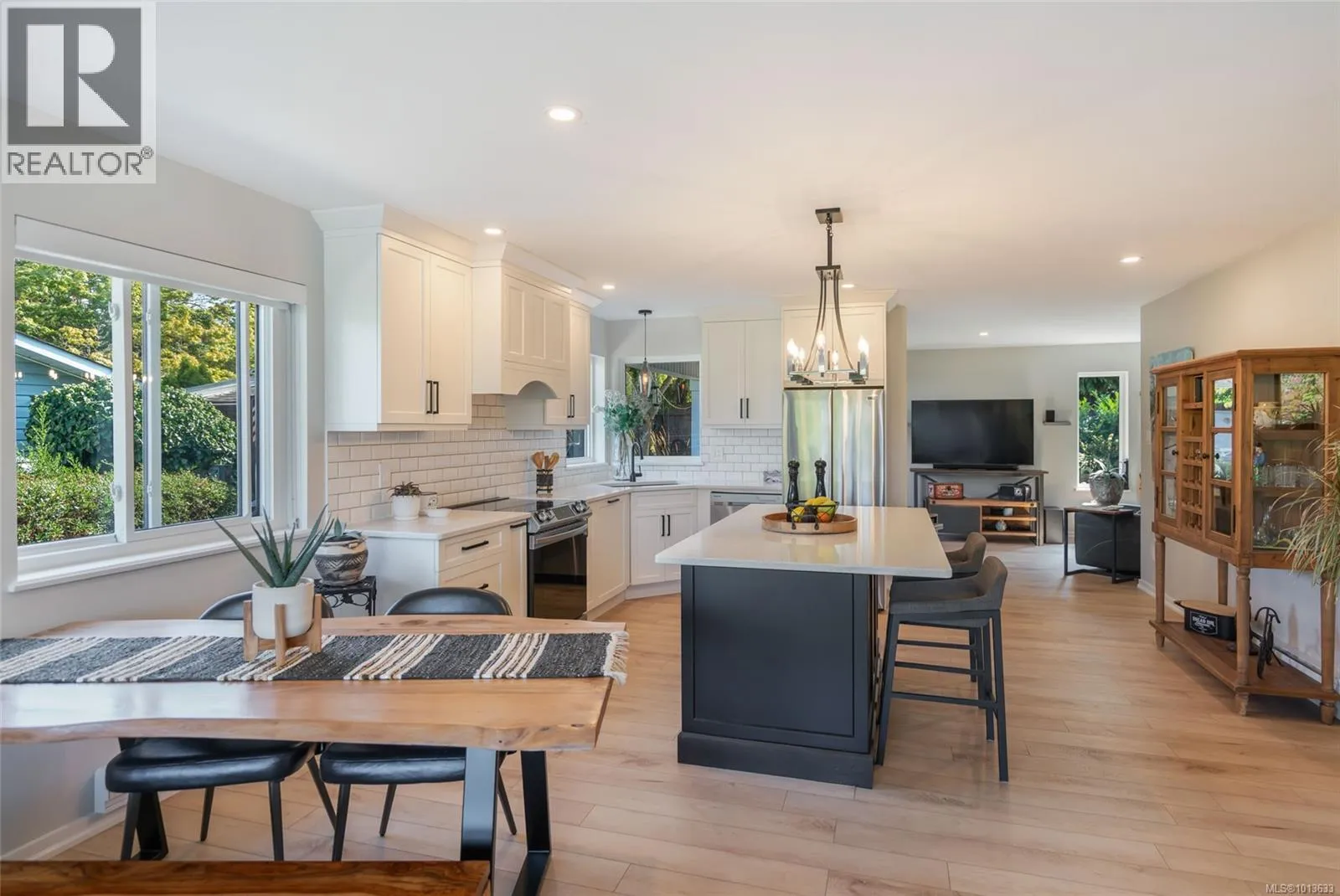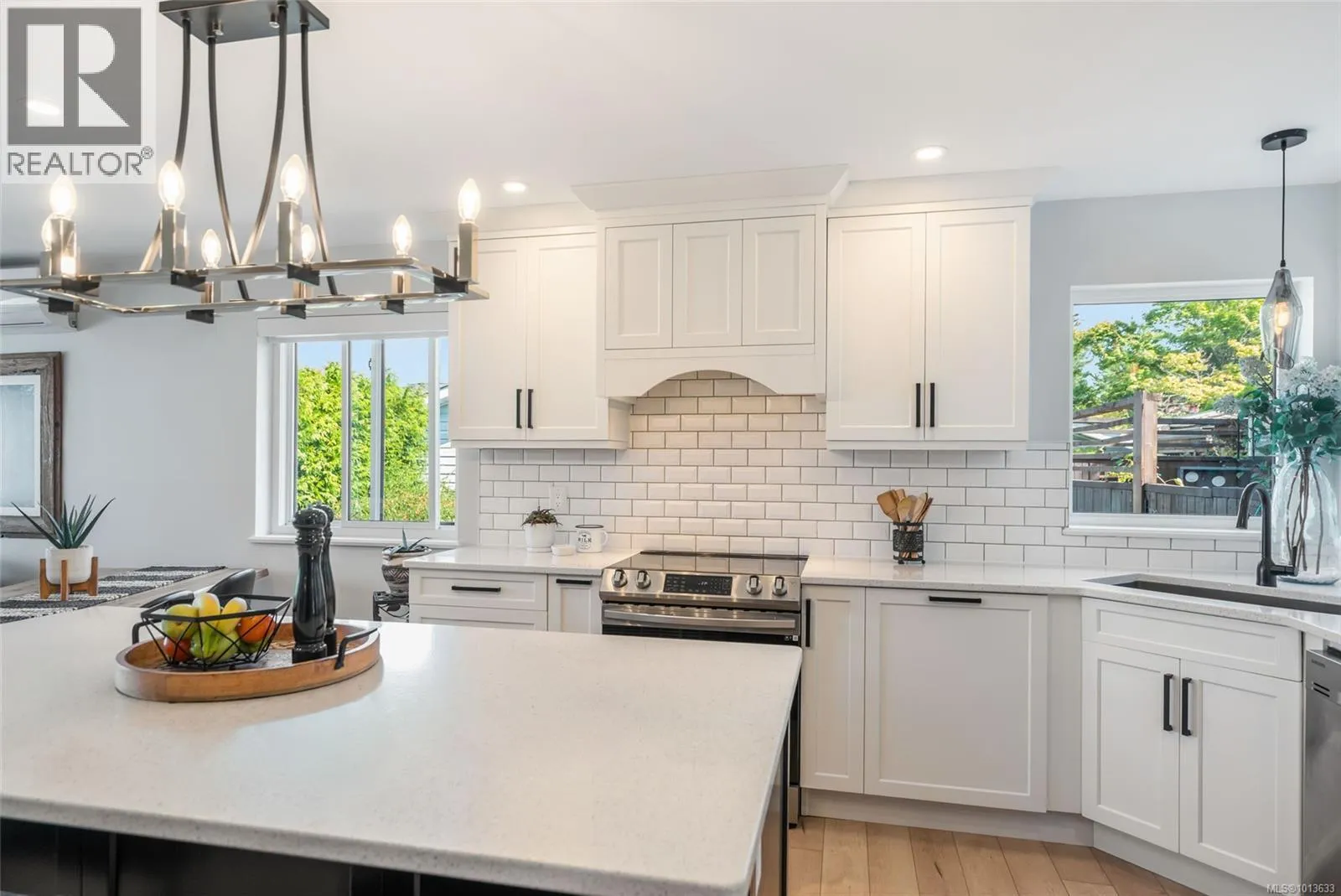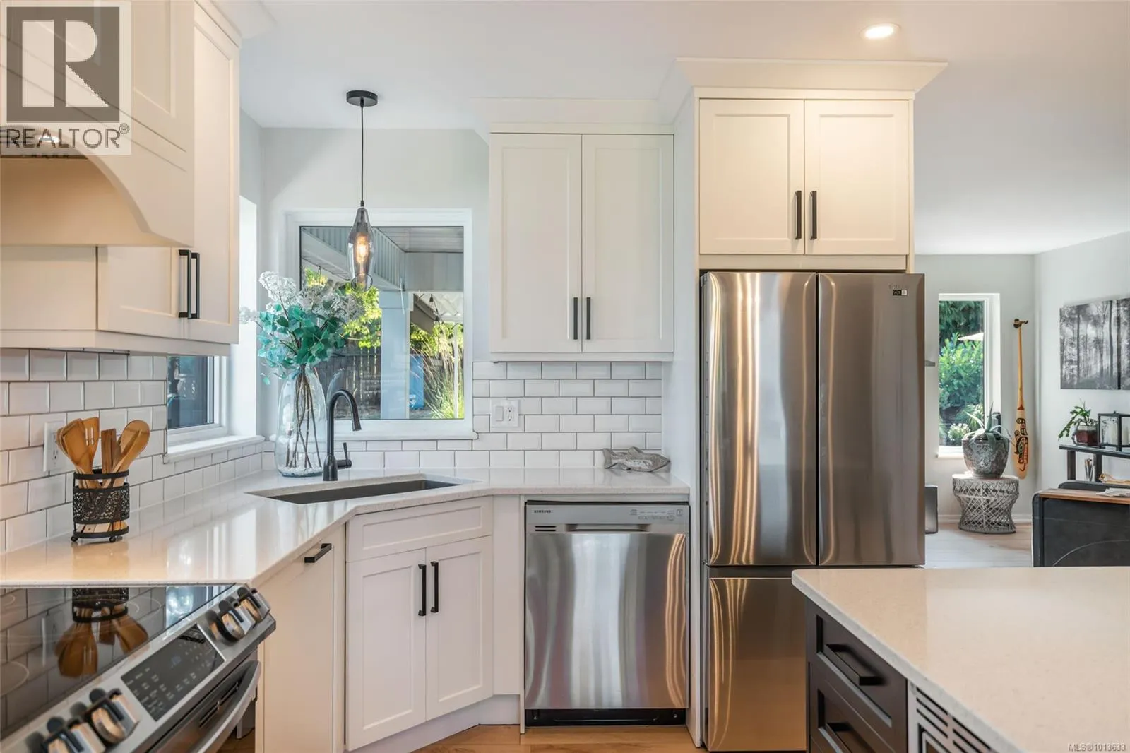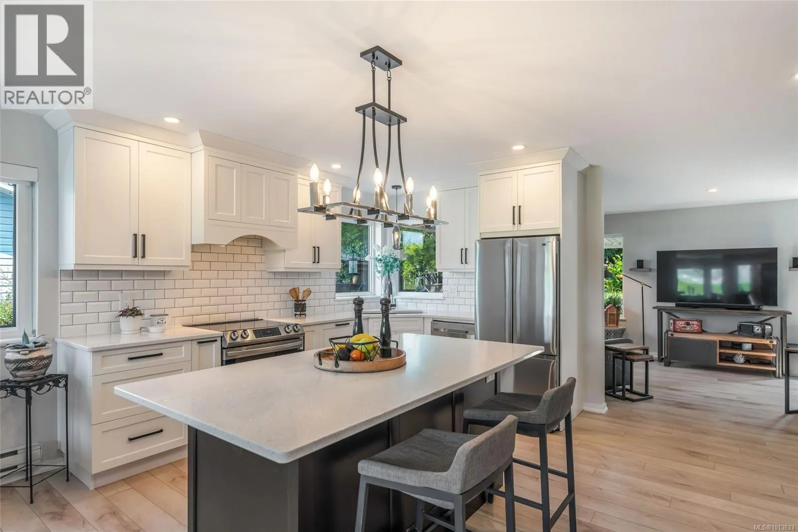 Adorable Parksville Rancher! A fabulous family home or the perfect place to retire! Move-in with nothing left to do, it's all been done for you! Don't miss this charming 3 Bed/2 Bath Contemporary home on a .18-acre lot, boasting a popular one-level floor plan, a skylight and abundant windows for a bright ambiance, a large patio with a hot tub, plus a Greenhouse and garden area. Ideally located, itâs just a short walk to Wembley Mall and only minutes from transit, schools, medical services, golf courses, parks, downtown shopping, and Parksvilleâs oceanfront boardwalk and sandy beach. The home welcomes you with a private front yard featuring hedging, gravel landscaping, a garden, and a young monkey puzzle tree. Inside, wood flooring flows from the foyer into the open-plan main living area, uniting the Living and Dining Rooms with the Kitchen and Family Room. The Living Room offers a bay window and a ductless heat pump for efficient comfort. The Dining Area connects to a Deluxe Kitchen with sleek white cabinetry, tiled backsplash, Samsung stainless appliances, and a large island with breakfast bar and built-in microwave. The Family Room (or Dining Room) boasts dual feature windows and a sliding door to a covered walkway, leading to a huge wraparound patio. A private side patio with trellises invites quiet relaxation, while the back patio offers a covered hot tub area with roll-down privacy shade. Beyond is a grassy, fully fenced yard for kids and pets. The Primary Suite has a walk-in closet with built-ins and a 3-piece ensuite with glass shower. Two additional Bedrooms share a skylighted 4-piece Bath, while the Laundry Room with cupboards and sink opens to an oversized 430 sqft Garage. Outside, find a Greenhouse and raised garden boxes. Short drive to Qualicum Beach, 20 mins to Nanaimo. Here is the convenience, comfort, and relaxed coastal lifestyle youâve been dreaming of! Visit our website for more info. (id:27476)